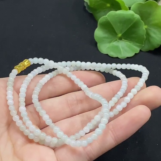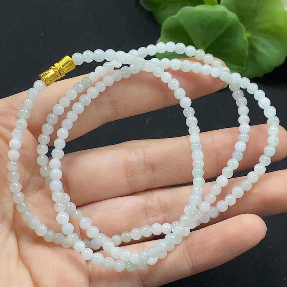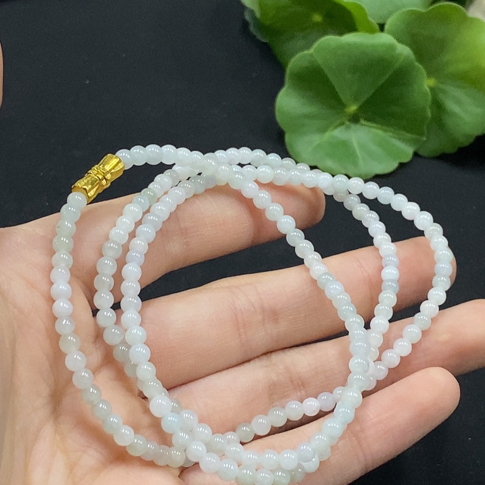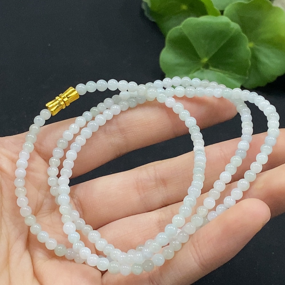 Jadeite Bead Necklace Approx. 3.5mm Non-Gold Setting Total Weight Approx. 13.27g