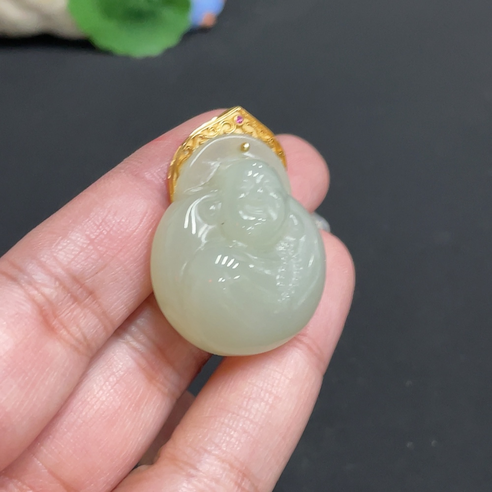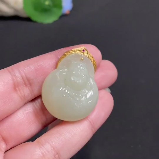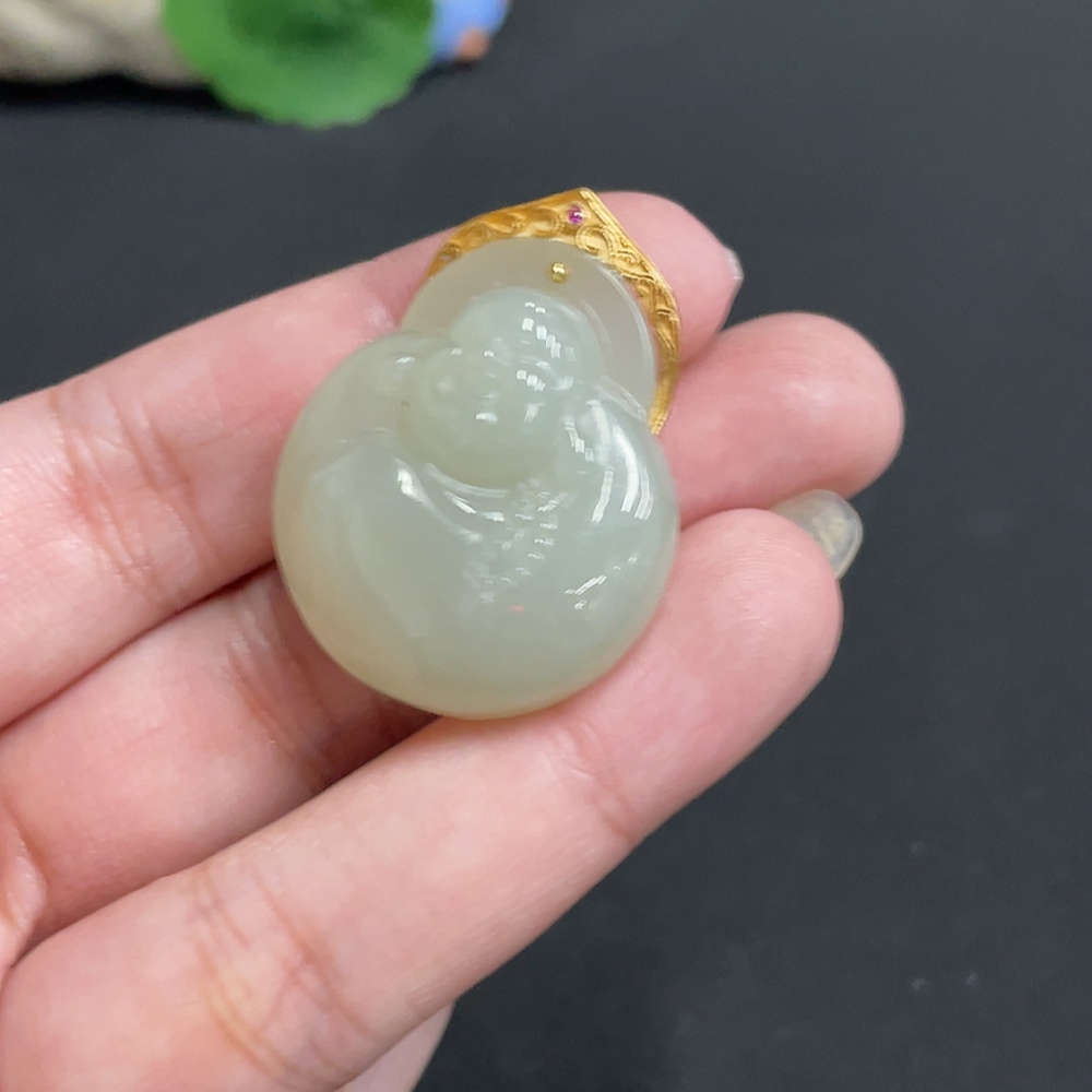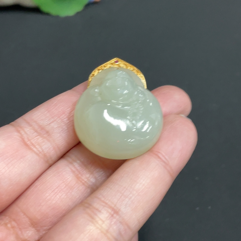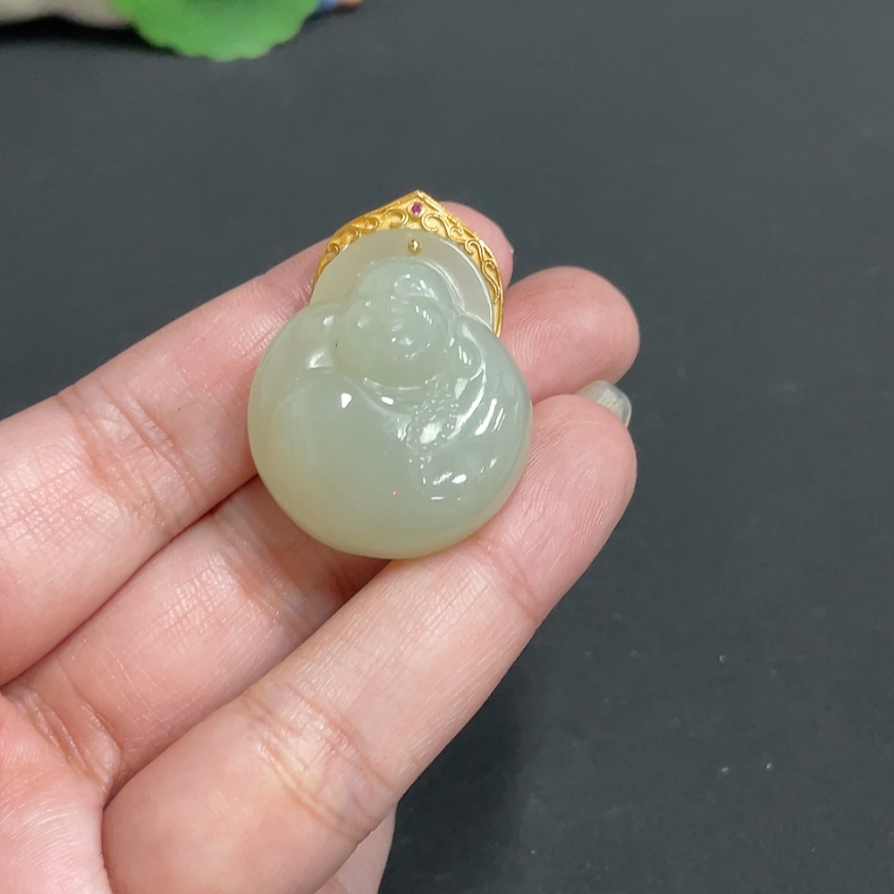 Hetian Jade Inlaid Pendant Buddha Total Weight Approx.16.1g 18k