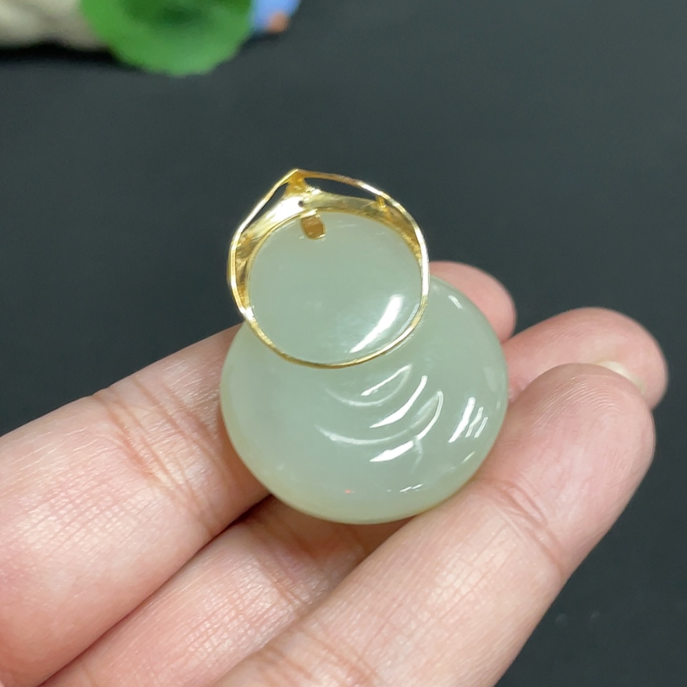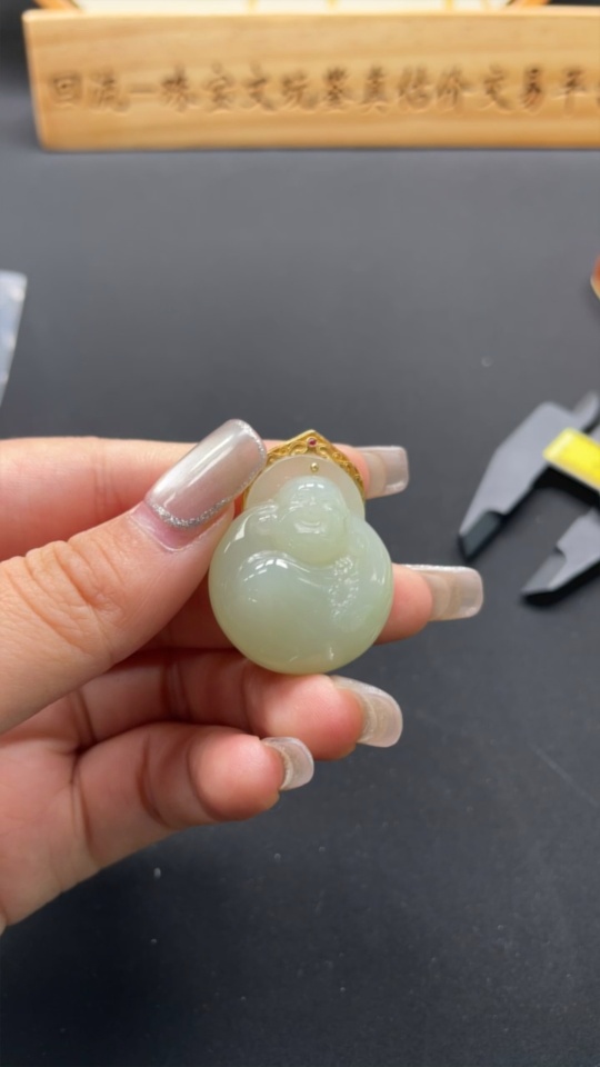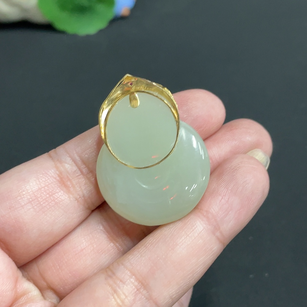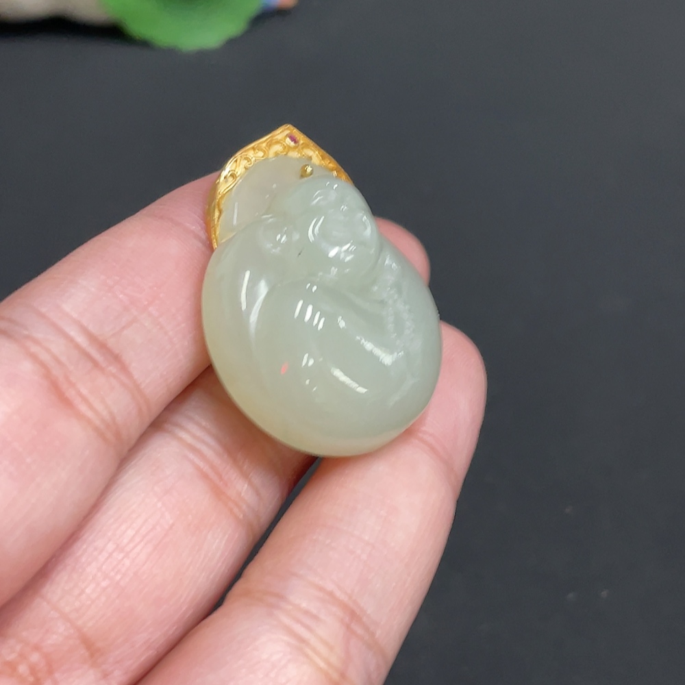Hetian Jade Inlaid Pendant Buddha Total Weight Approx.16.1g 18k