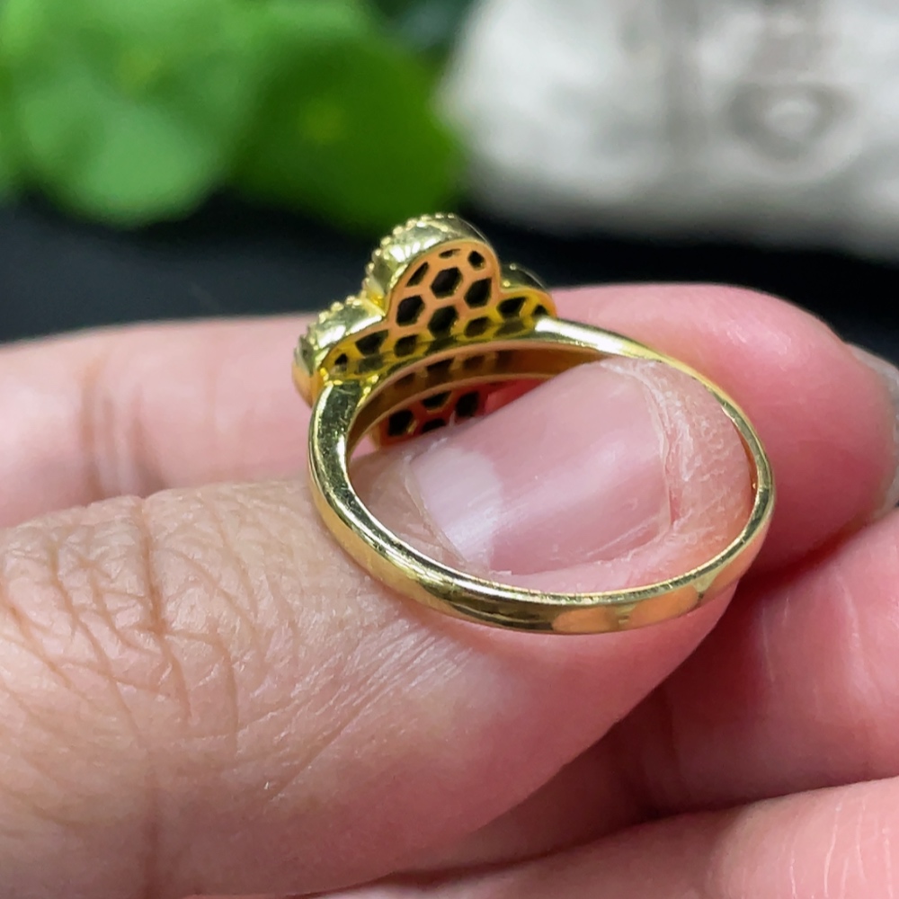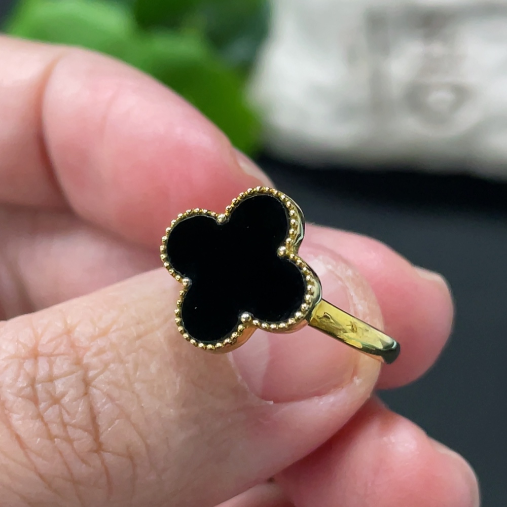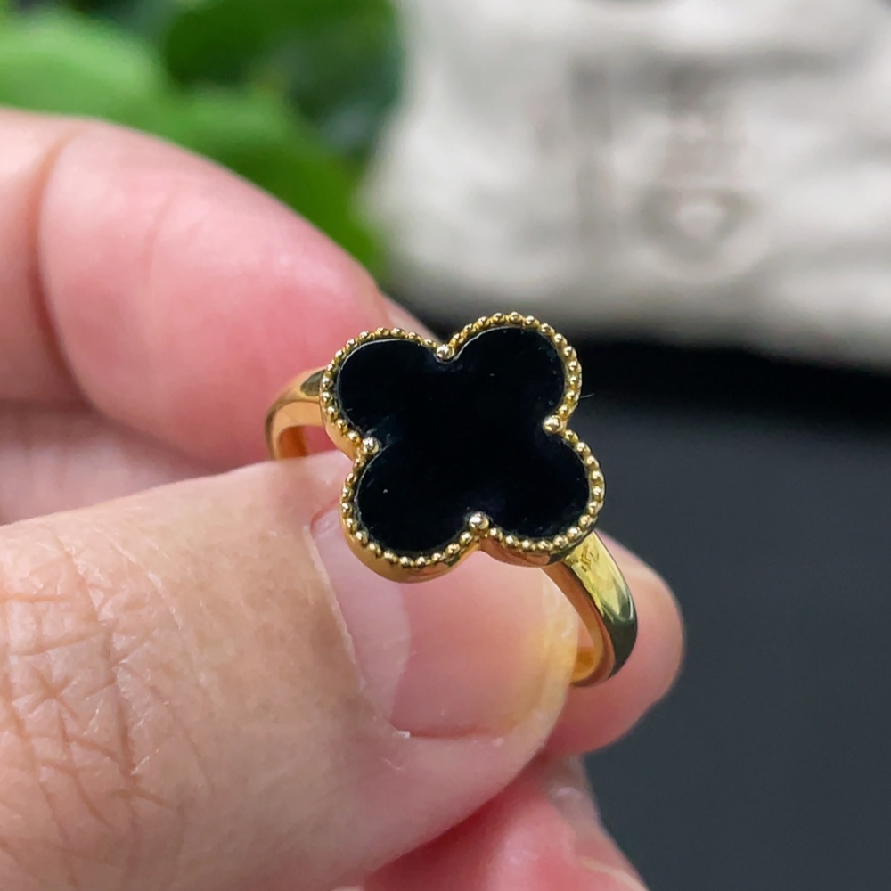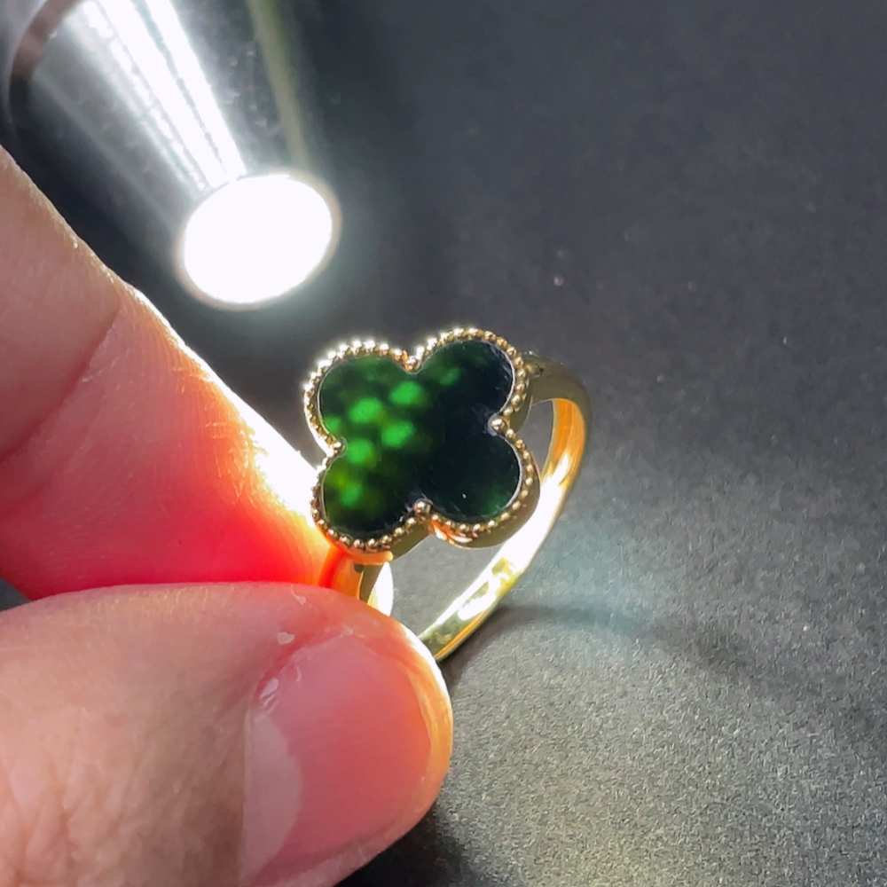 Jadeite Four-Leaf Clover Inlay Ring 18k Gold Inlay Size 15 Total Weight Approx. 2.95g