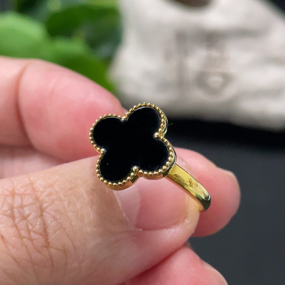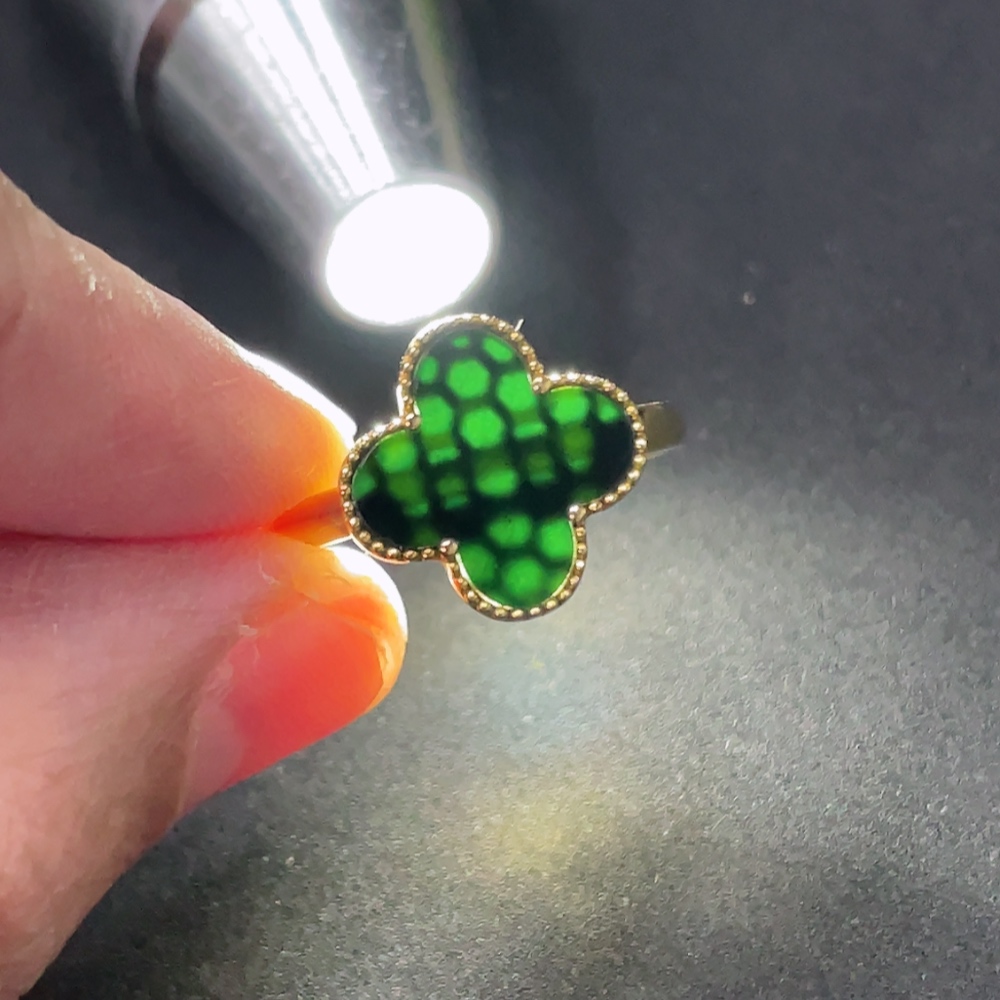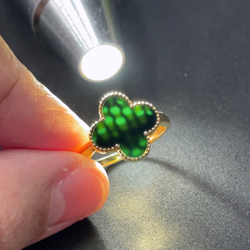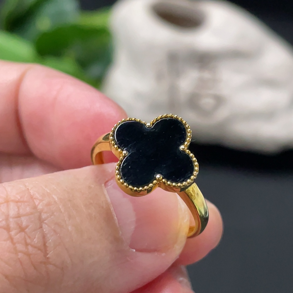 Jadeite Four-Leaf Clover Inlay Ring 18k Gold Inlay Size 15 Total Weight Approx. 2.95g