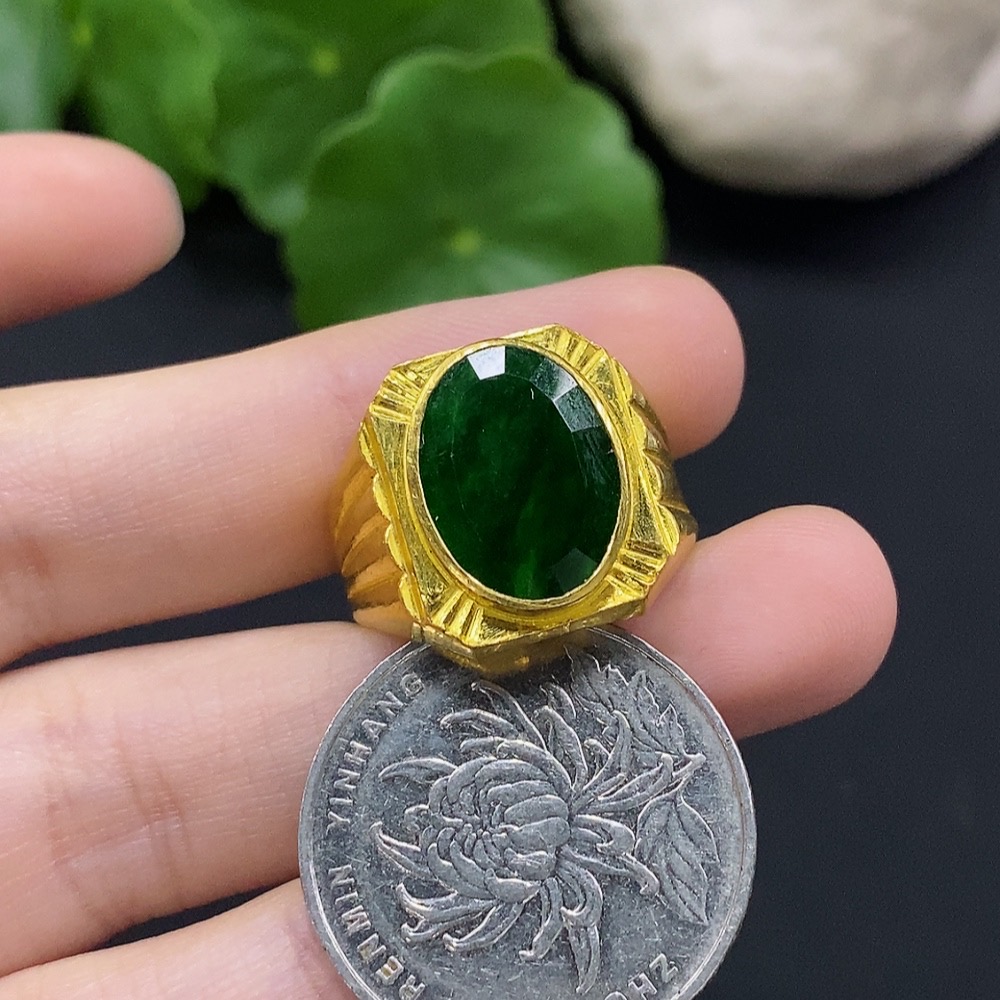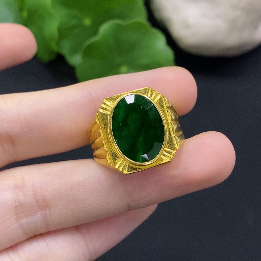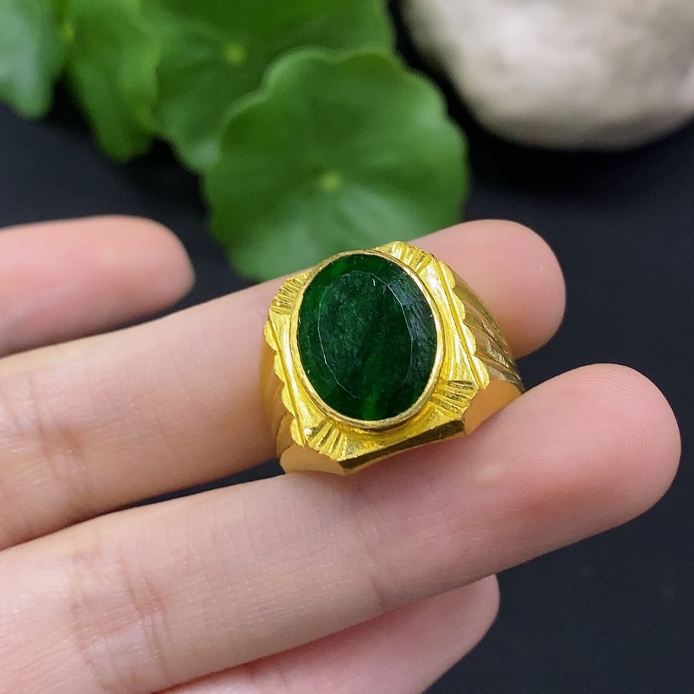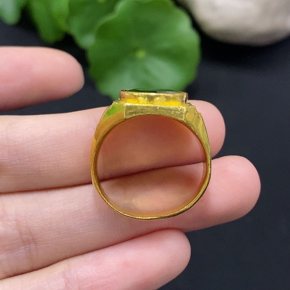 Jadeite Inlaid Ring No Mark, Gold Content 99% Size 16 Total Weight Approx. 12.85g