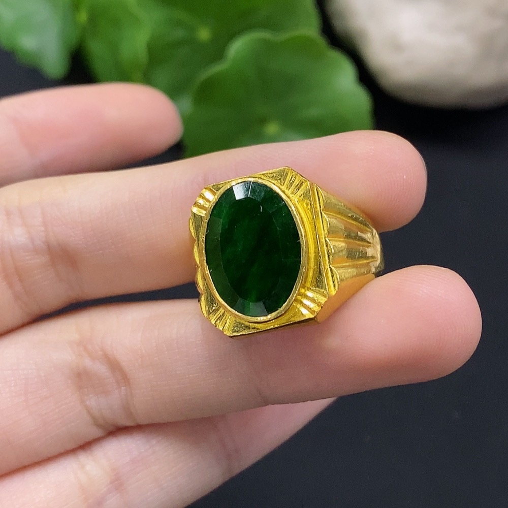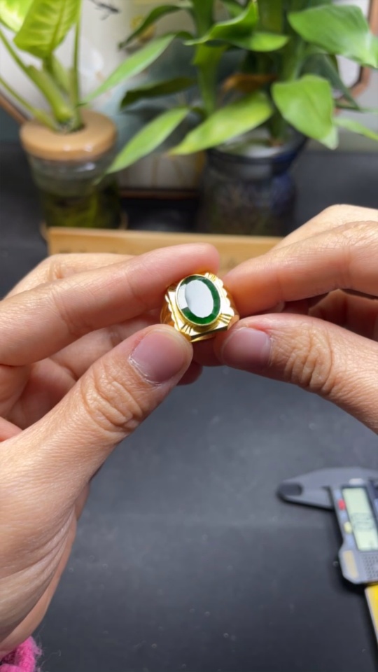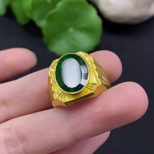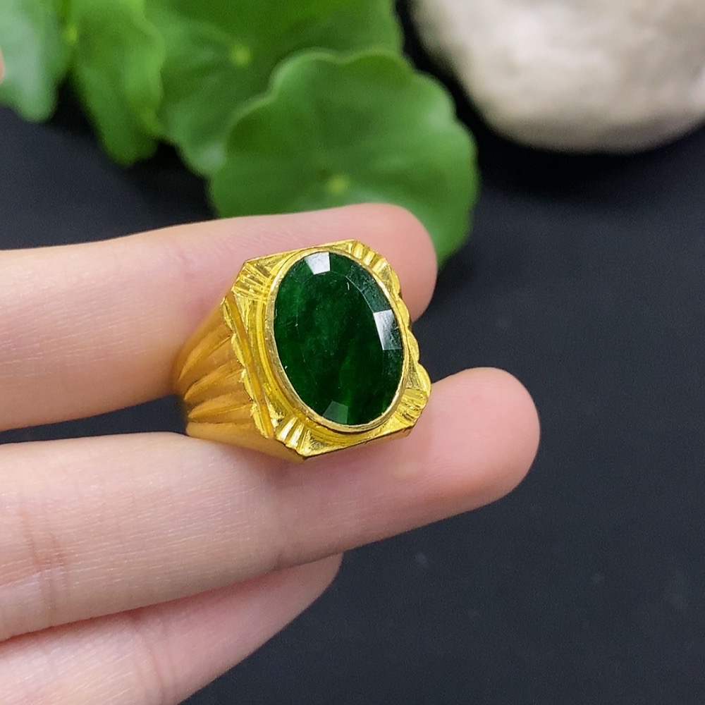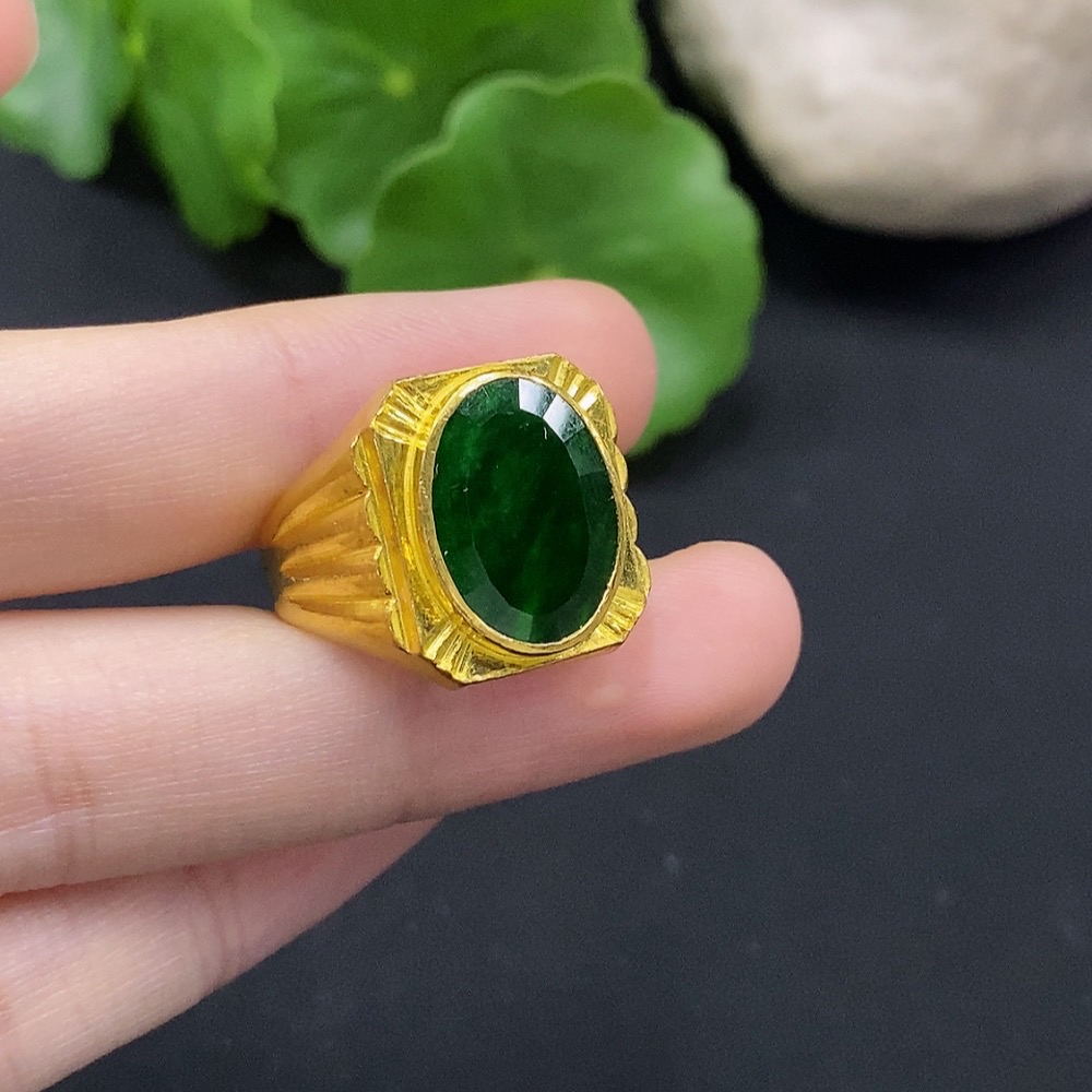 Jadeite Inlaid Ring No Mark, Gold Content 99% Size 16 Total Weight Approx. 12.85g