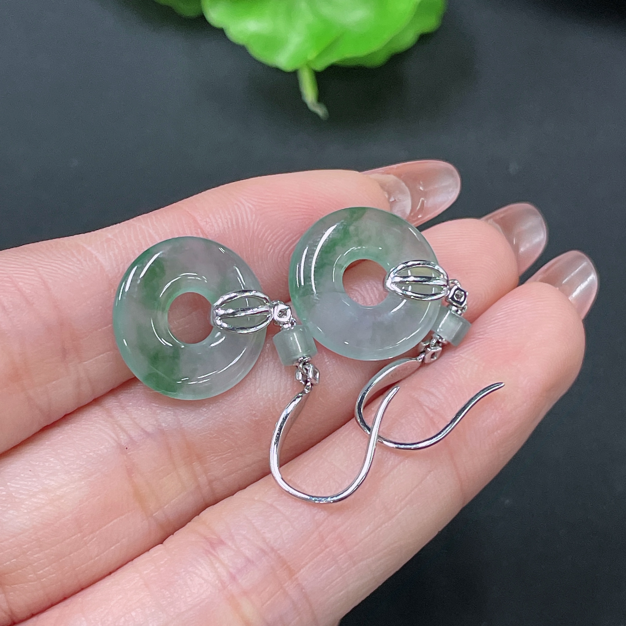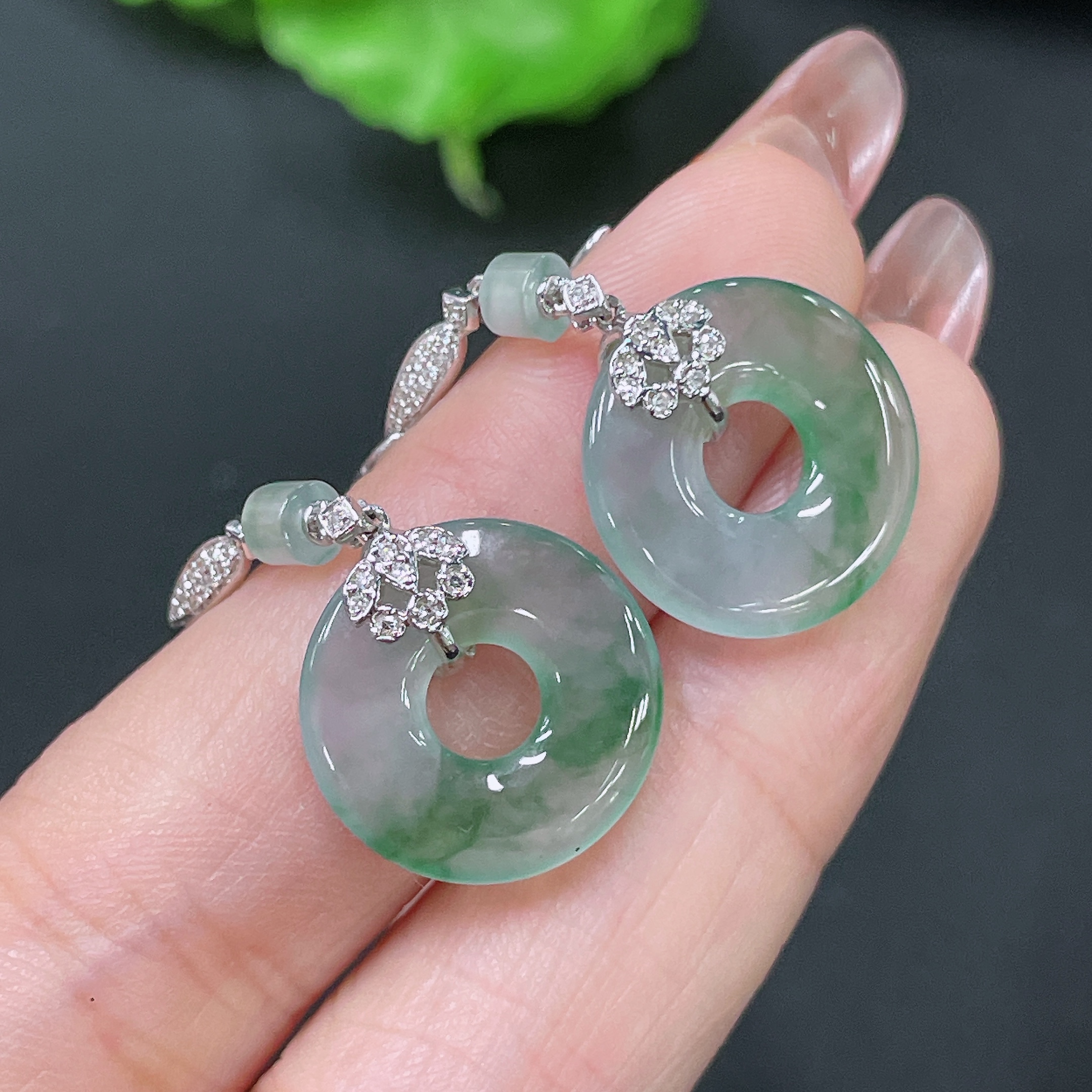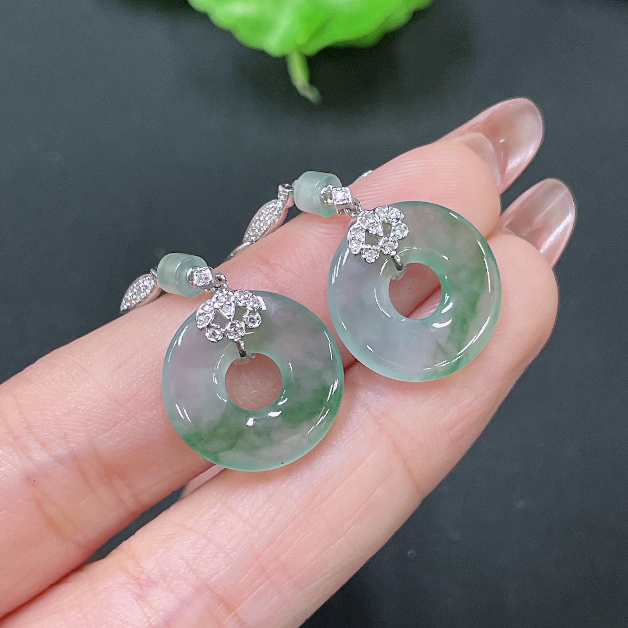 Jadeite Earrings 18k Gold Inlaid with Diamonds Total Weight Approx. 4.75g