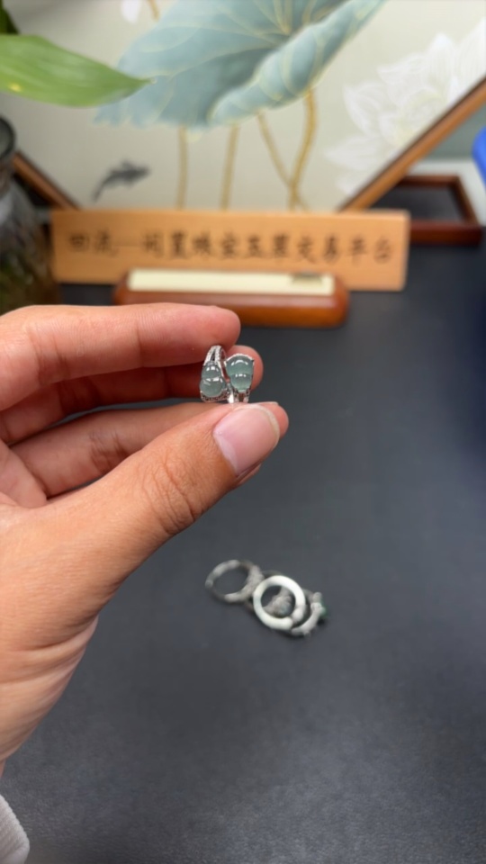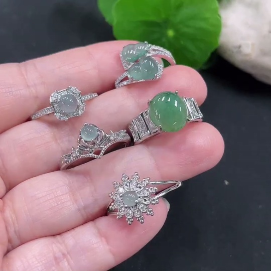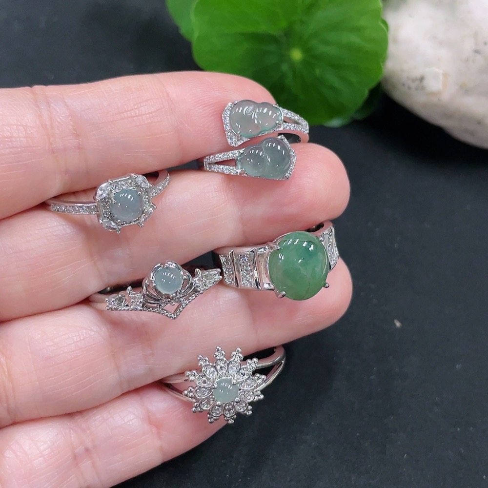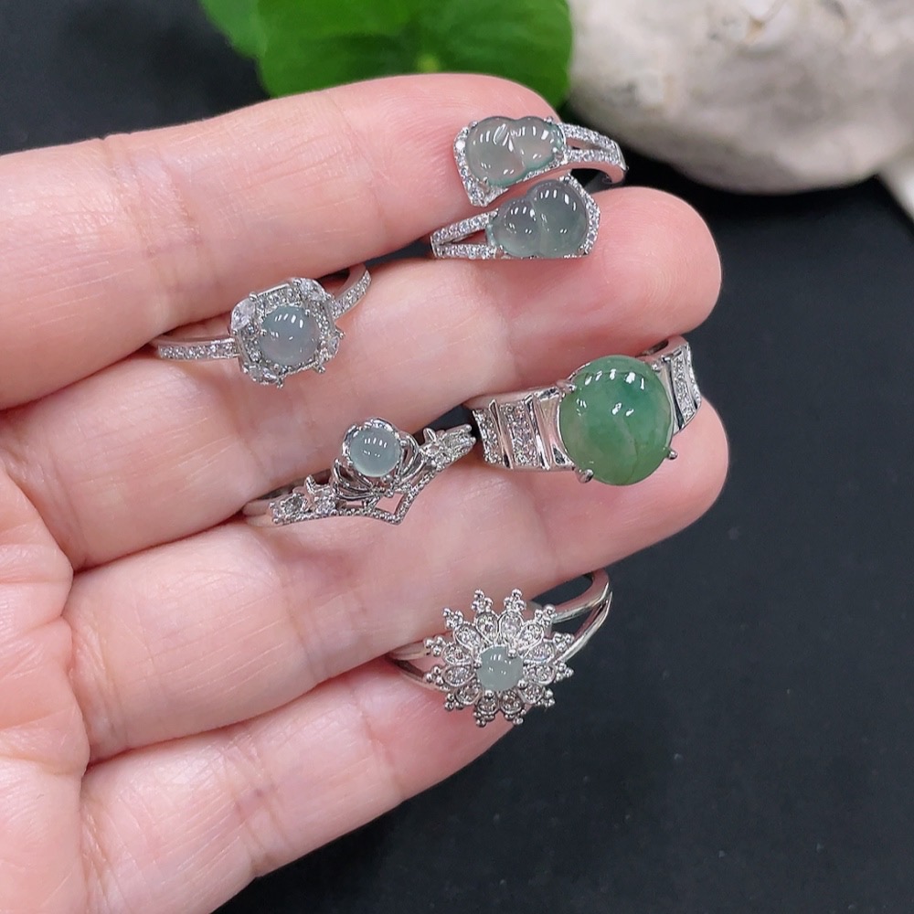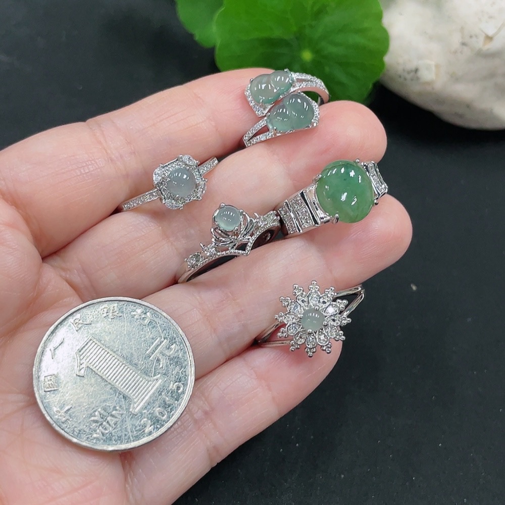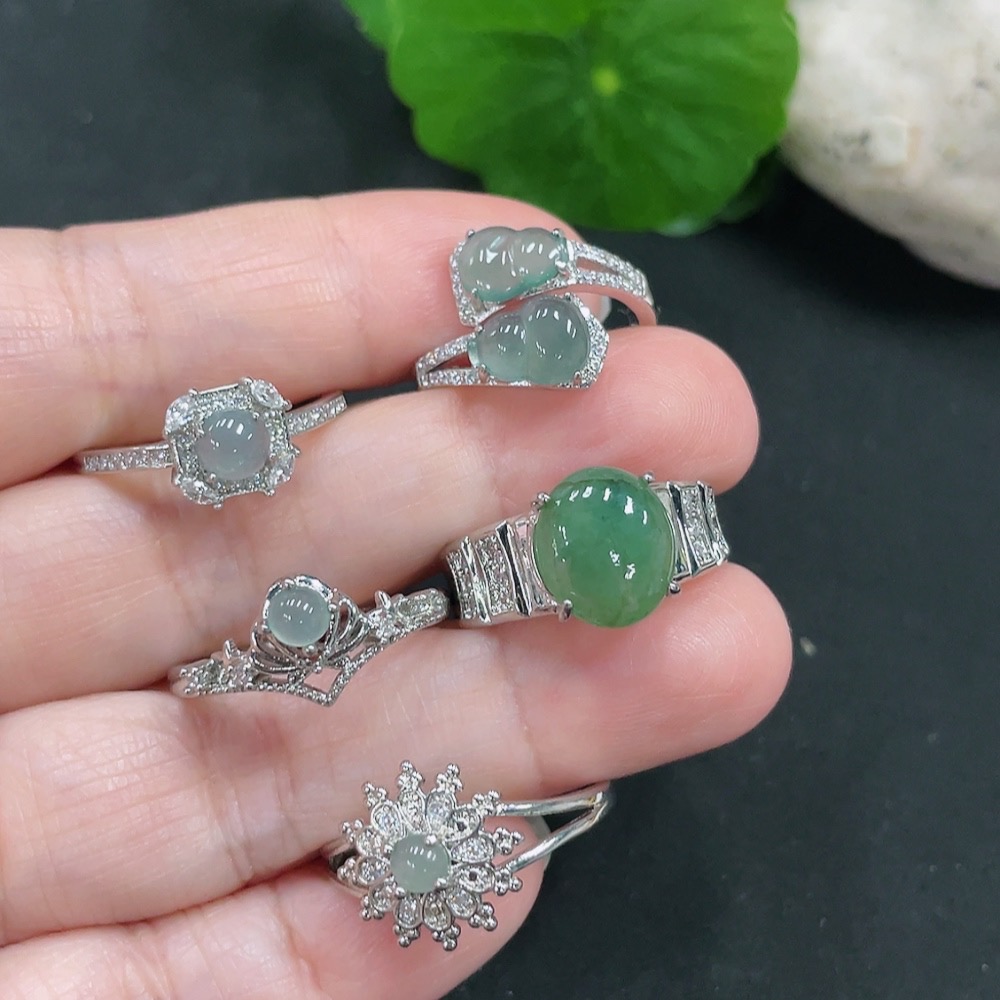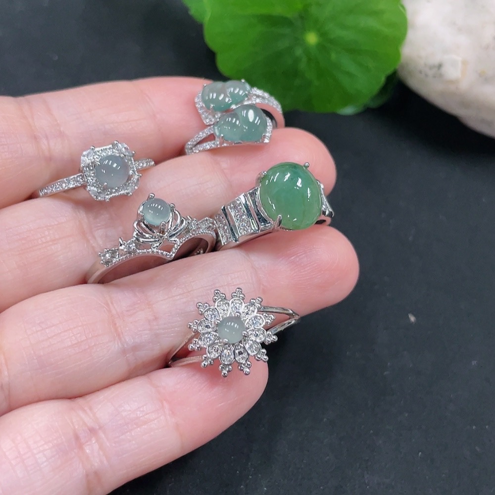 Jadeite cabochon inlay ring, non-gold setting, adjustable