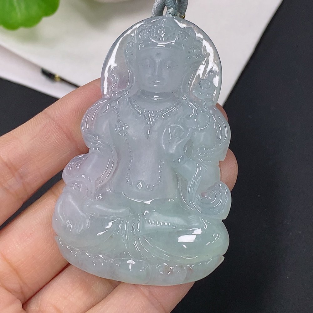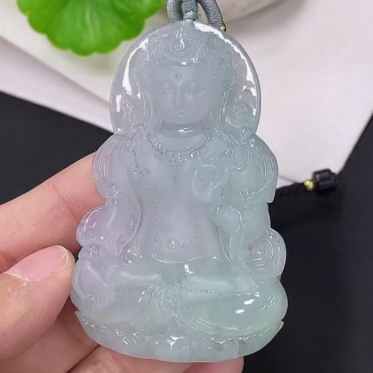 Jadeite Pendant Guanyin with Cord Total Weight Approx. 31.78g