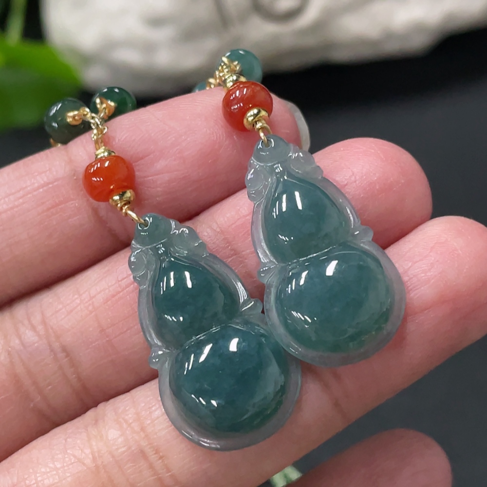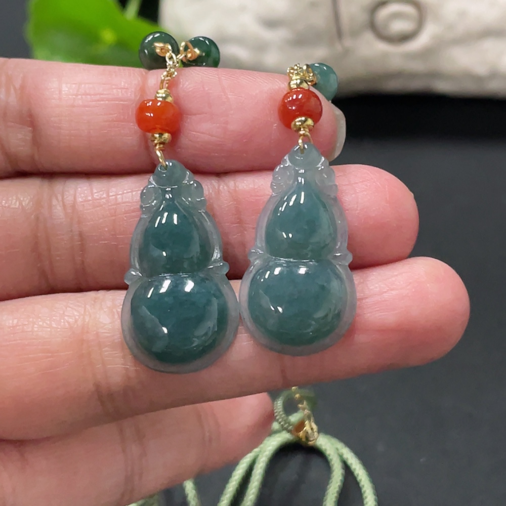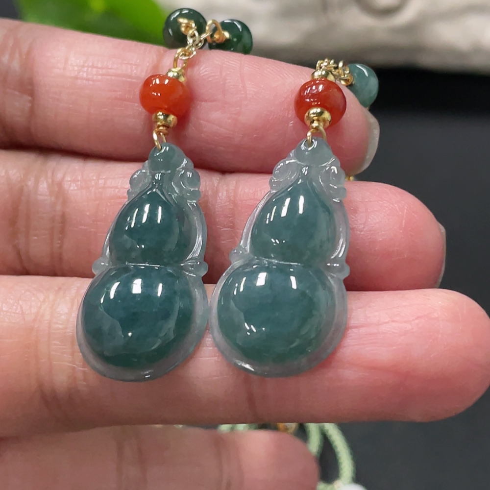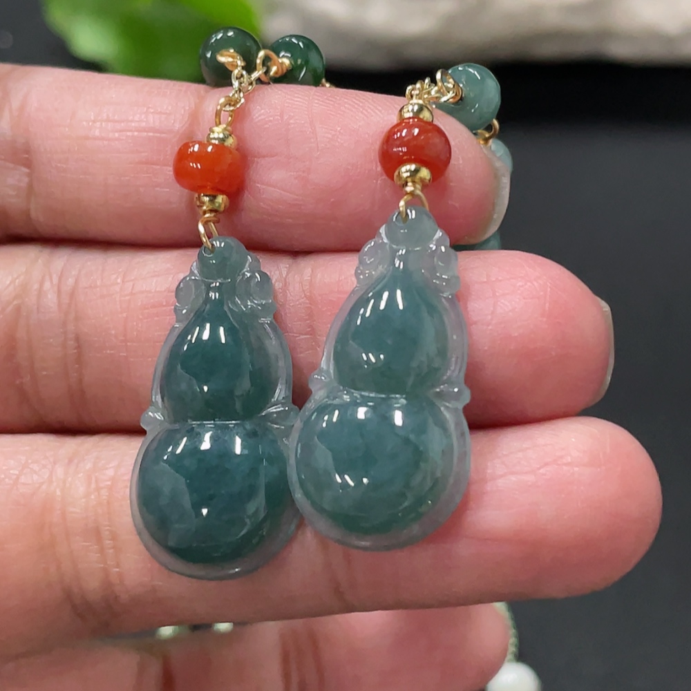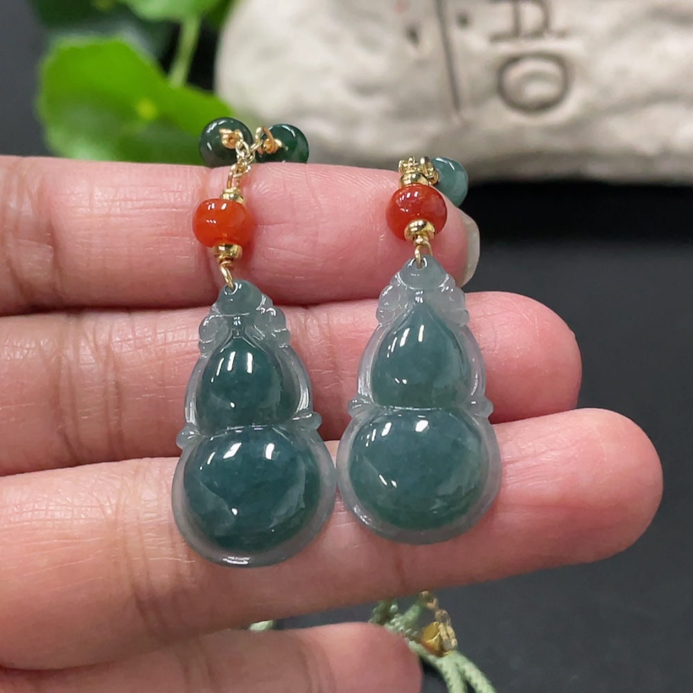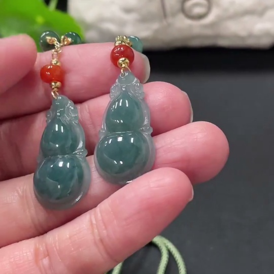 Jadeite Gourd Pendant Total Weight Approx. 15.4g Non-A Grade Beads Non-Gold