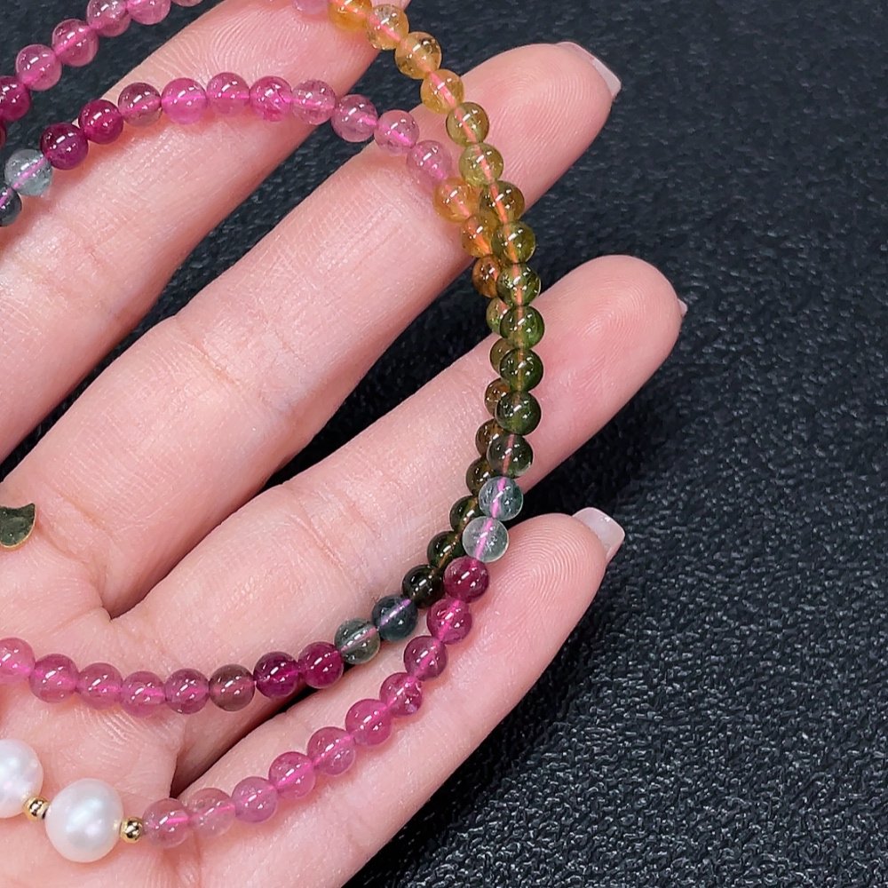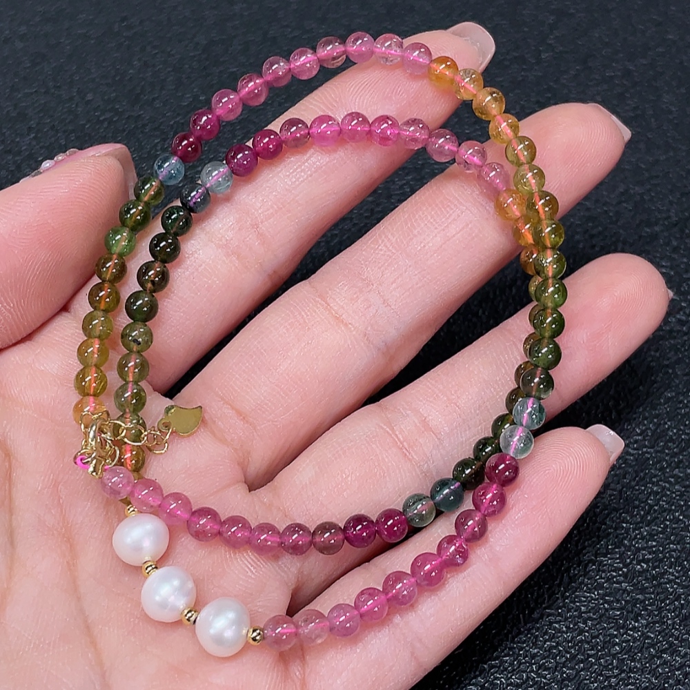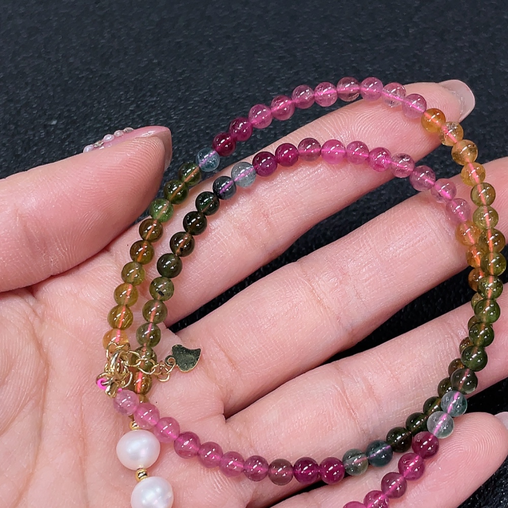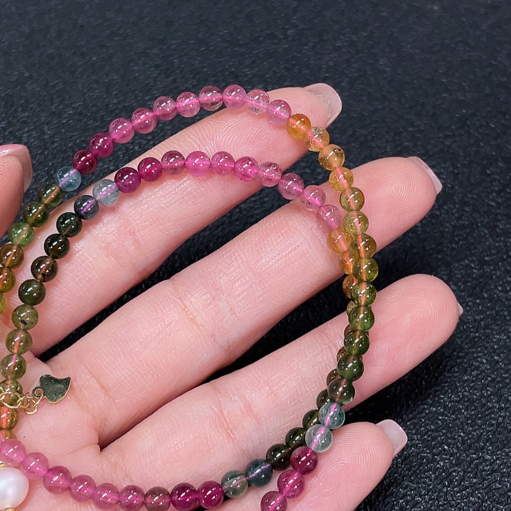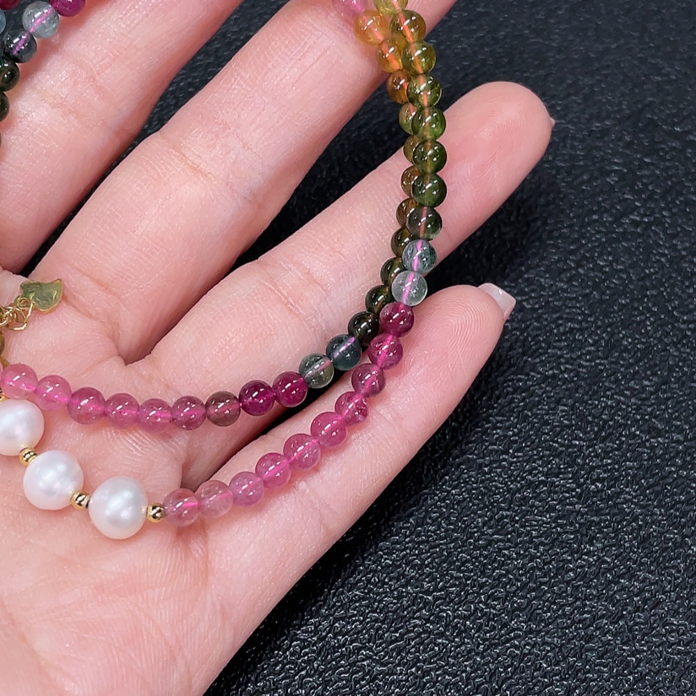 Tourmaline Bead Strand Non-Gold with Pearls Containing Other Mineral Components Visible Organic Matter Total Weight Approx. 10.58g Size 4mm