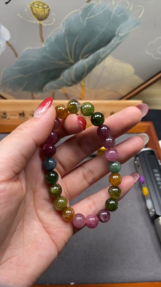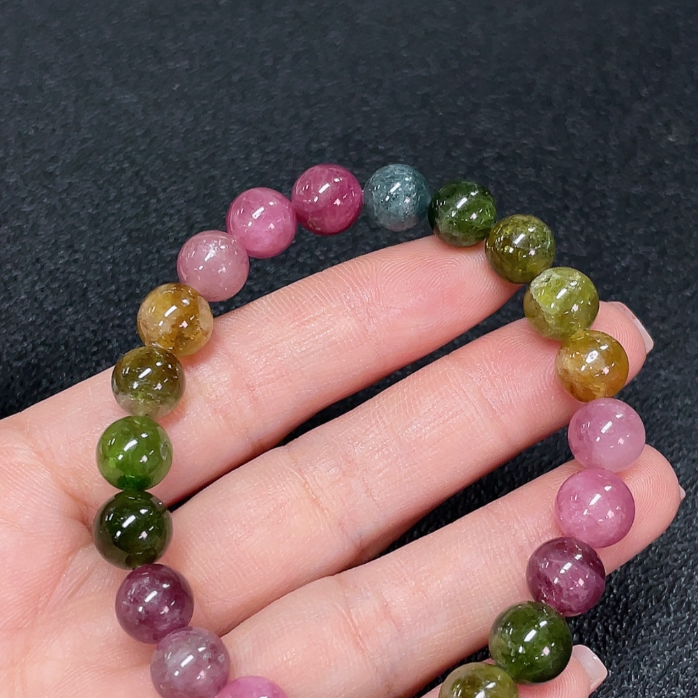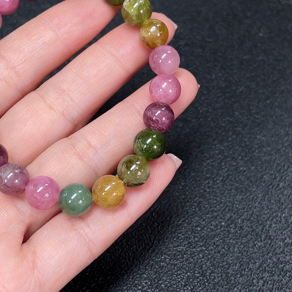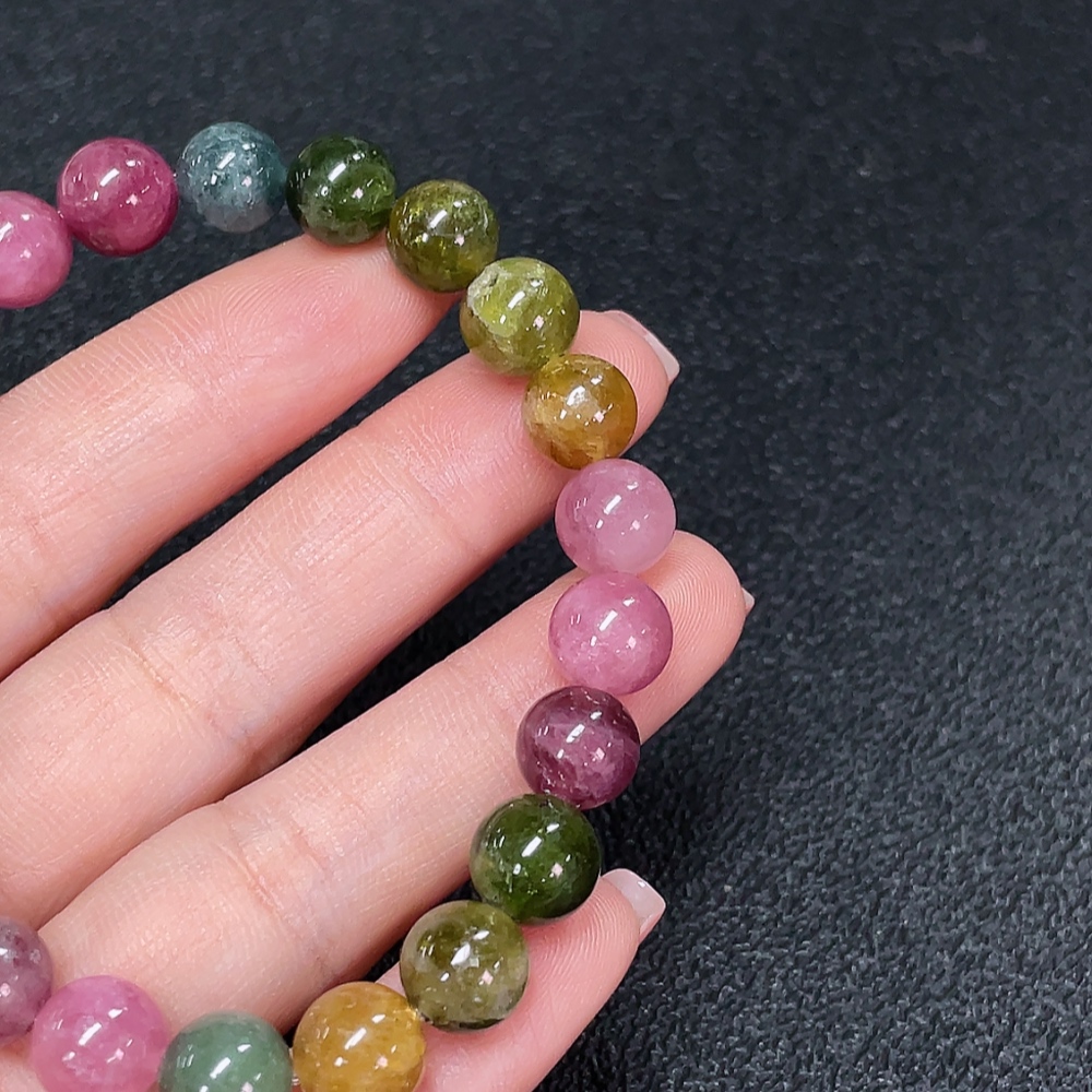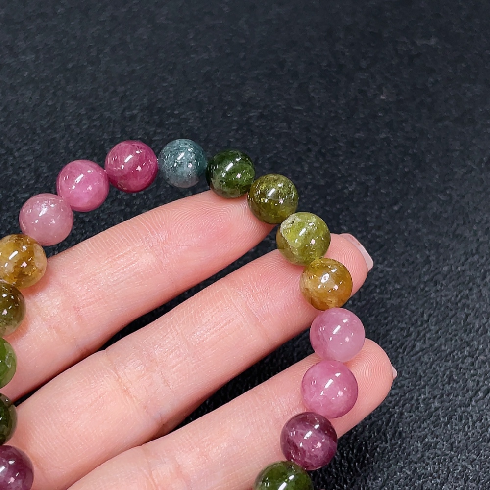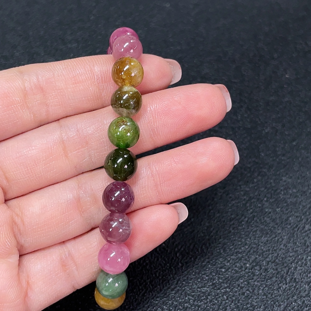 Tourmaline bracelet with other mineral components, visible organic matter, total weight approx. 22.14g, size approx. 8.6mm
