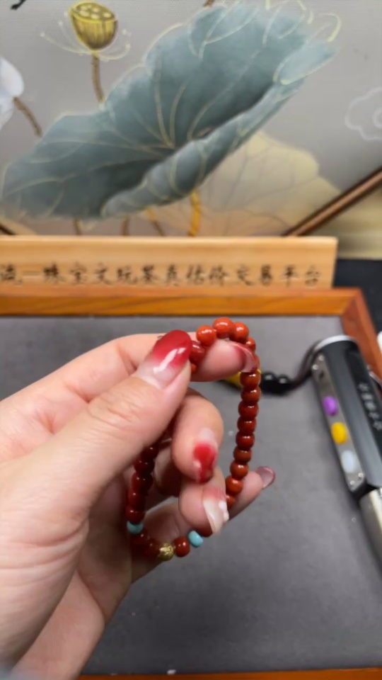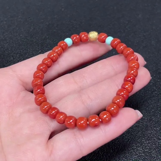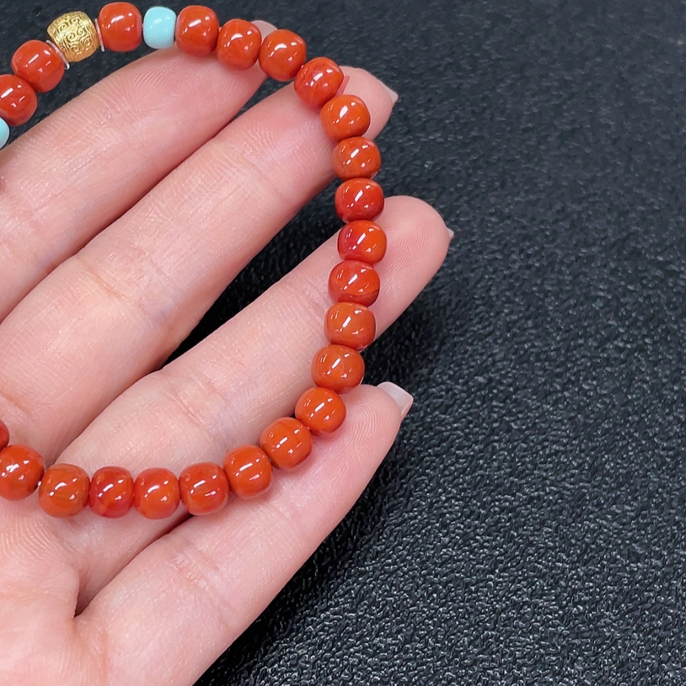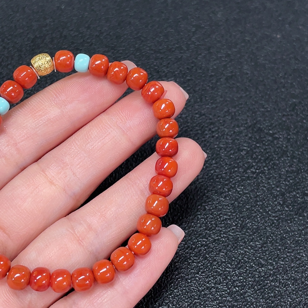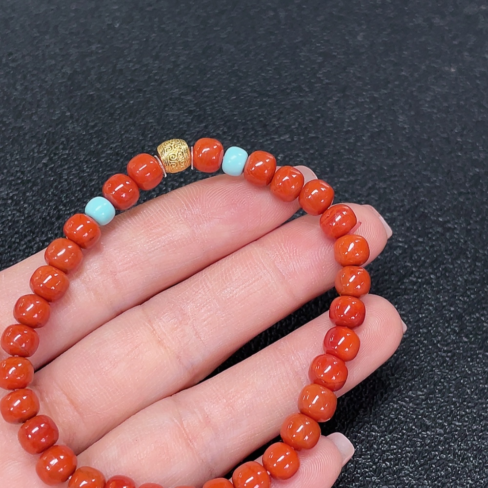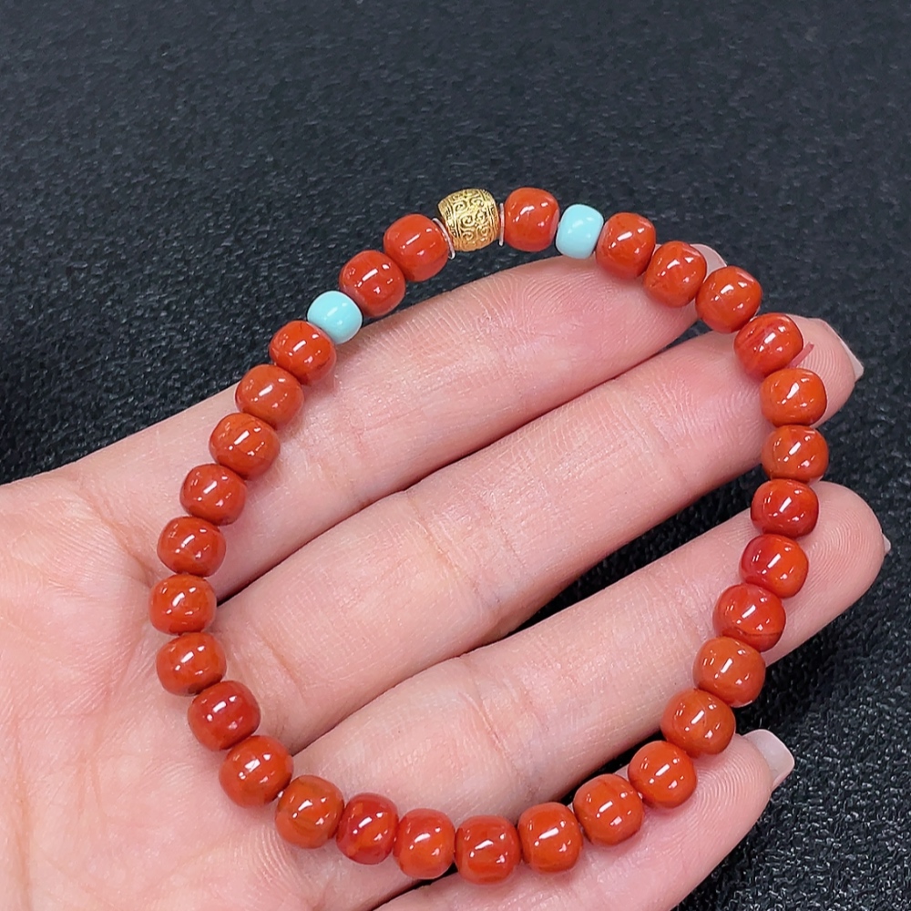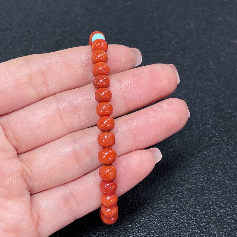 Red Agate Bracelet with Visible Organic Matter, Possible Non-Natural Accent Stones, Non-Metal, Total Weight Approx. 10.15g, Size ~6.4mm