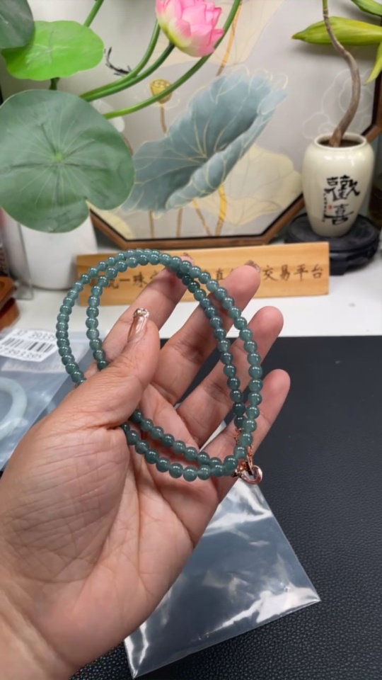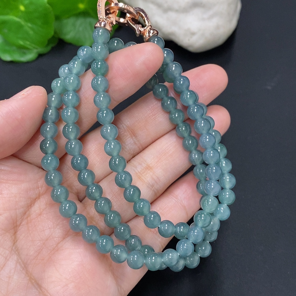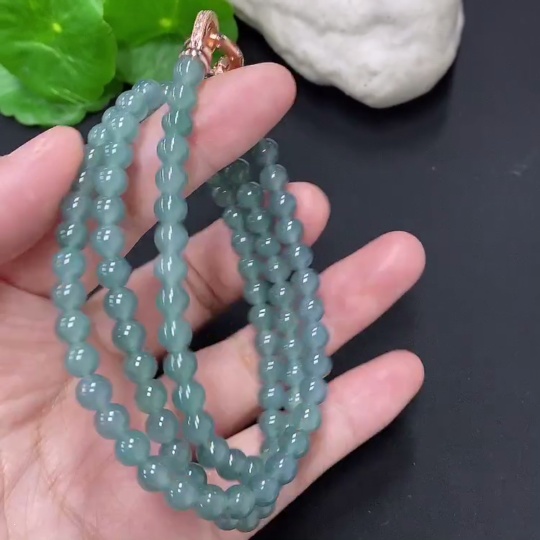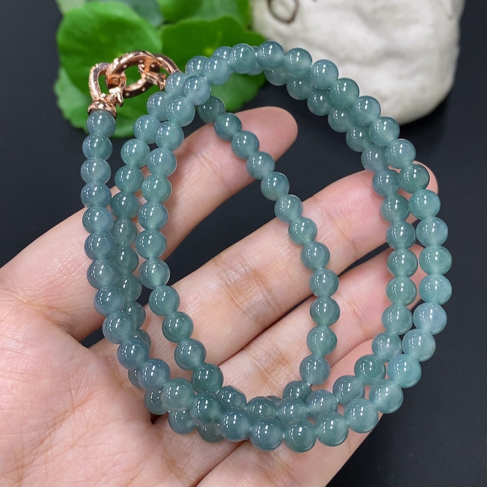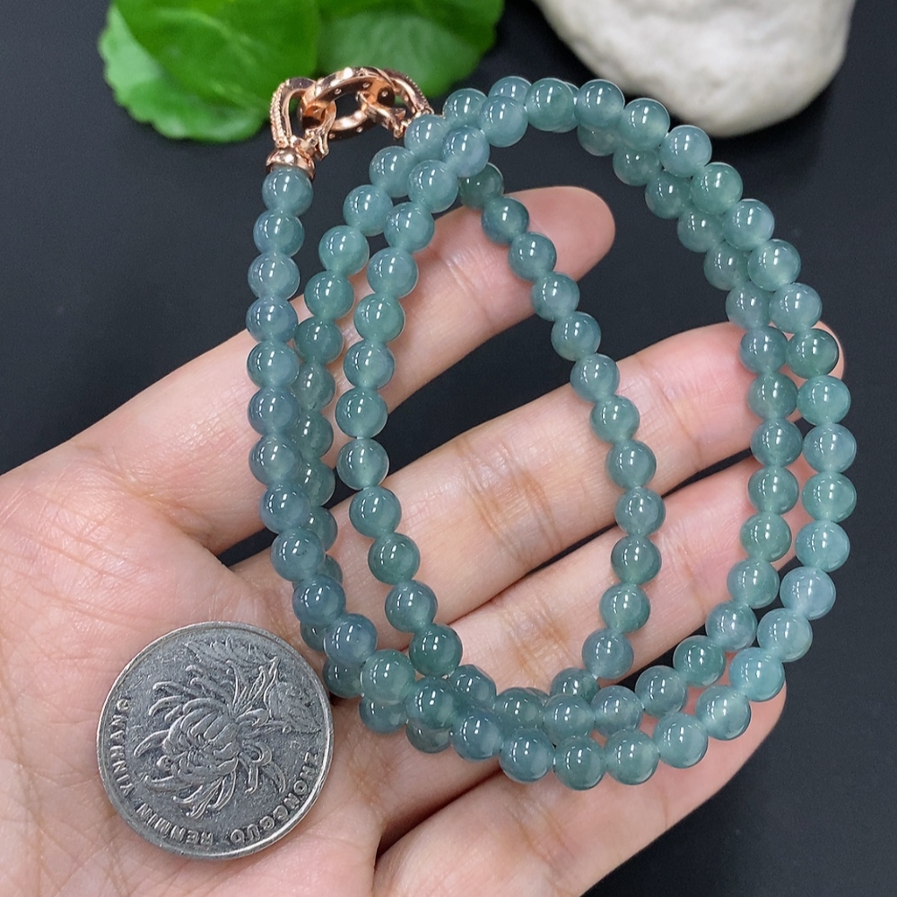 Jadeite Bead Necklace Approx. 5.6mm Non-Gold Total Weight Approx. 35.4g