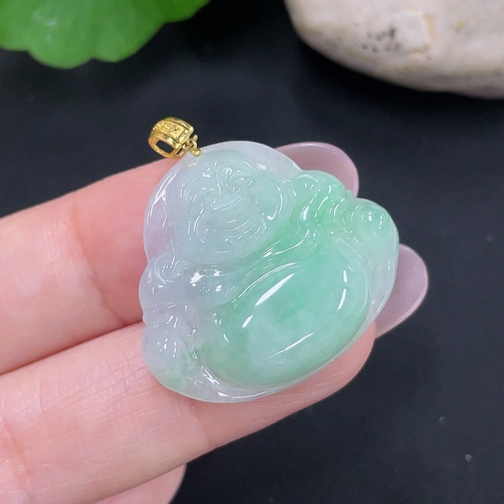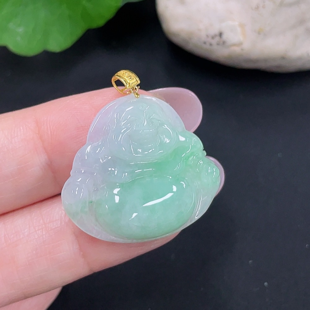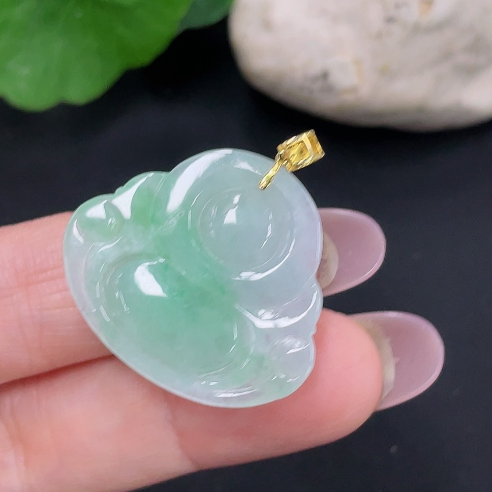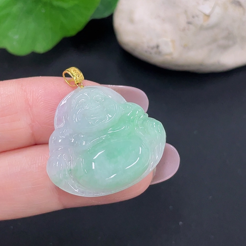 Jadeite Buddha Pendant 18K Gold Total Weight Approx. 5.2g