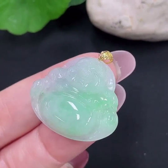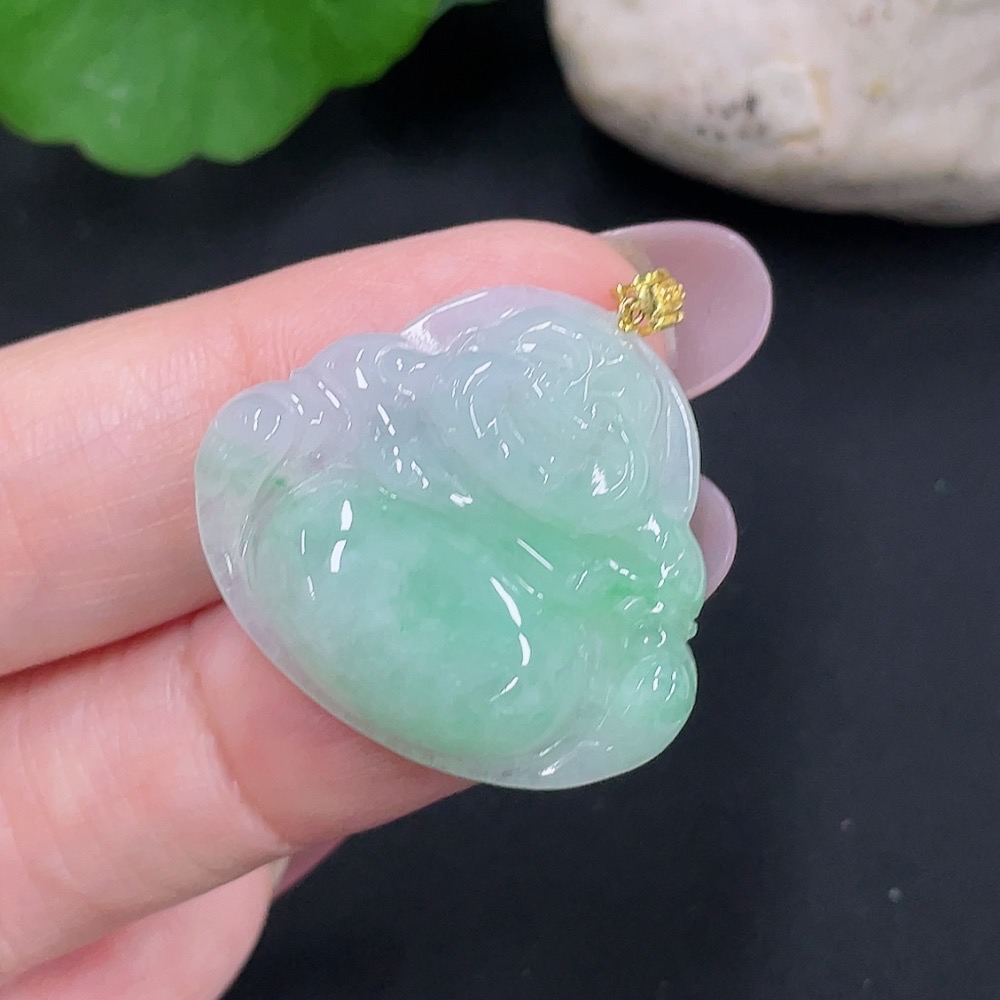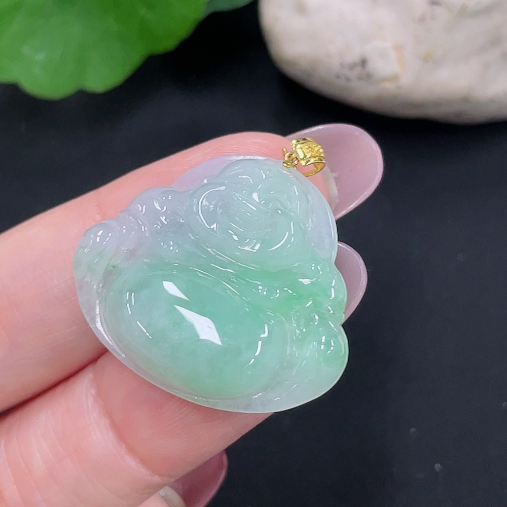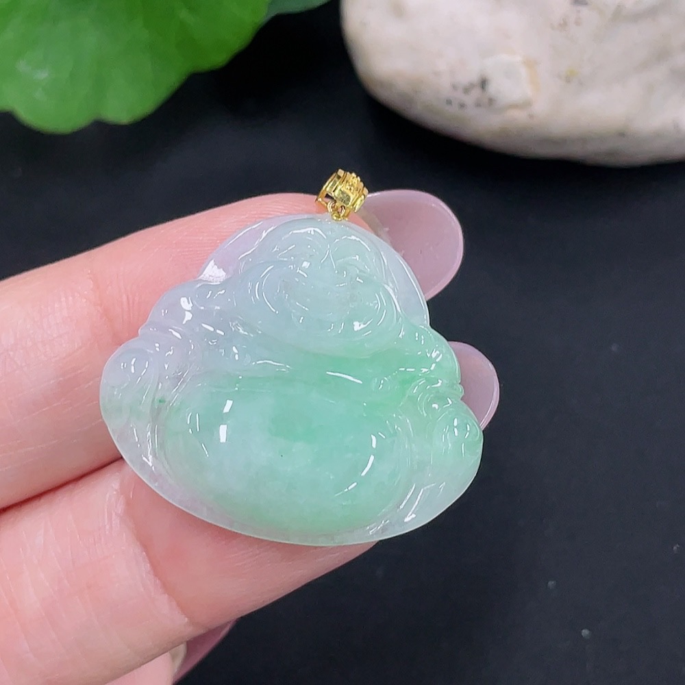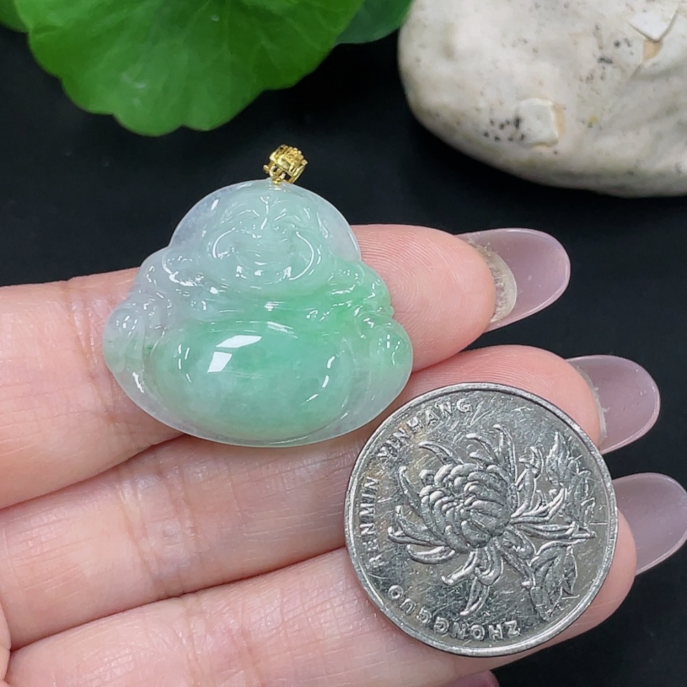 Jadeite Buddha Pendant 18K Gold Total Weight Approx. 5.2g