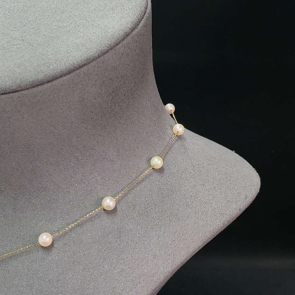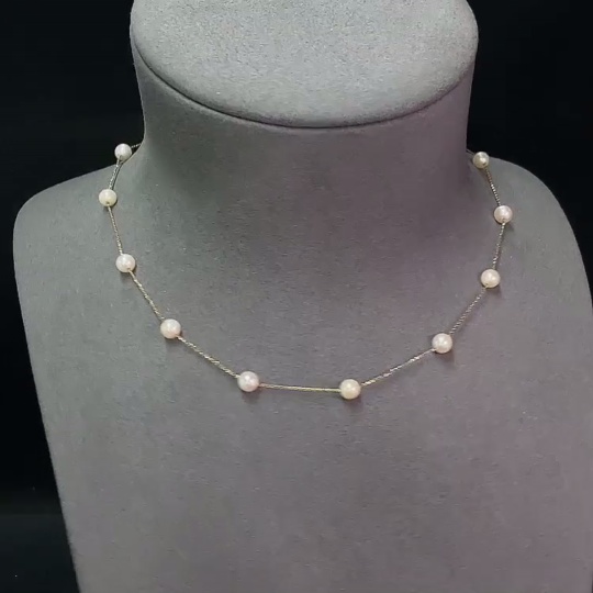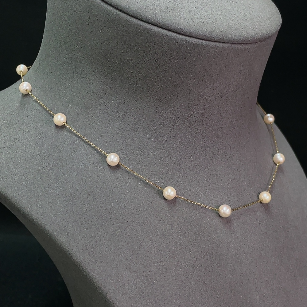 18K Saltwater Pearl Strand Necklace, Total Weight Approx. 3.71g, Pearl Size Approx. 5.1mm