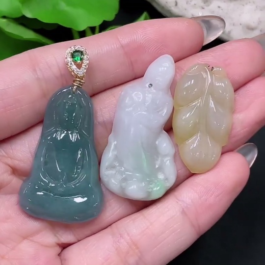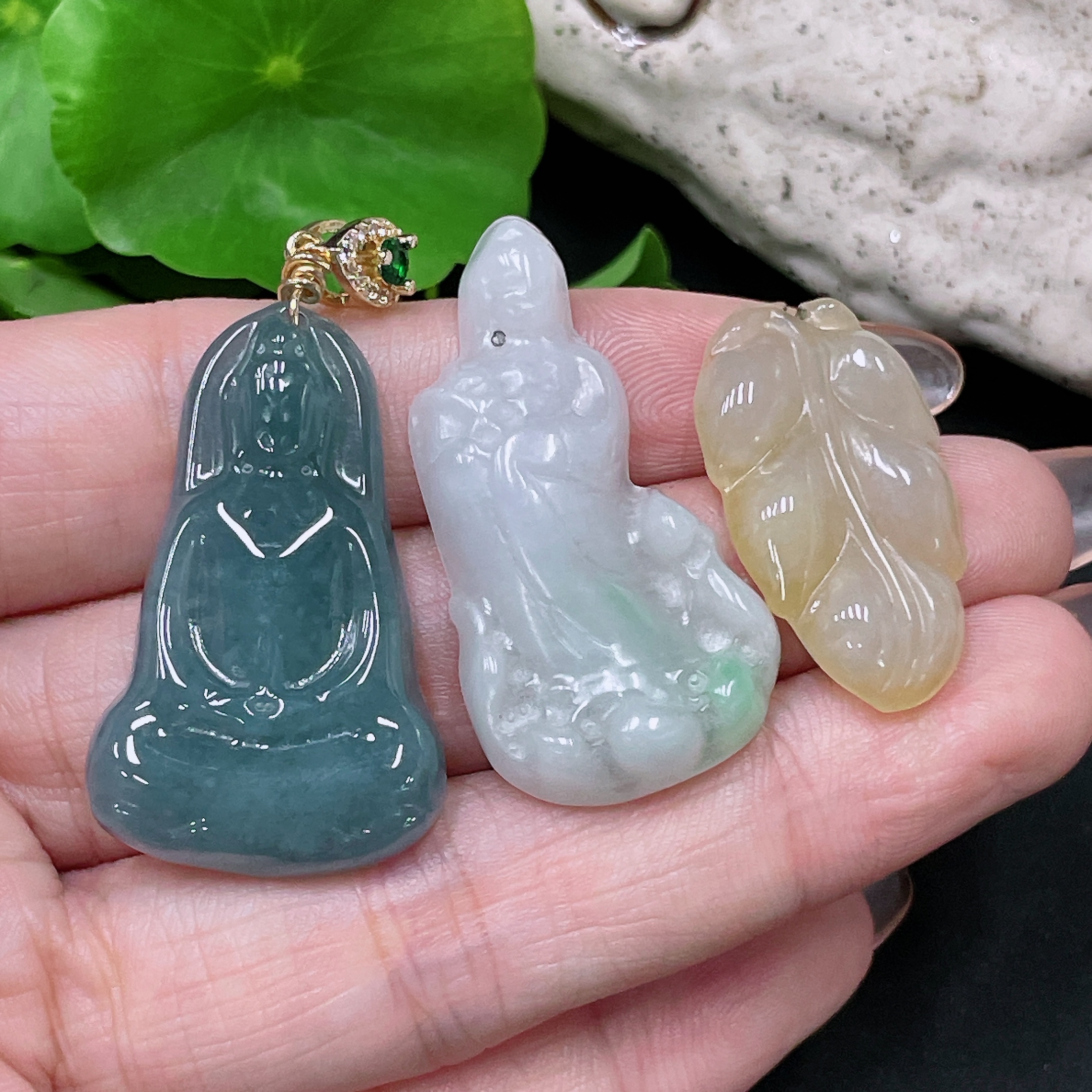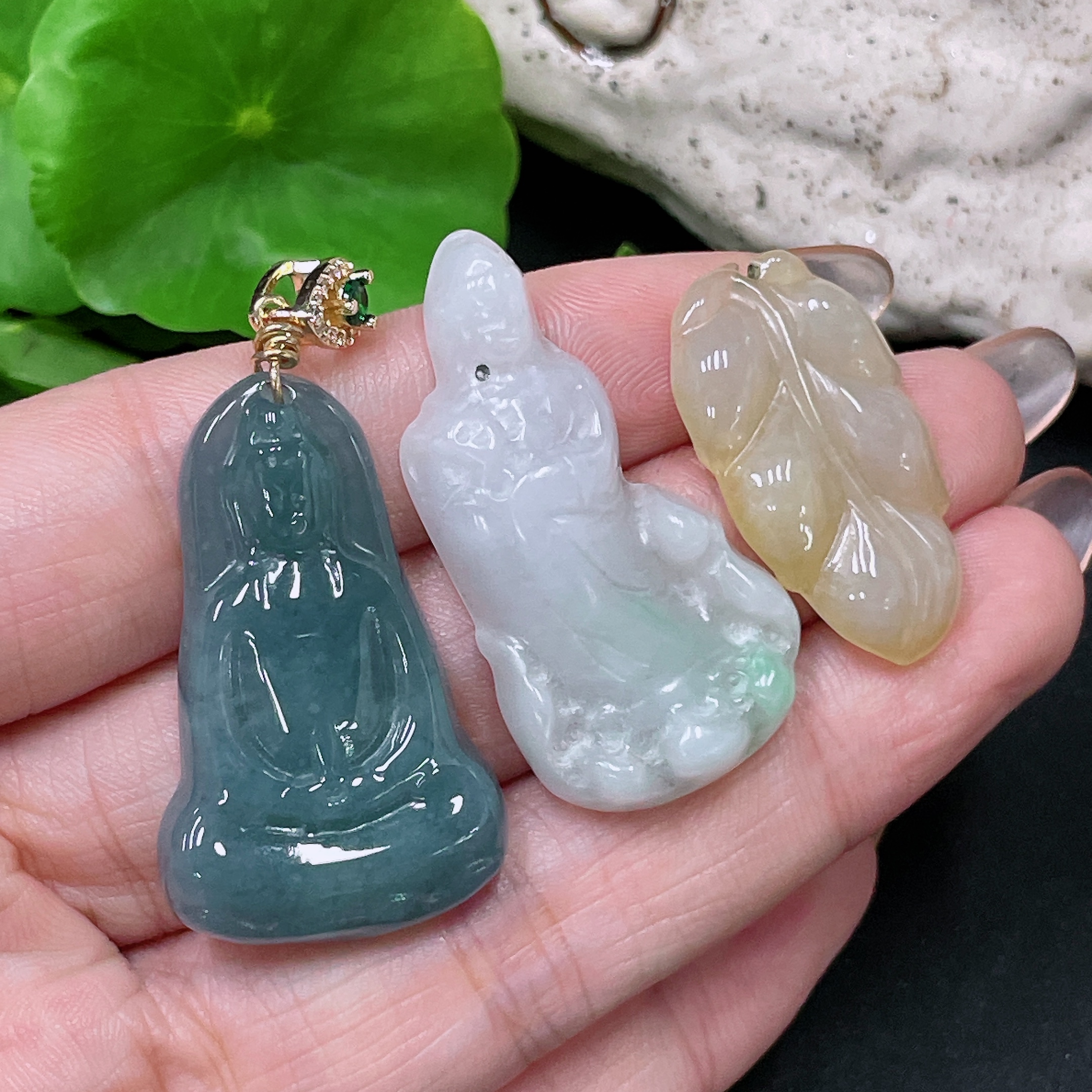 Trezaar - Jadeite Pendants Sell as a Lot Non-Gold