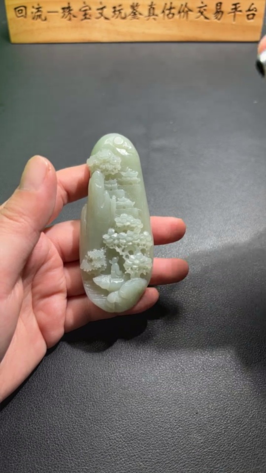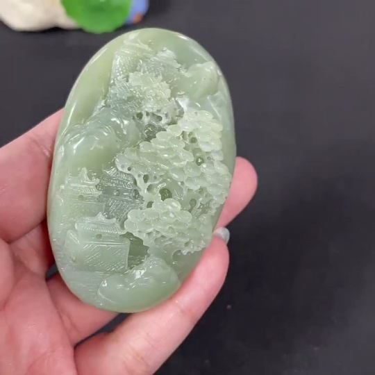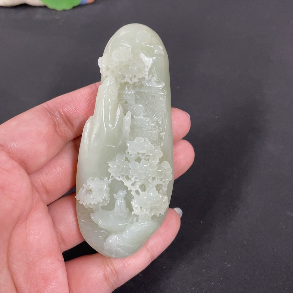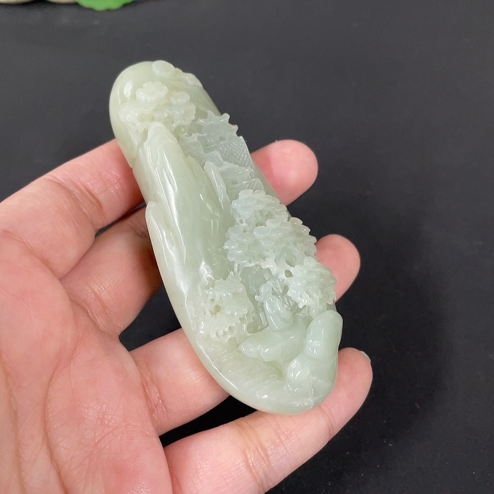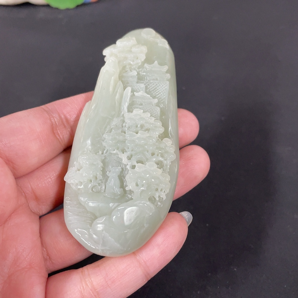 Hetian Jade Handheld Carving Landscape, Total Weight Approx. 103.9g