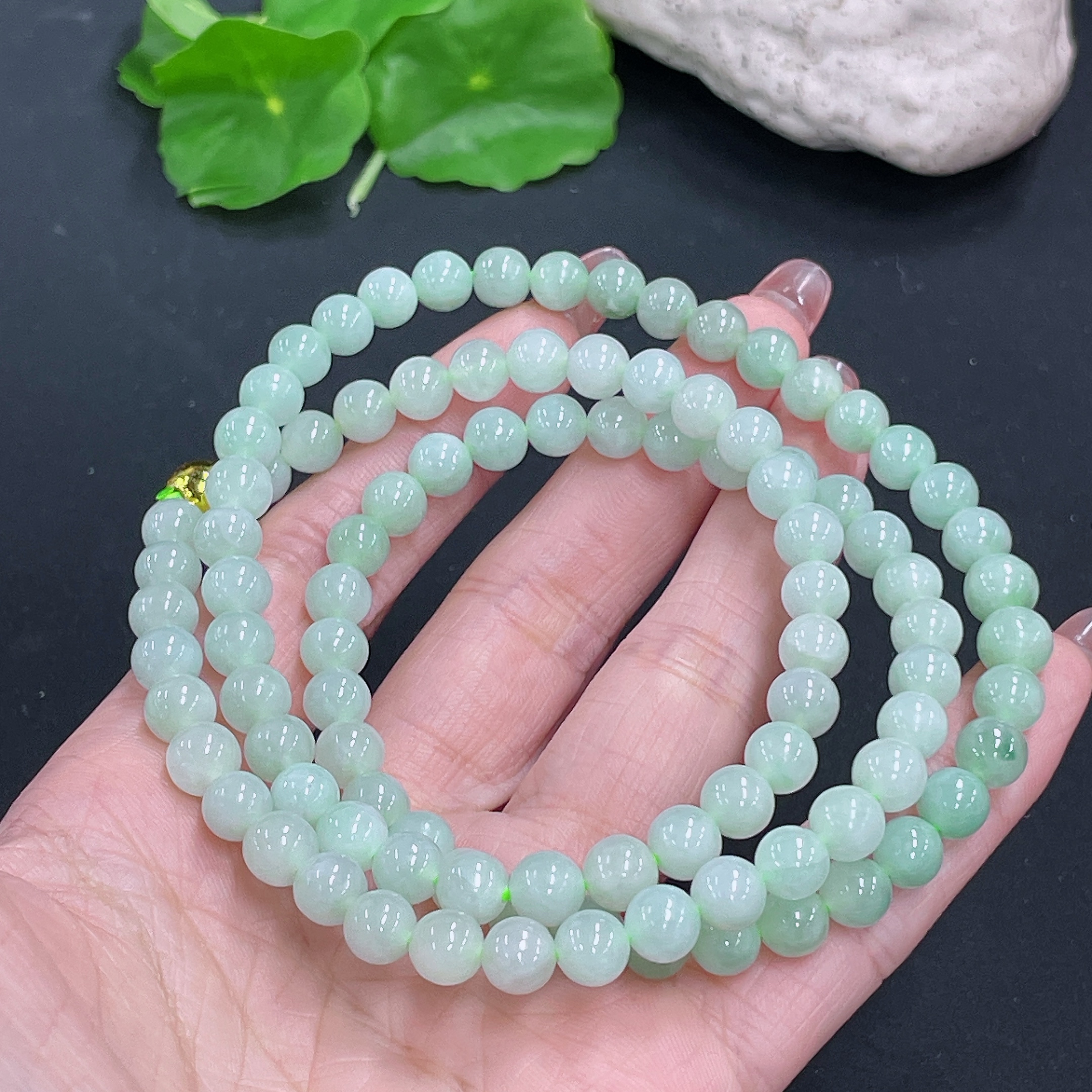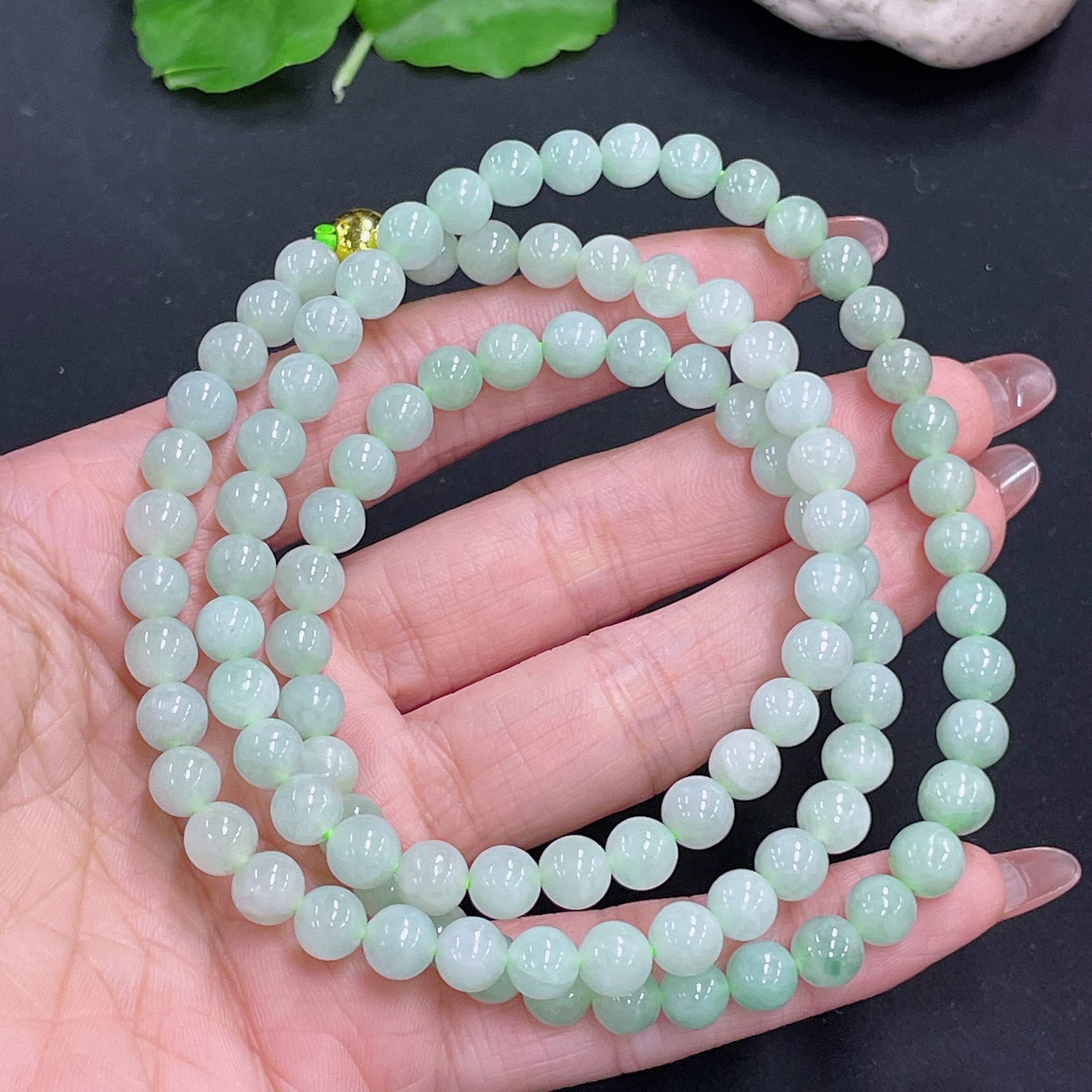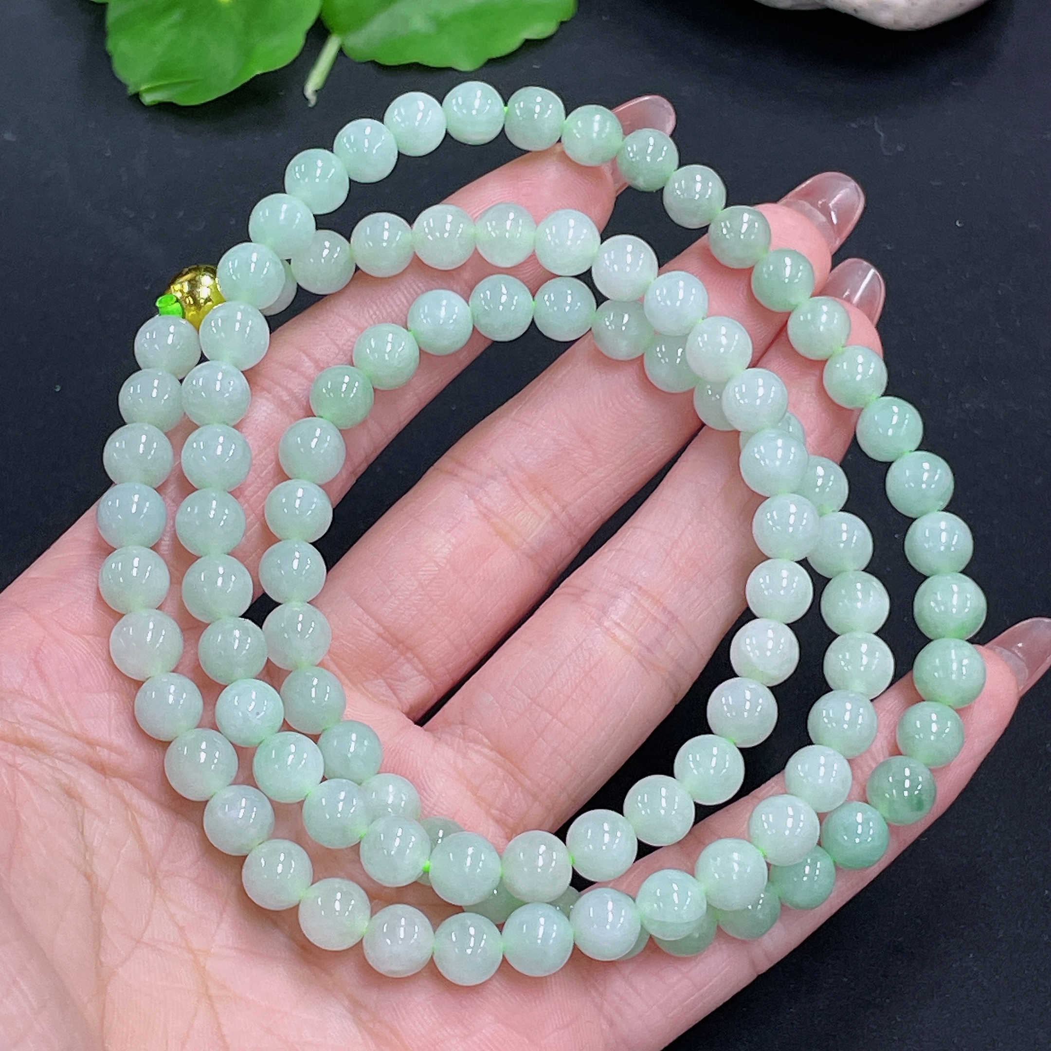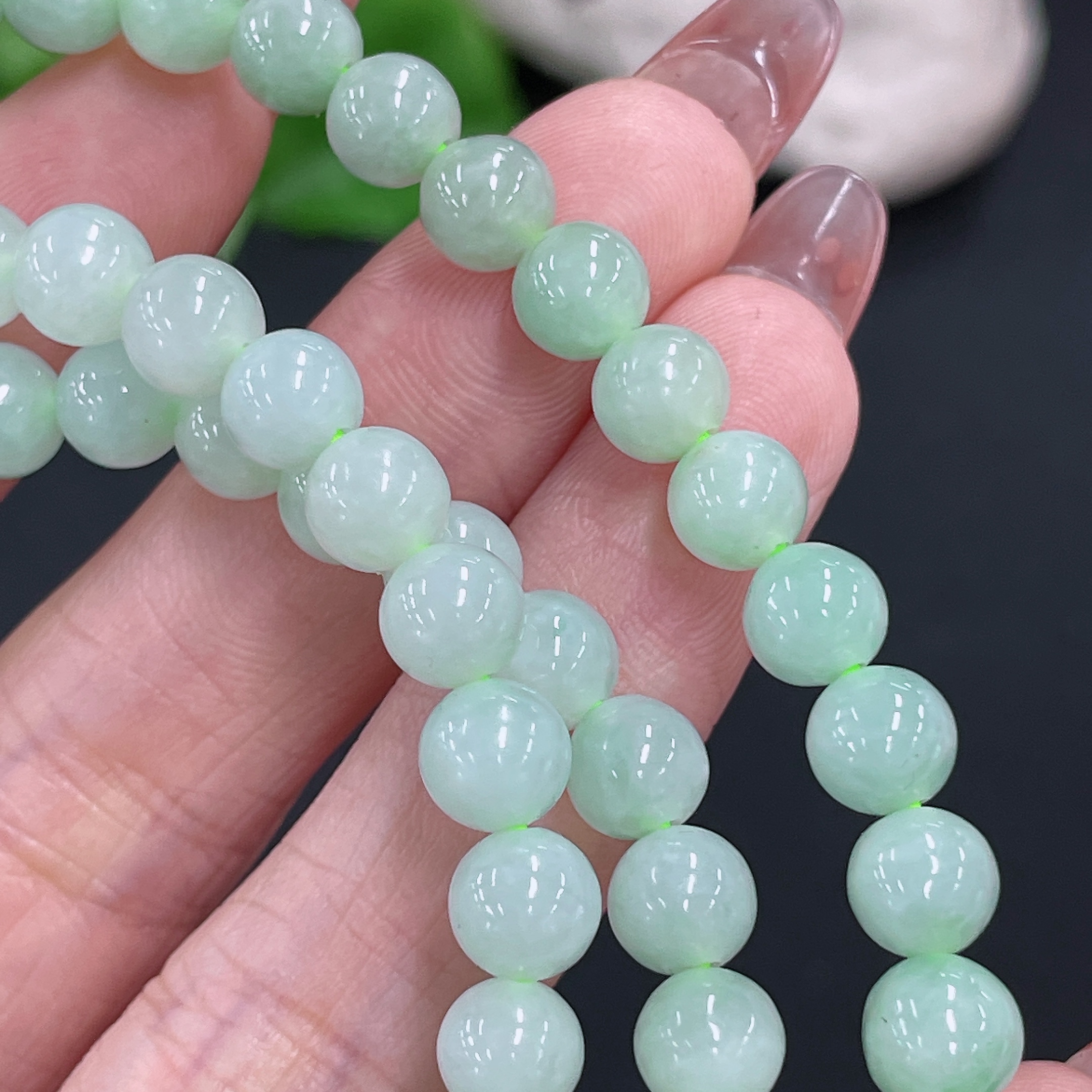 Jadeite Bead Necklace Non-Gold Total Weight Approx. 53.26g Size 7mm