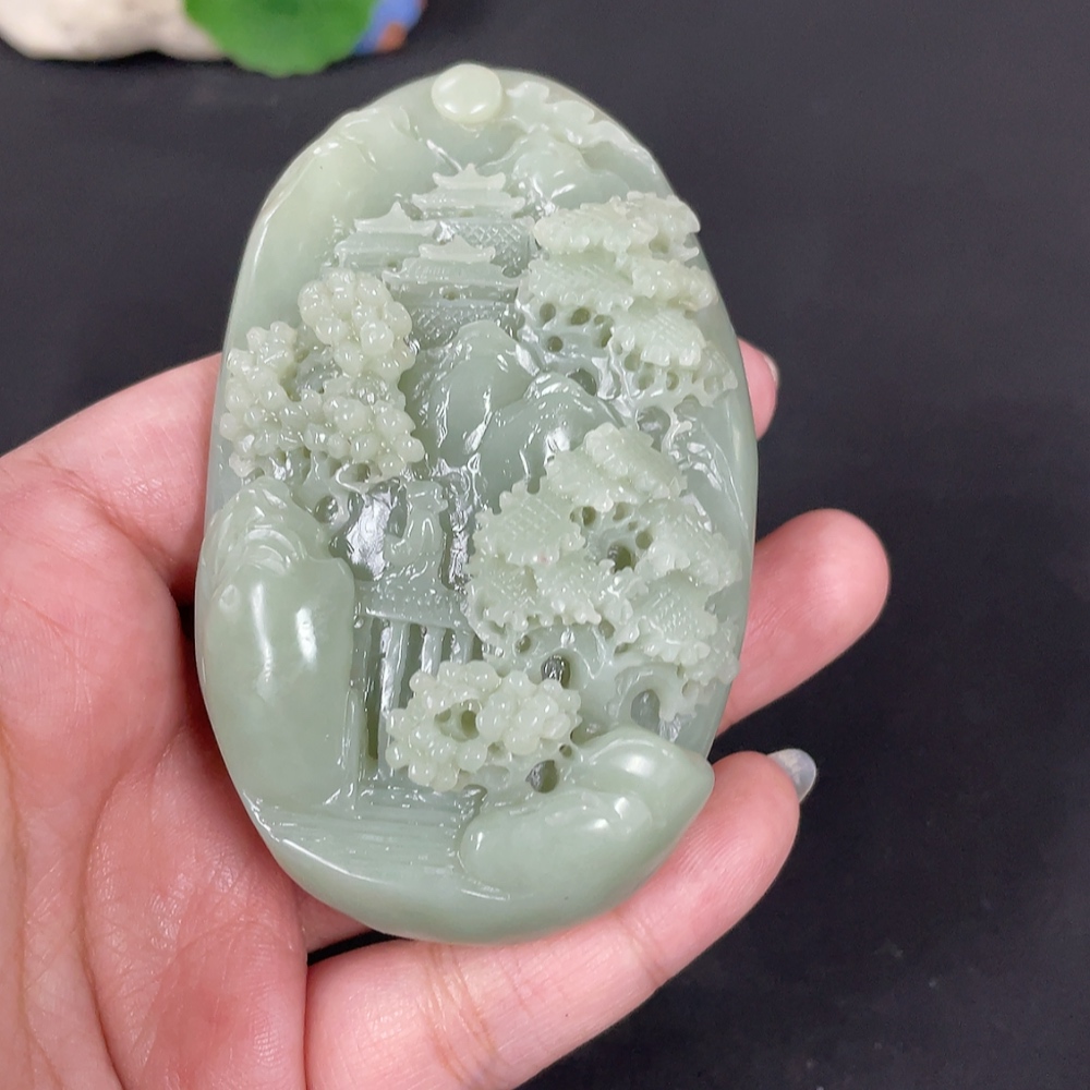 Hetian Jade Handheld Piece Landscape Total Weight Approx. 183.2g