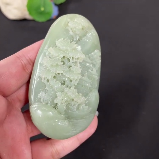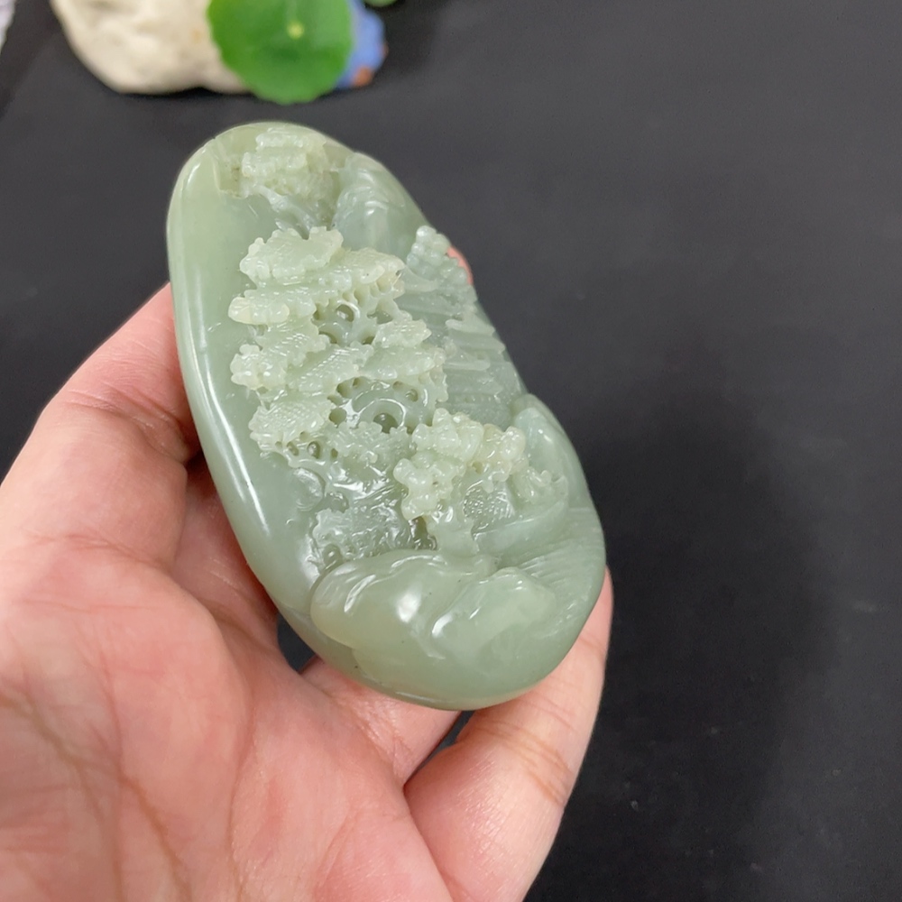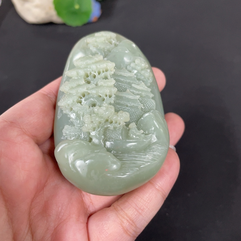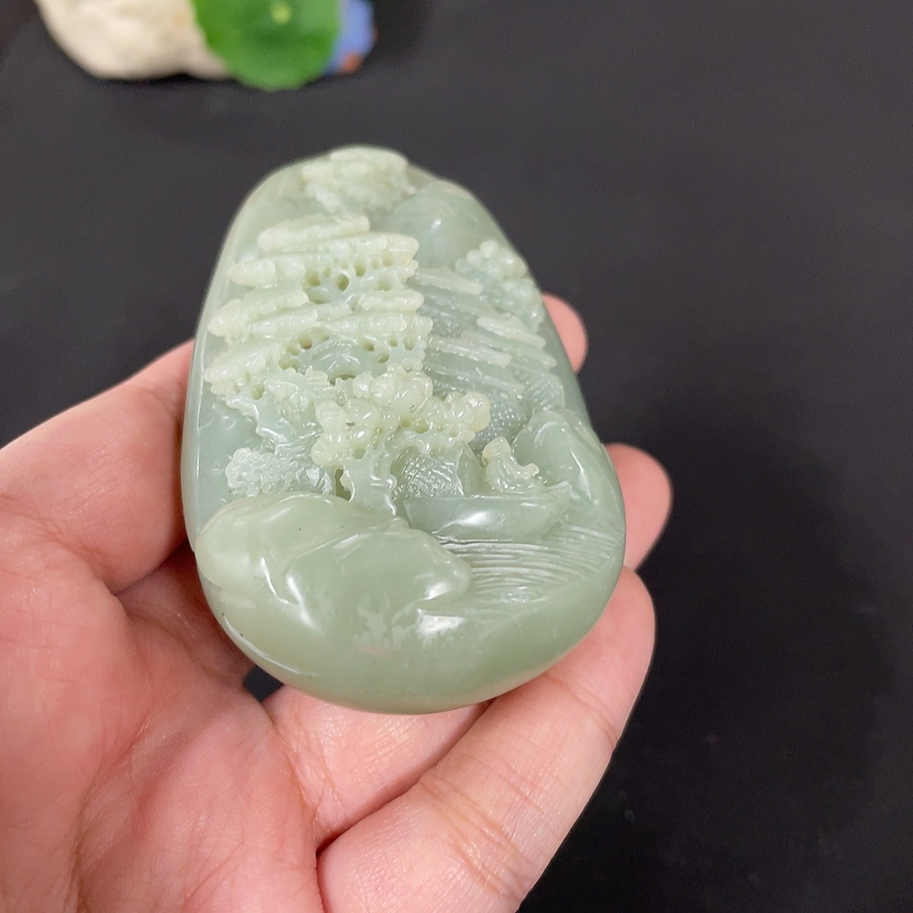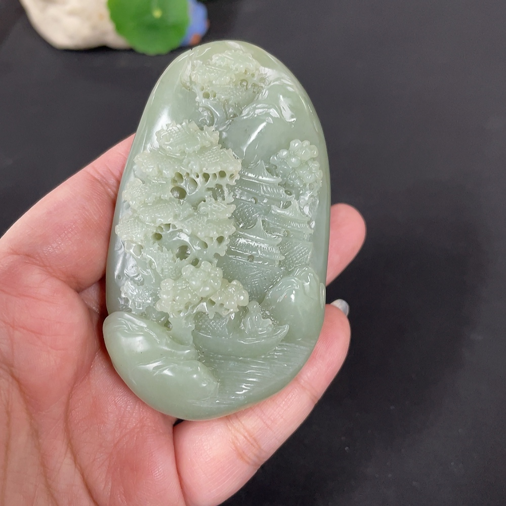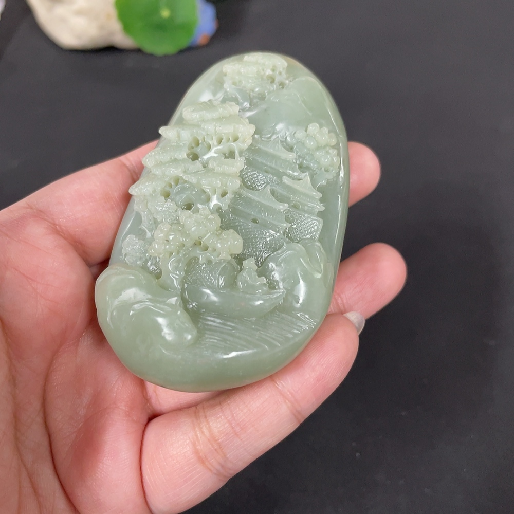 Hetian Jade Handheld Carving - Landscape, Total Weight Approx. 156.6g