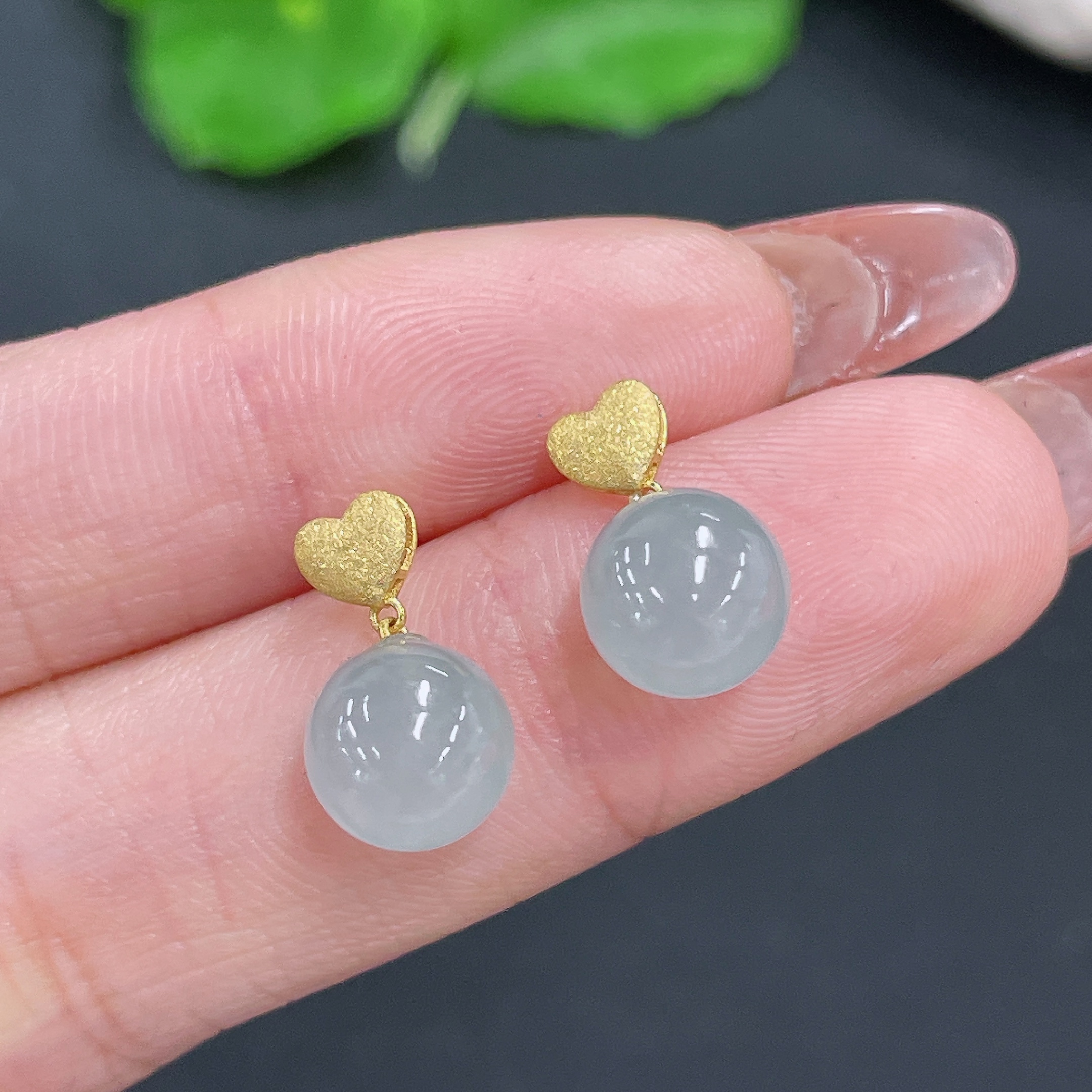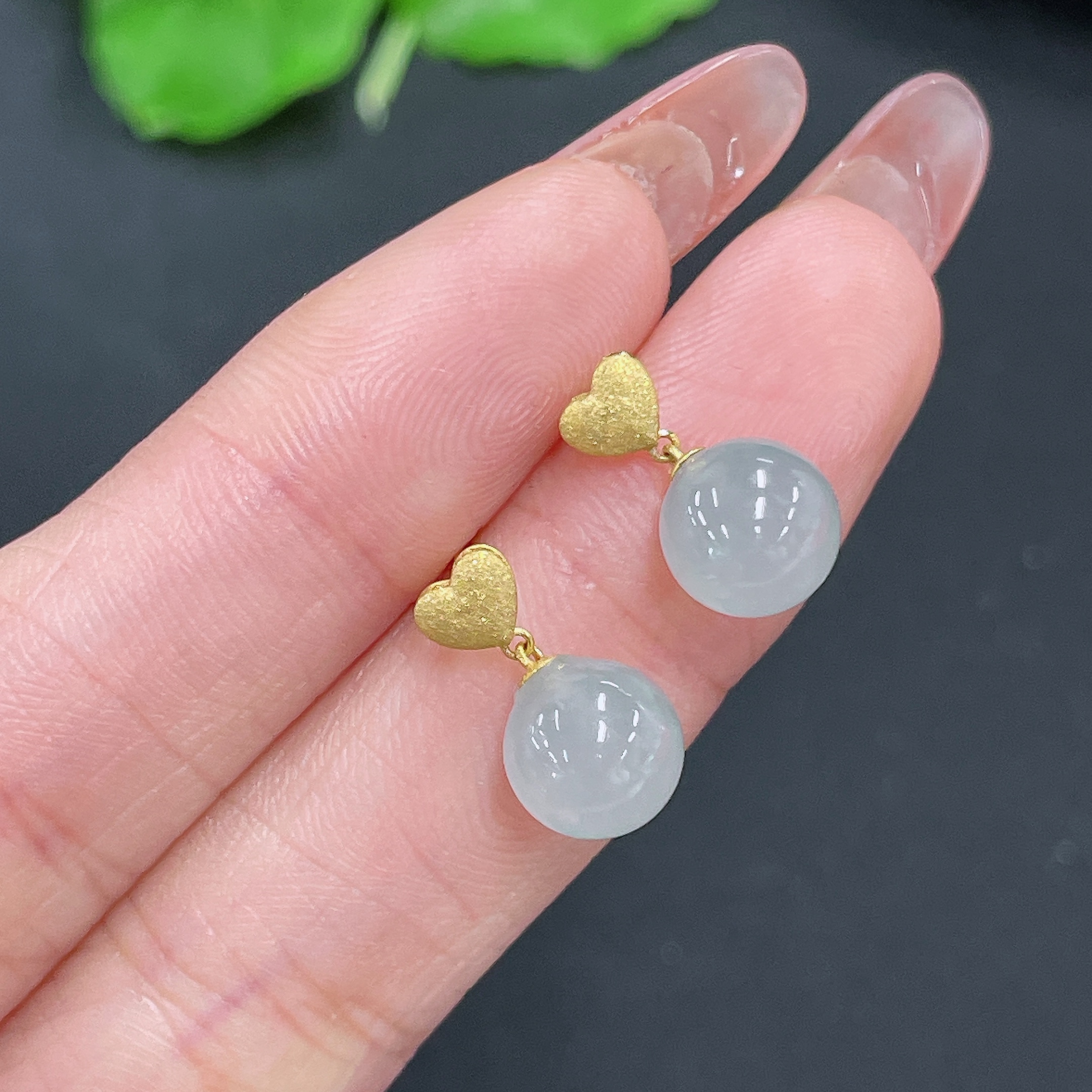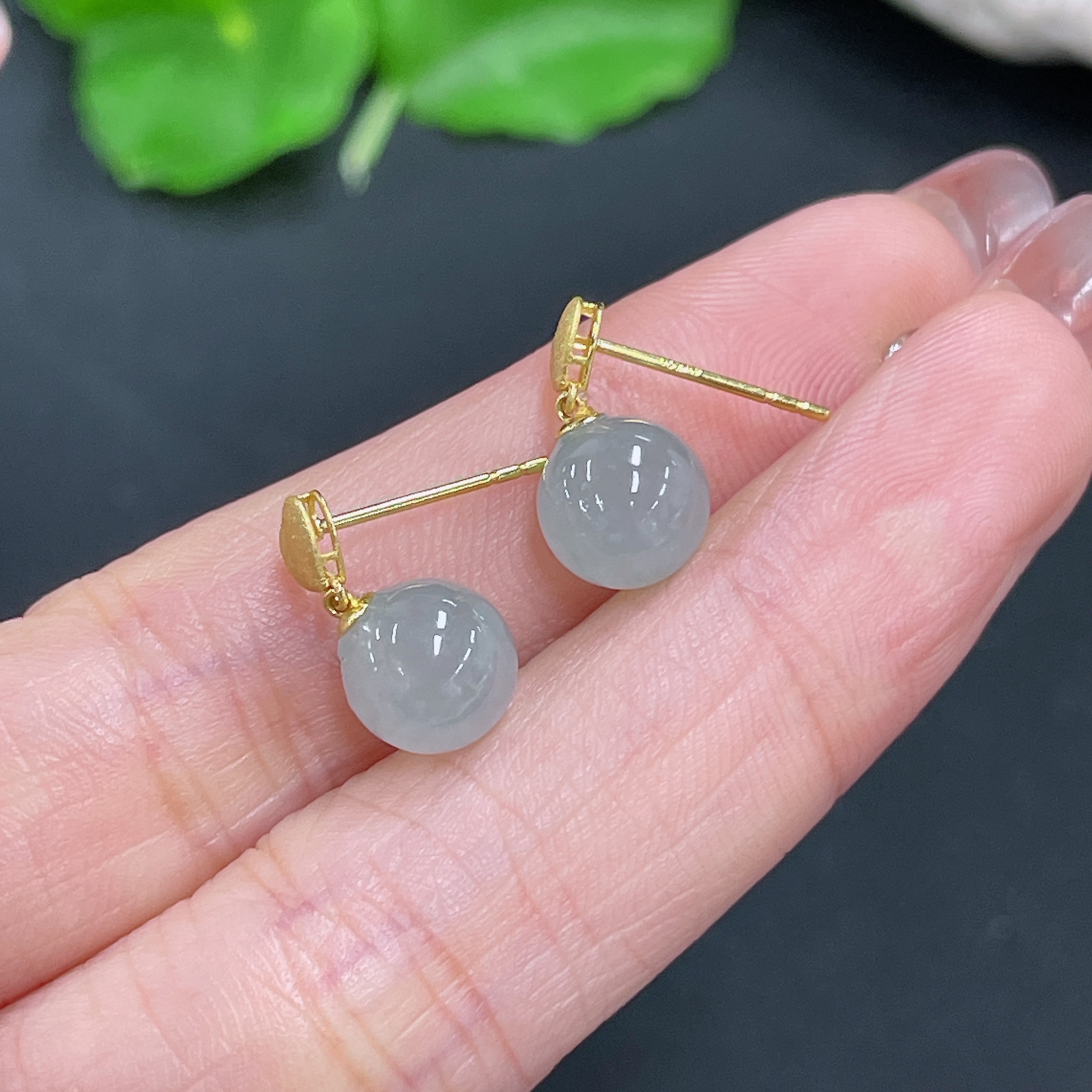 Jadeite Earrings 18k Gold Inlaid Total Weight Approx. 2.23g