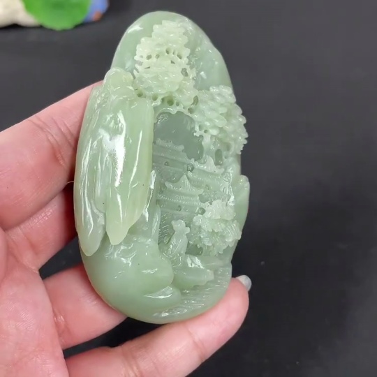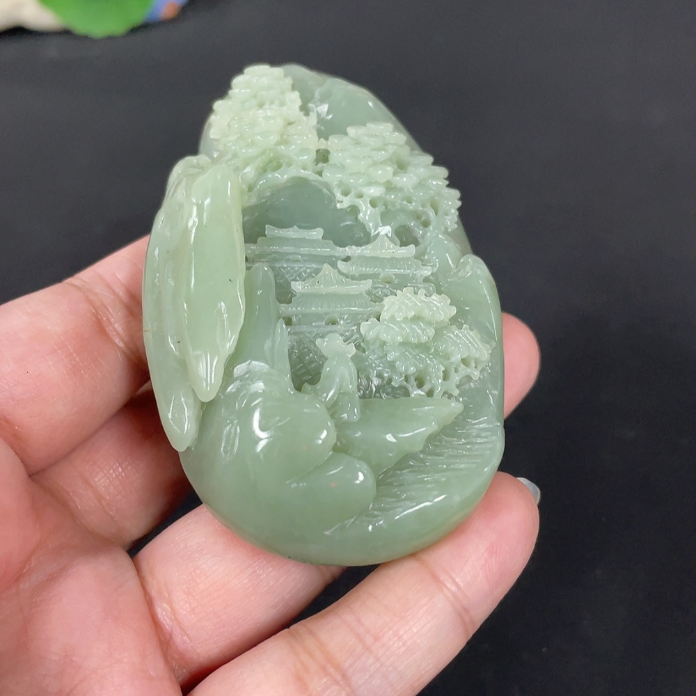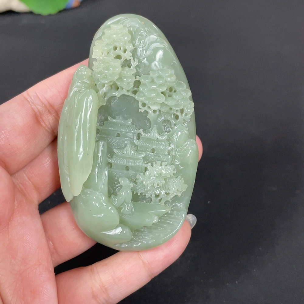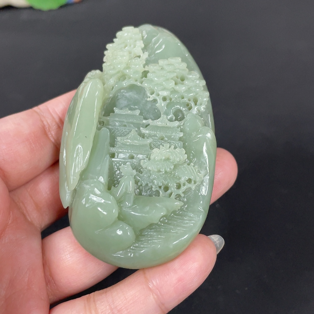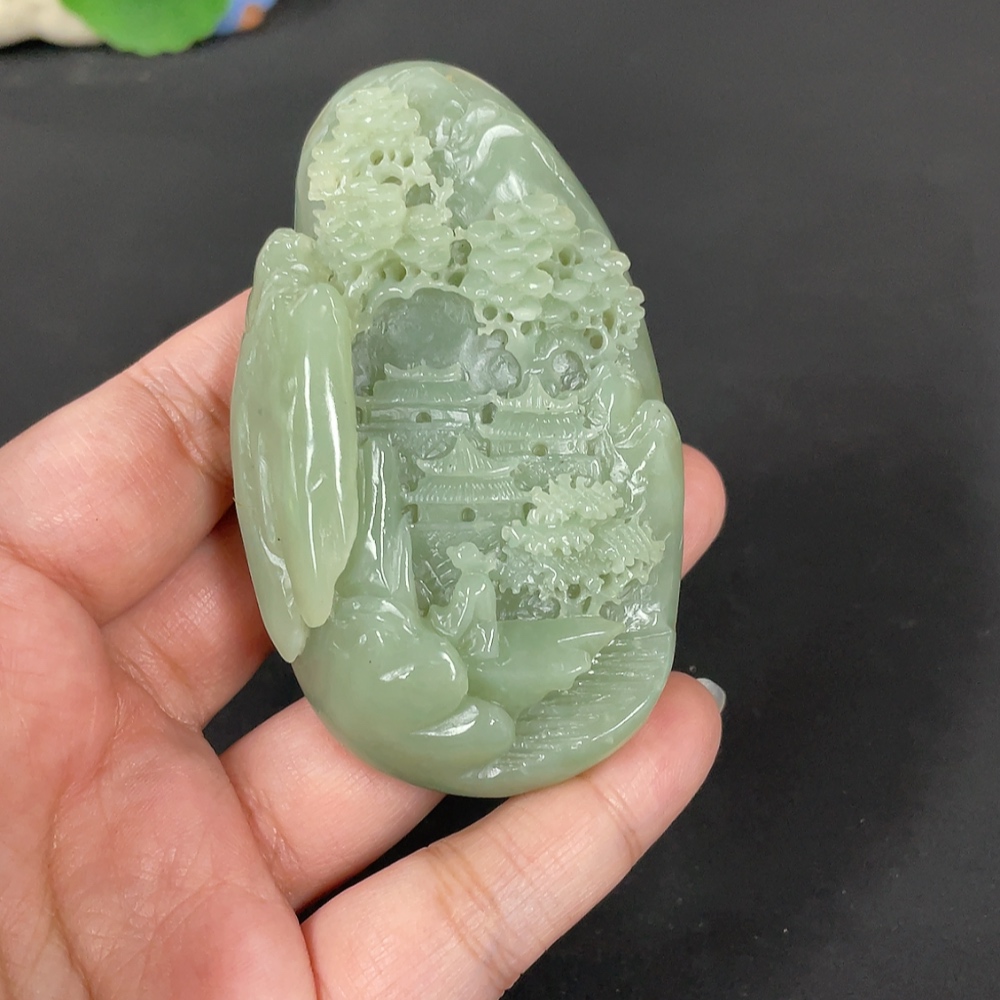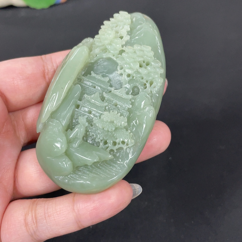 Hetian Jade Handheld Carving - Landscape, Total Weight Approx. 122.2g