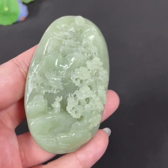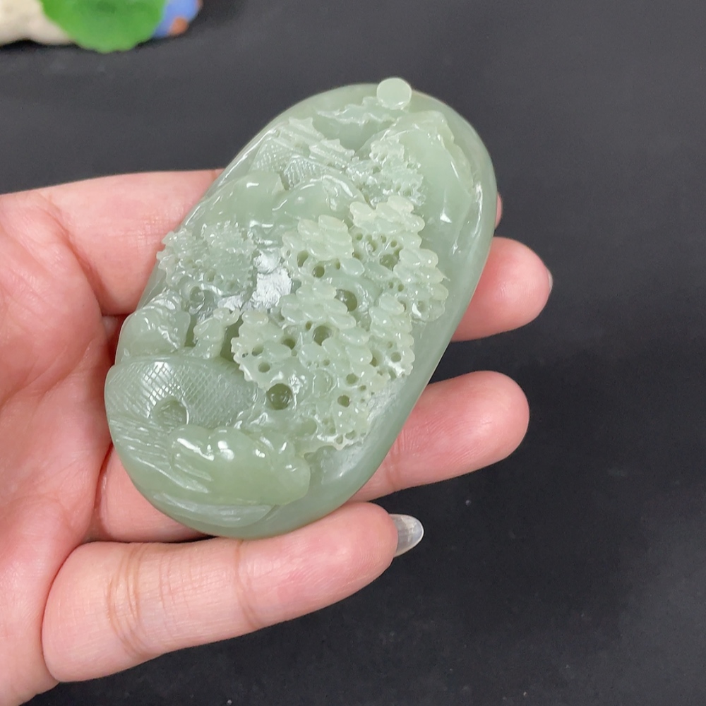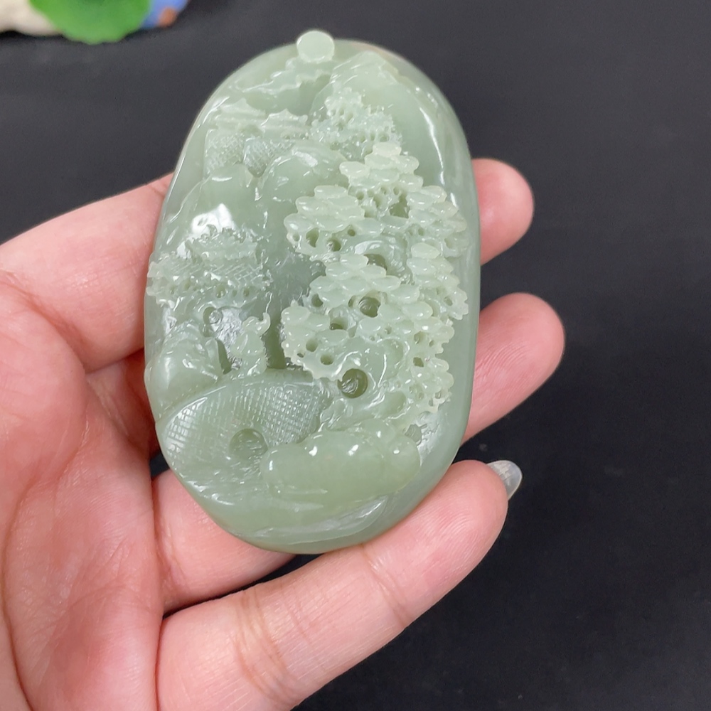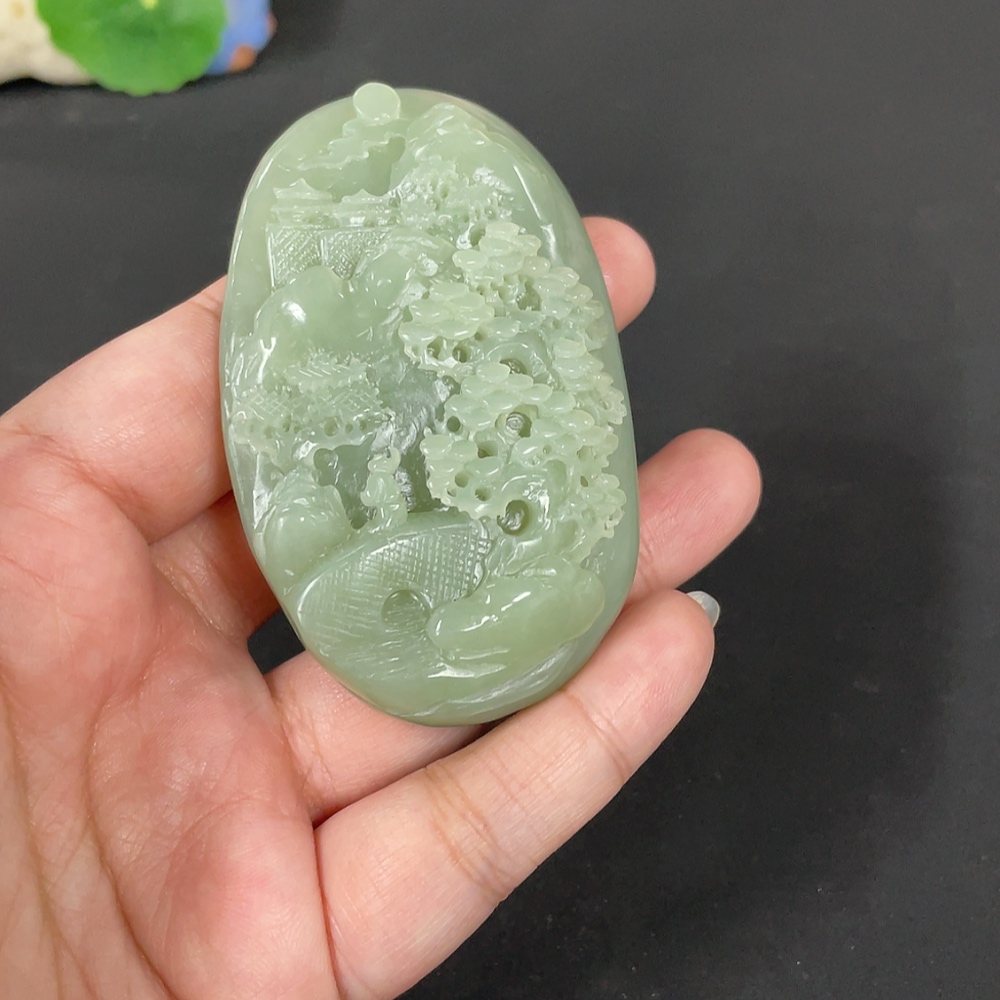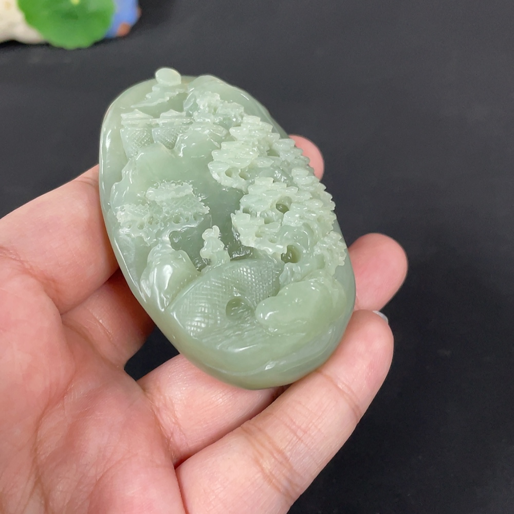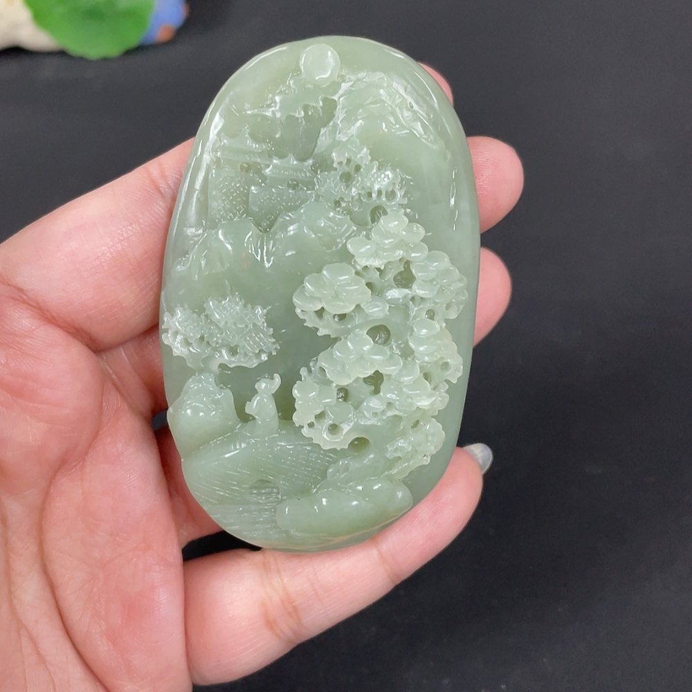 Hetian Jade Handheld Carving - Landscape, Total Weight Approx. 115.9g