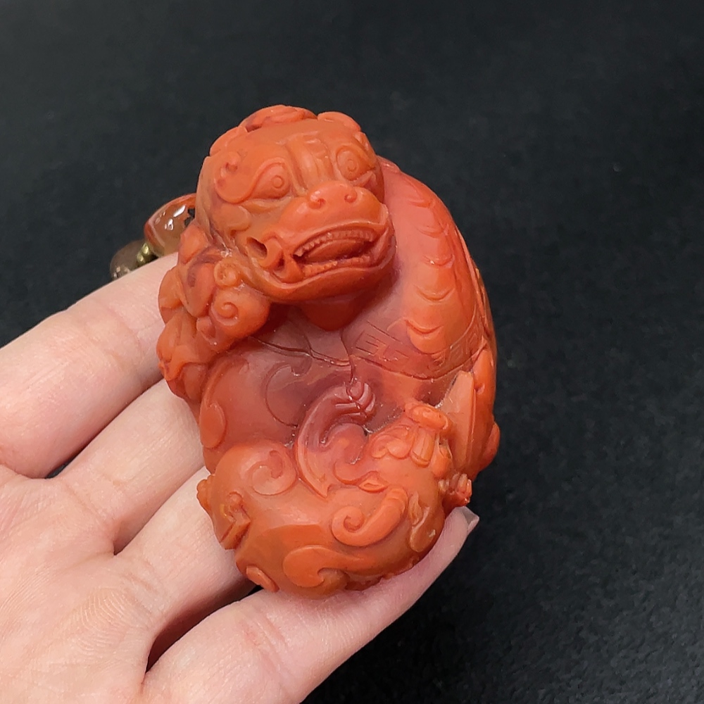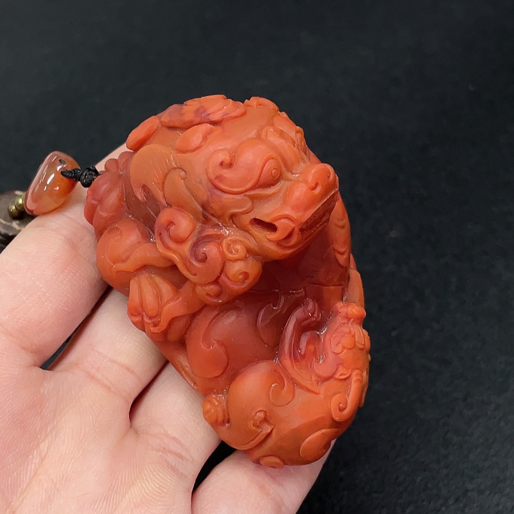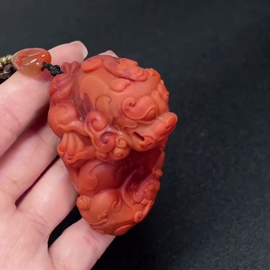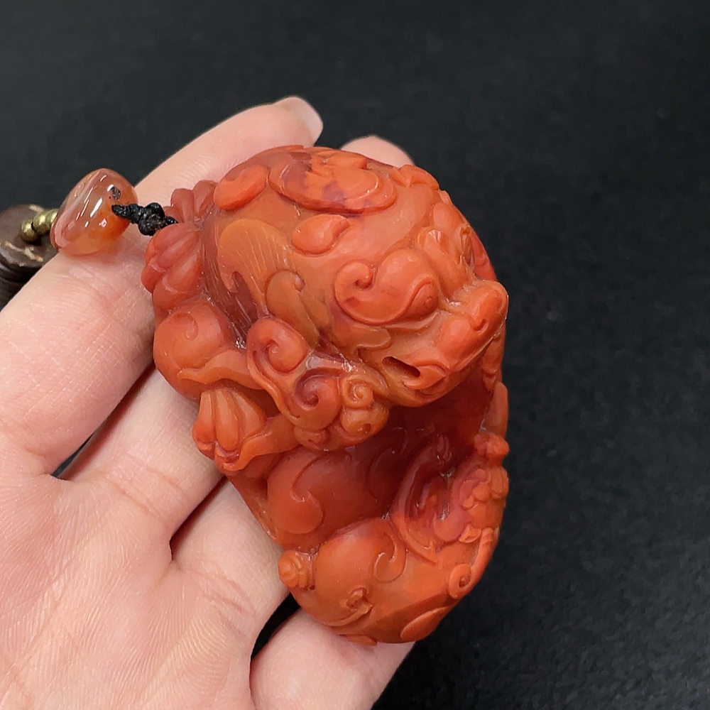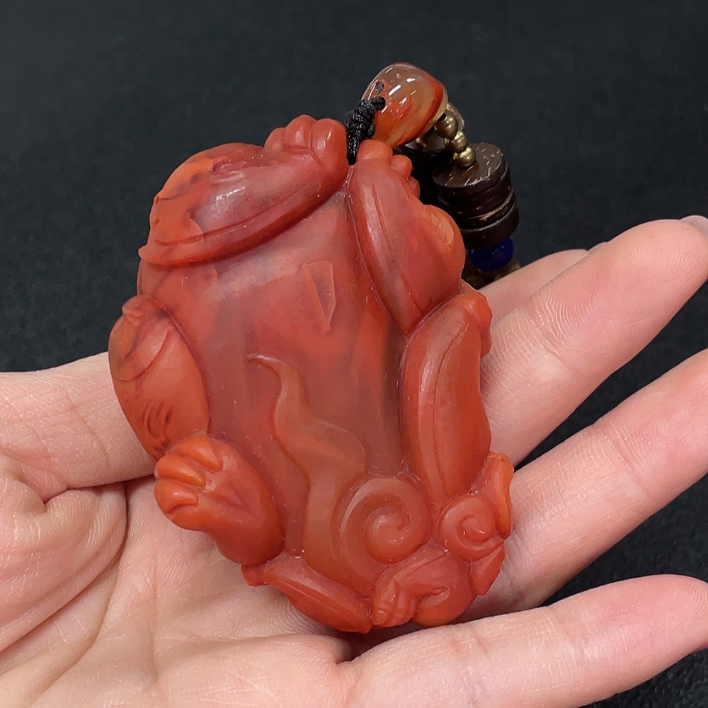 Red Agate Pendant with Visible Organic Matter, Non-Natural Accent Stones, Non-Metal, Total Weight Approx. 157.74g Including Chain