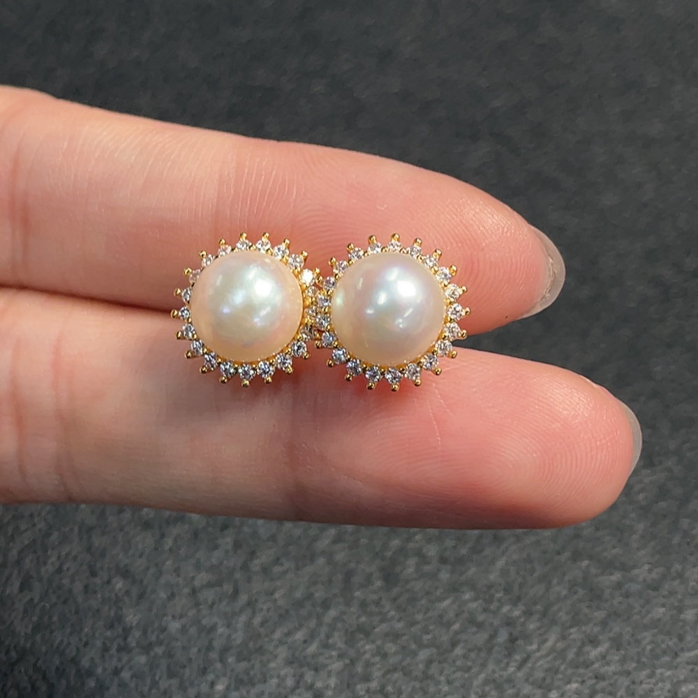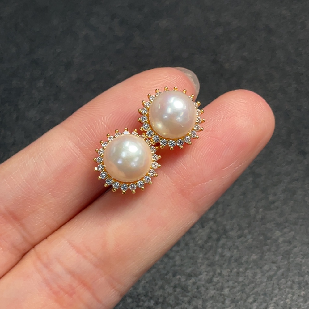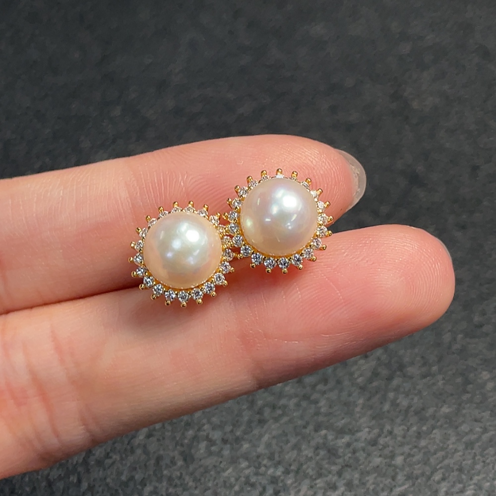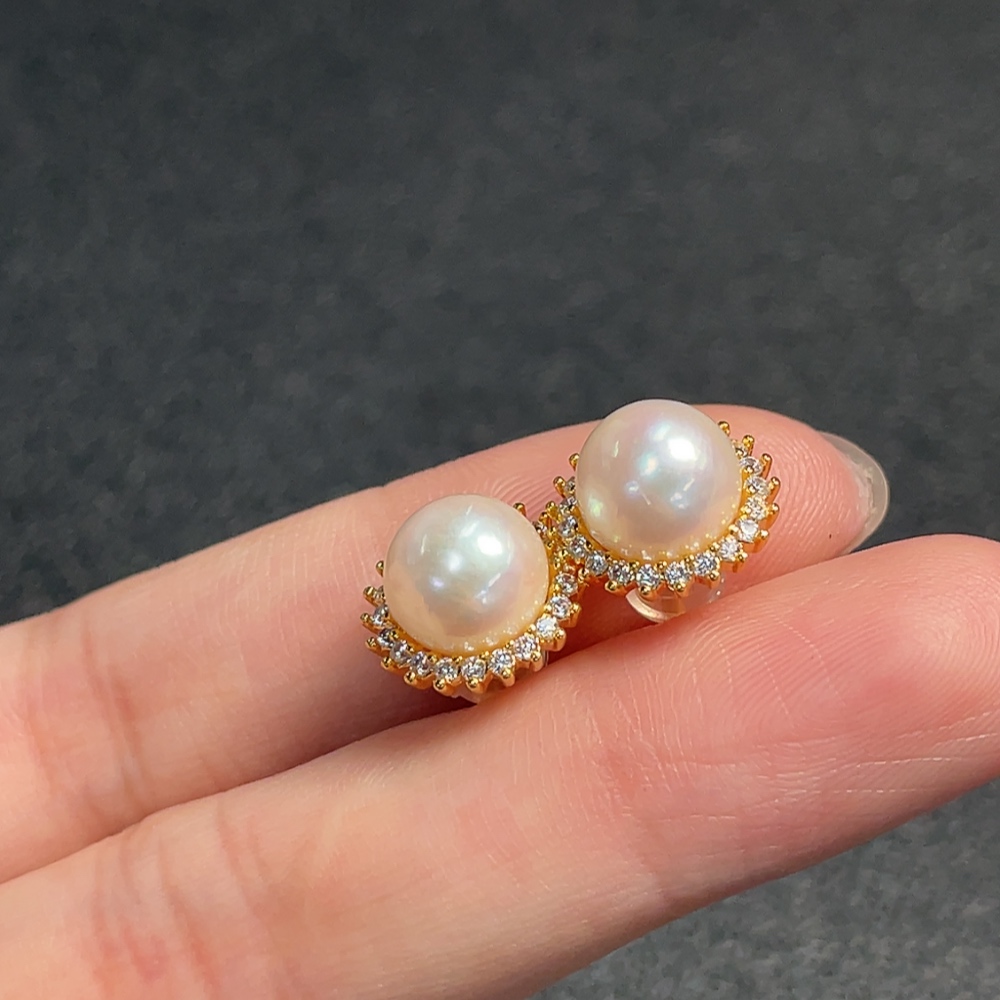 Seawater pearl earrings non-gold total weight approximately 3.24g size about 7.9mm