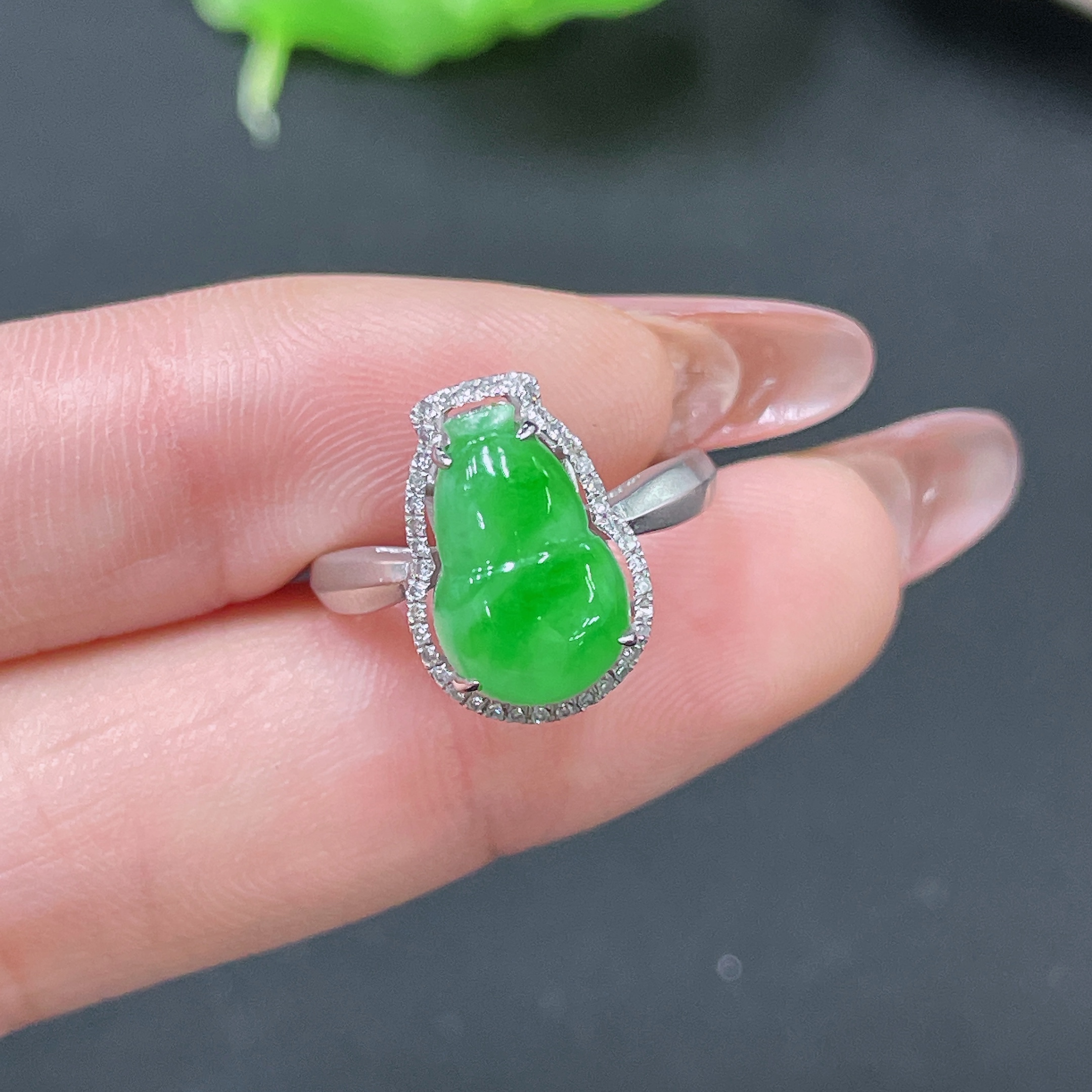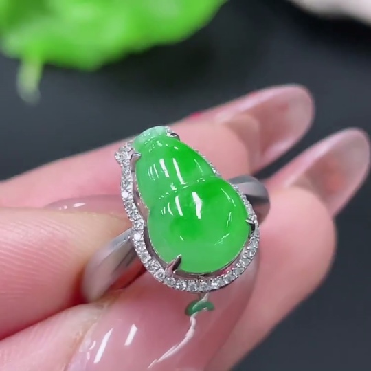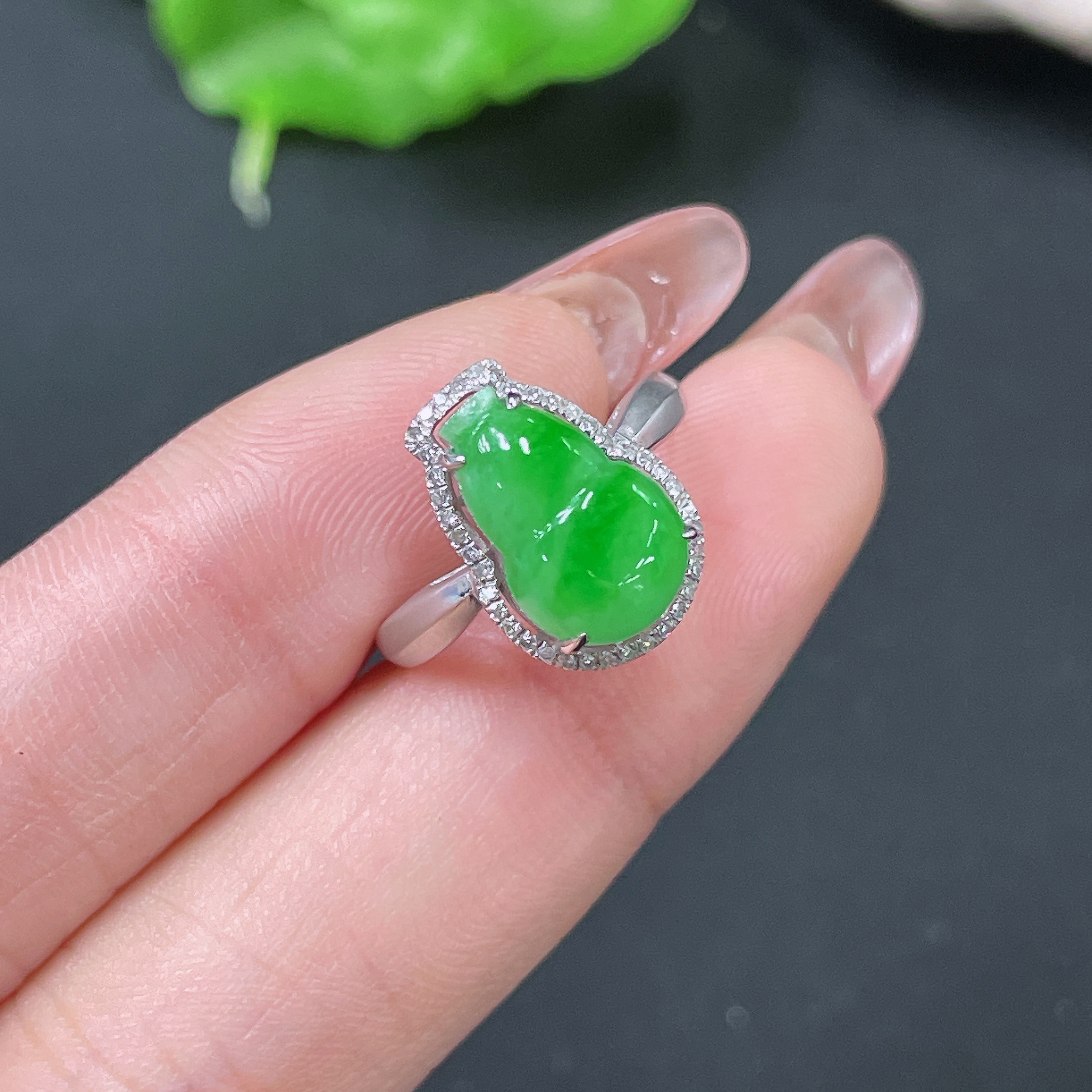 Jadeite Ring 18k Gold Set with Diamonds Total Weight Approx. 2.75g Size 11