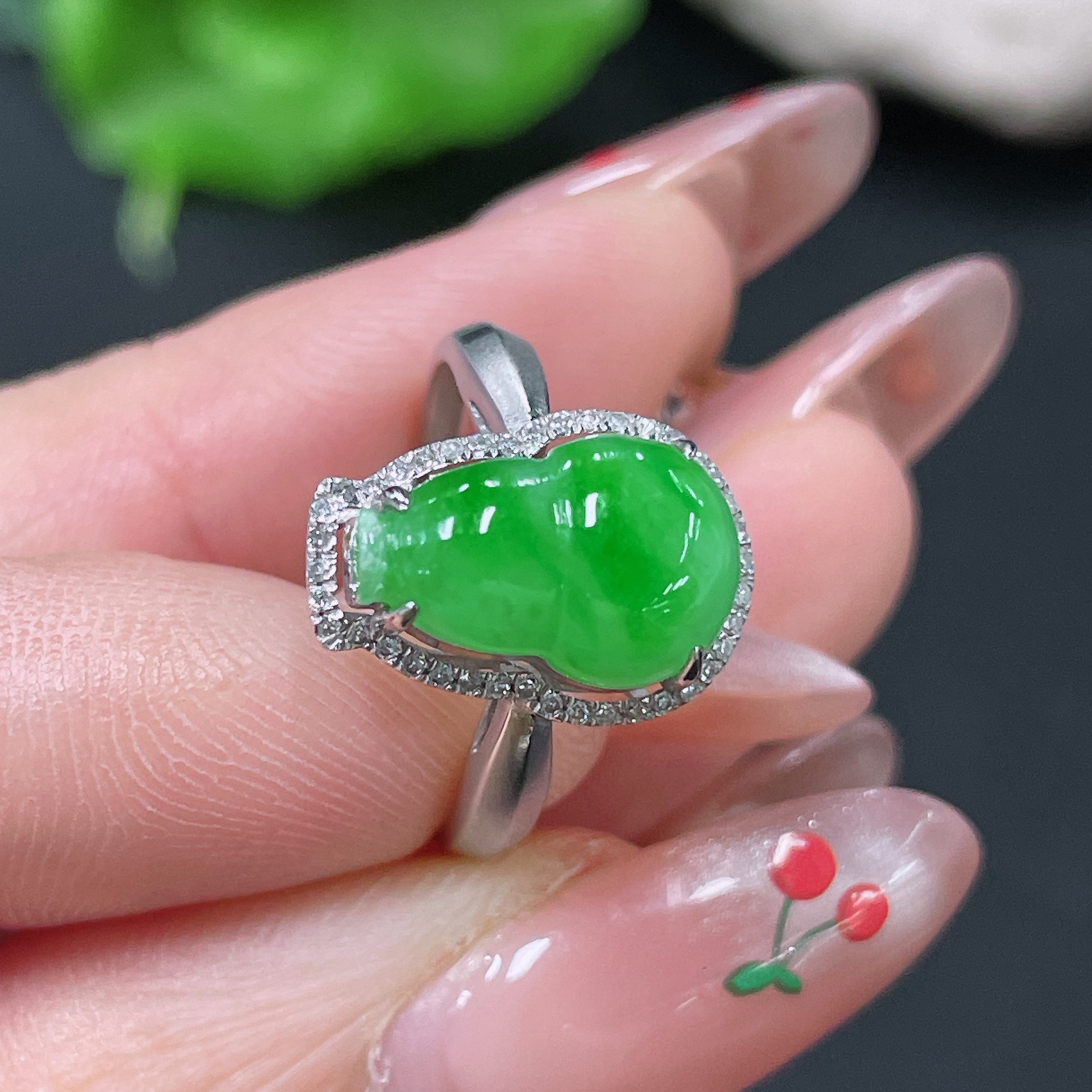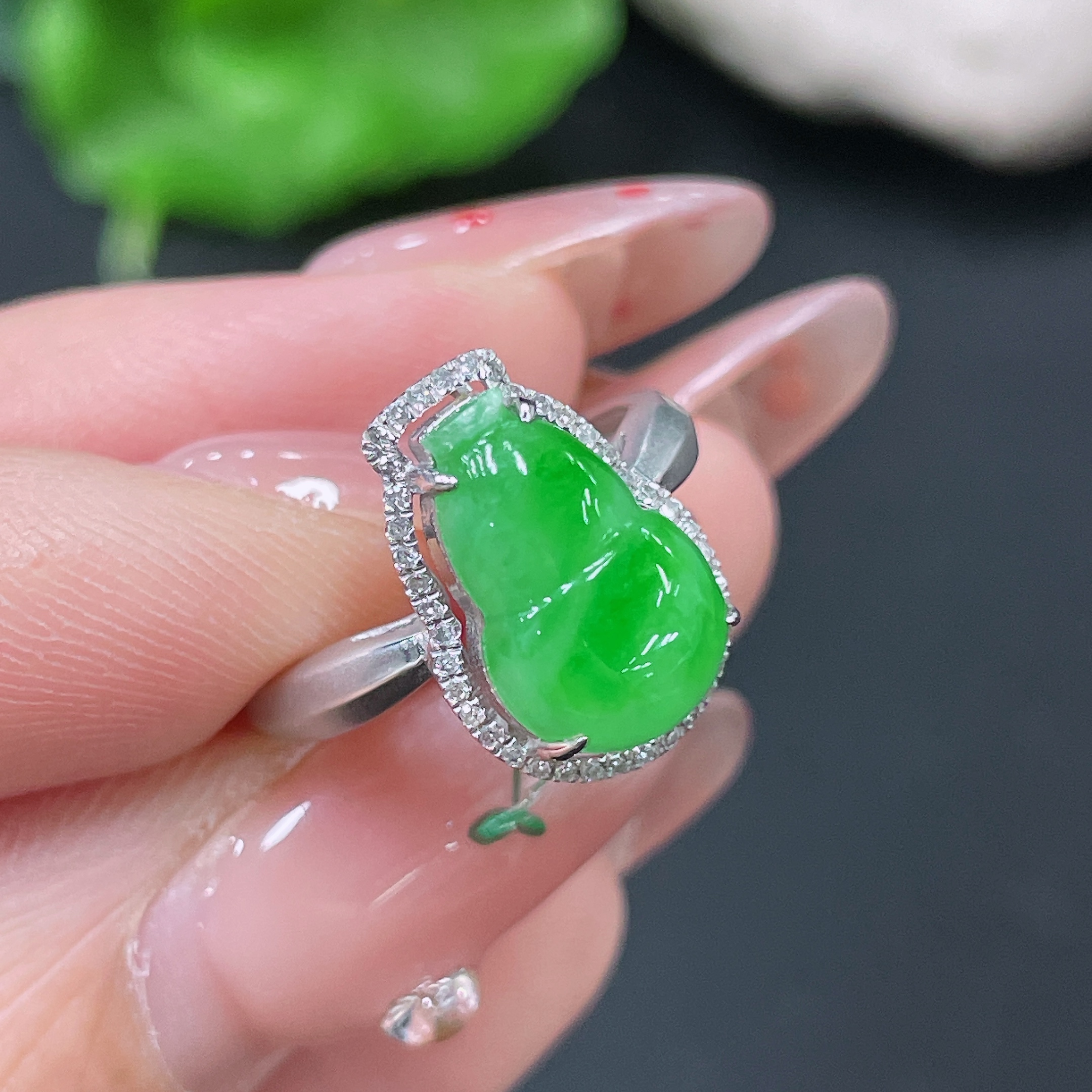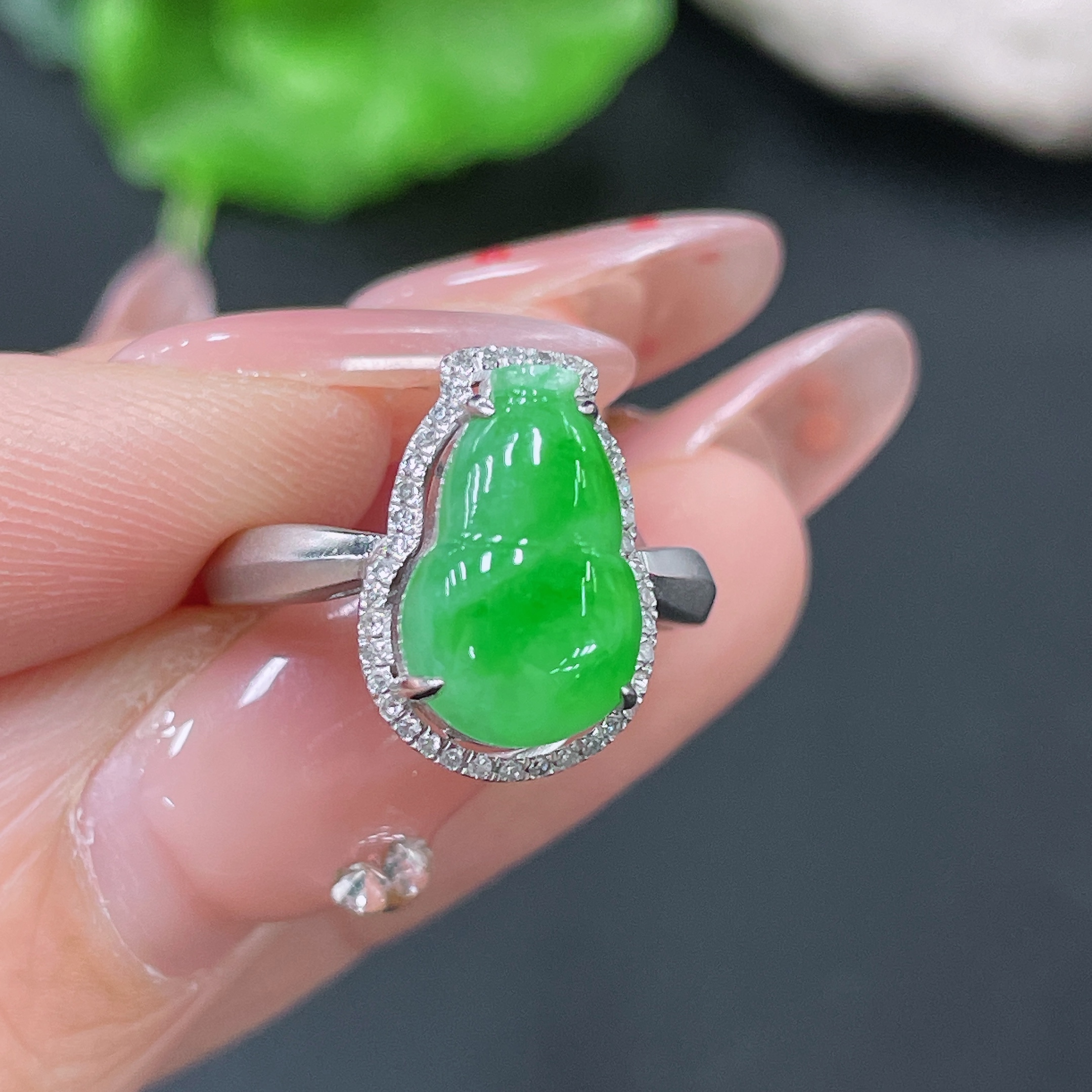 Jadeite Ring 18k Gold Set with Diamonds Total Weight Approx. 2.75g Size 11