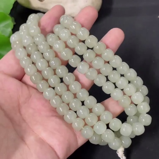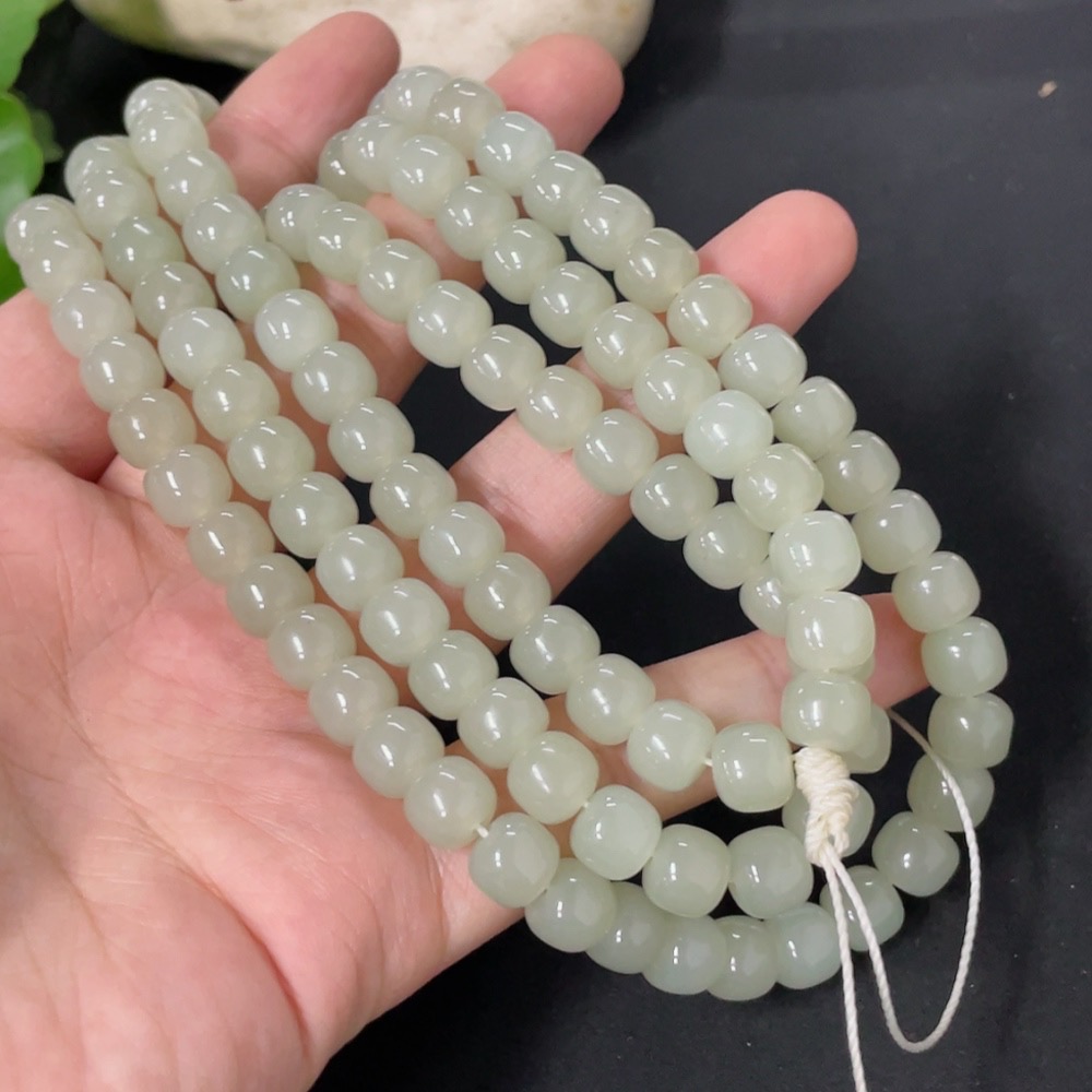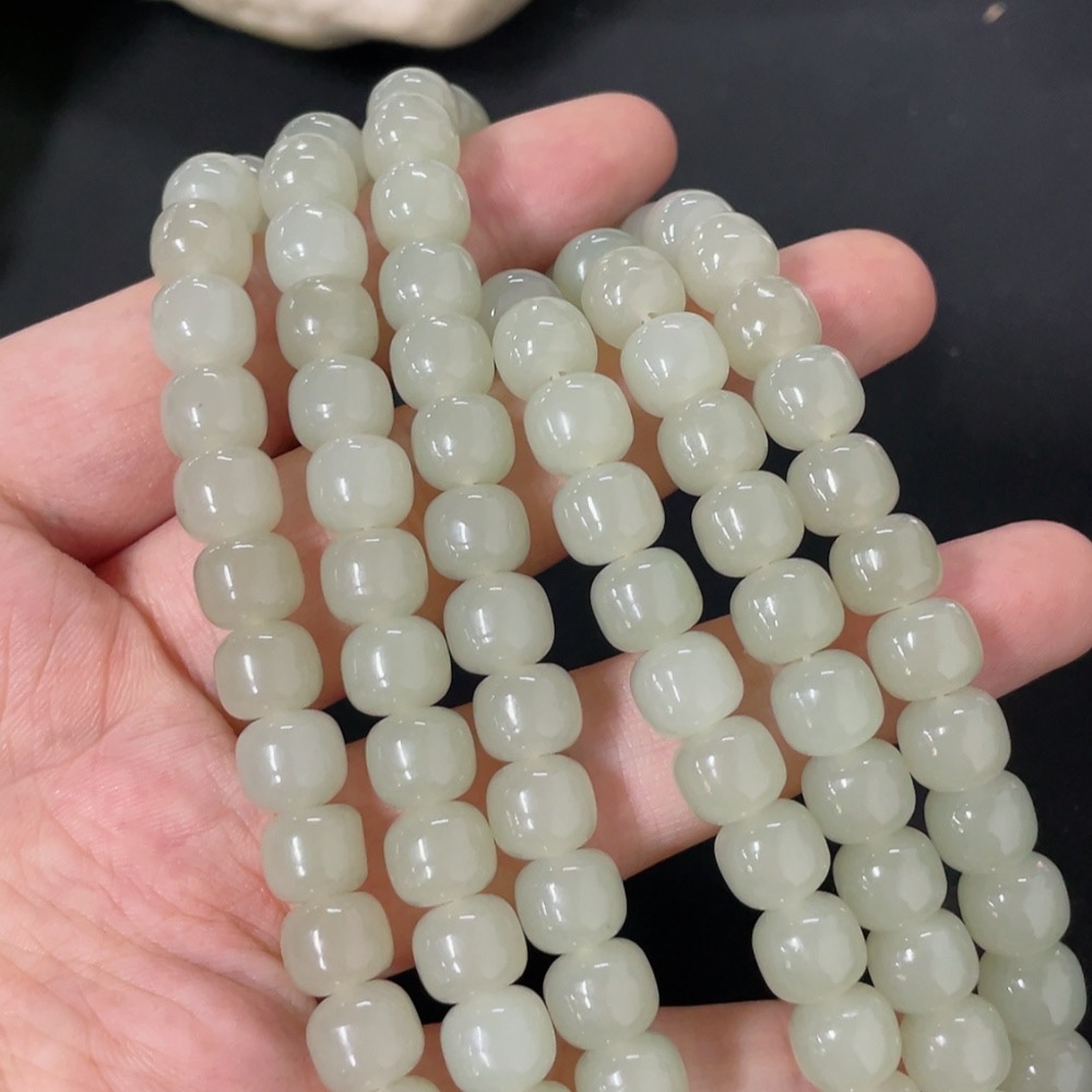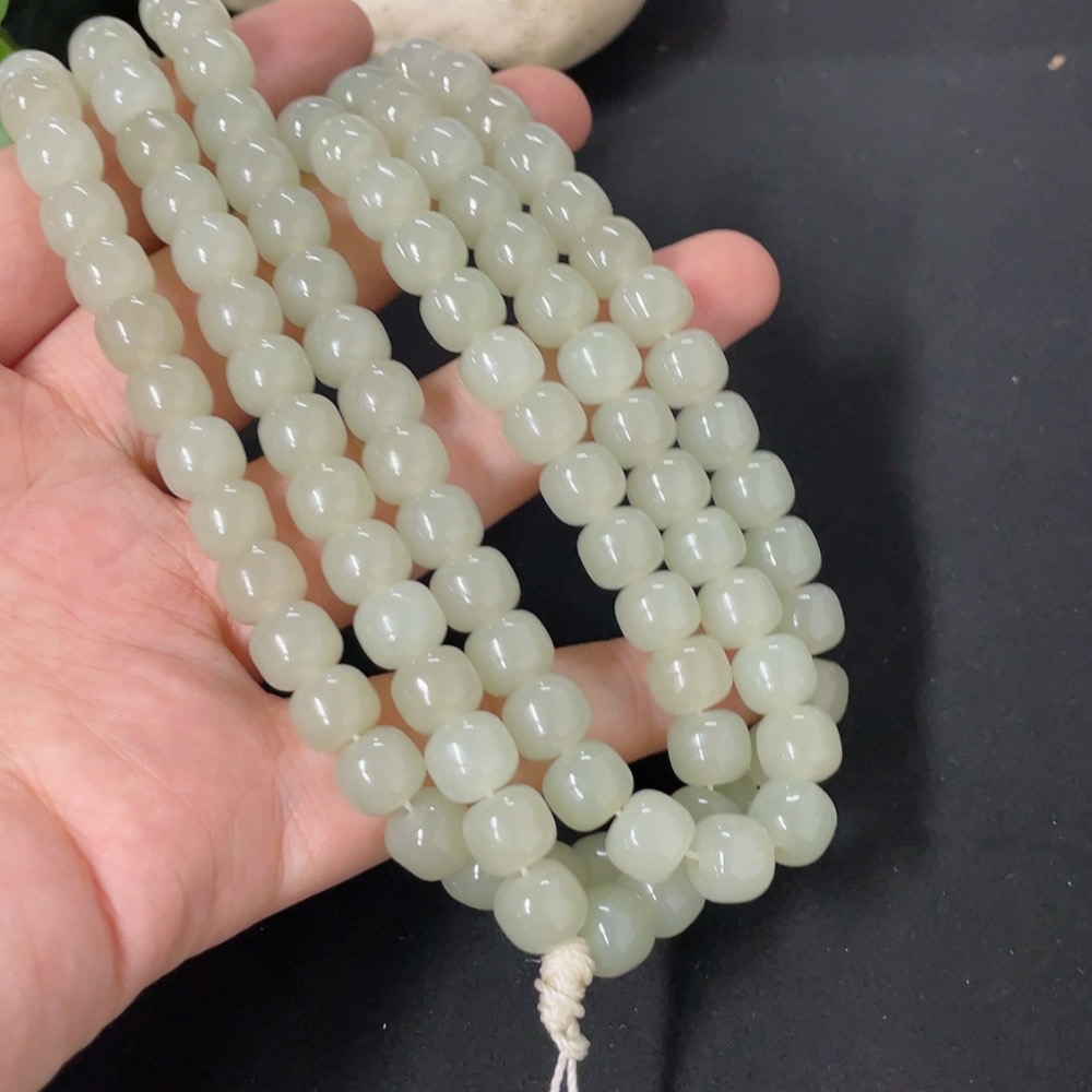 Hetian Jade Bead Necklace, Approx. 8mm, Total Weight About 94g