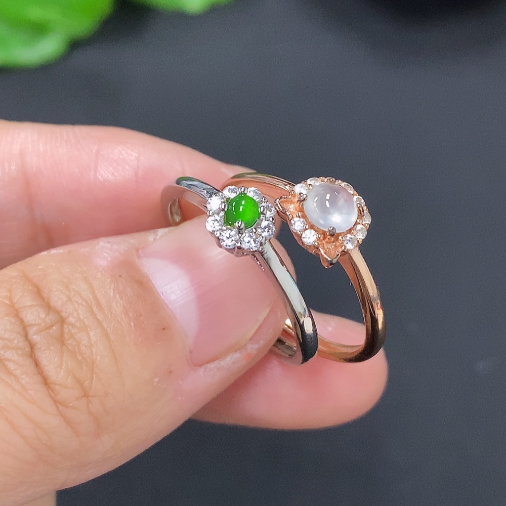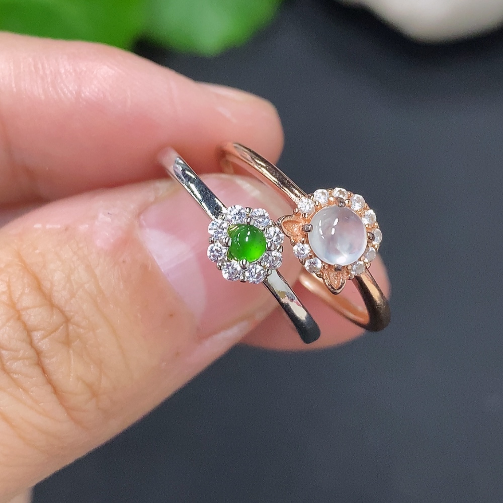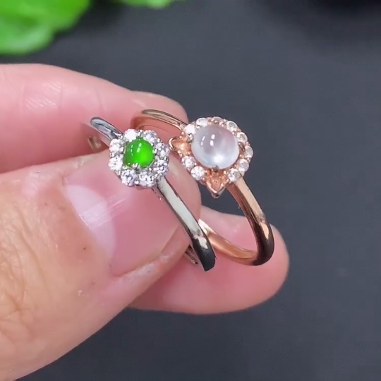Jadeite Cabochon Inlaid Ring Sell as a Lot Adjustable Size Non-Gold Inlaid