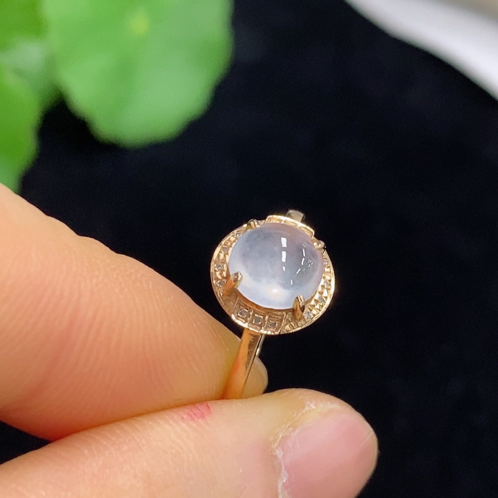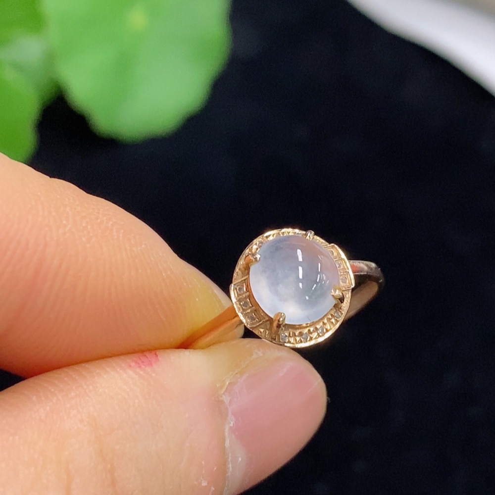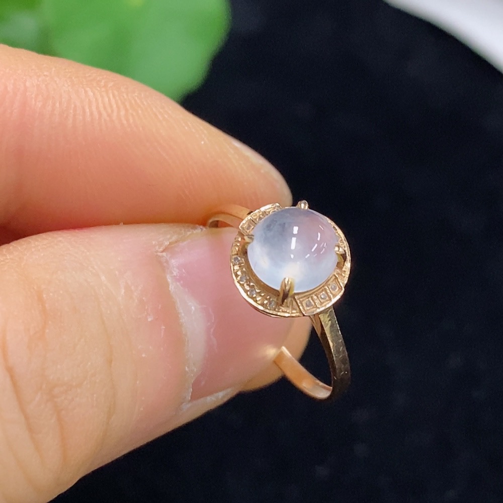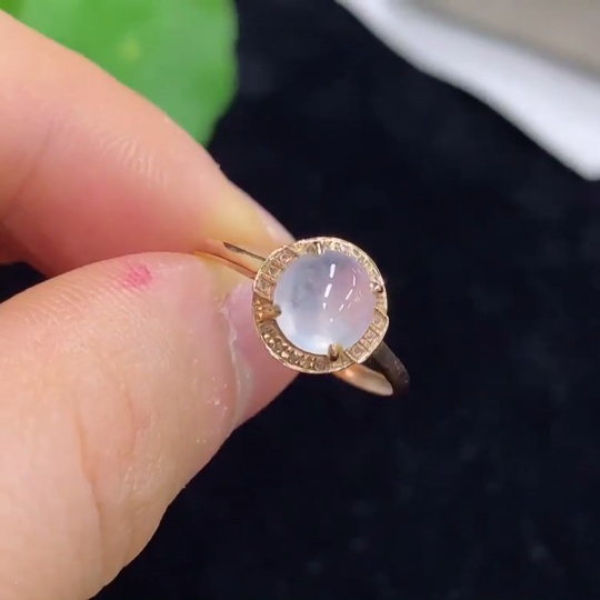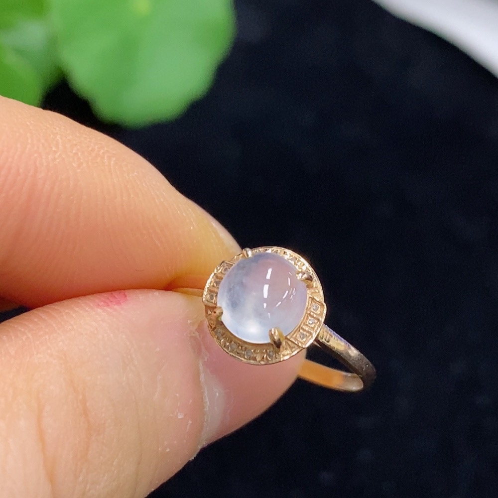 Jadeite Cabochon Inlaid Ring 18k Size 14 Total Weight Approx. 1.32g