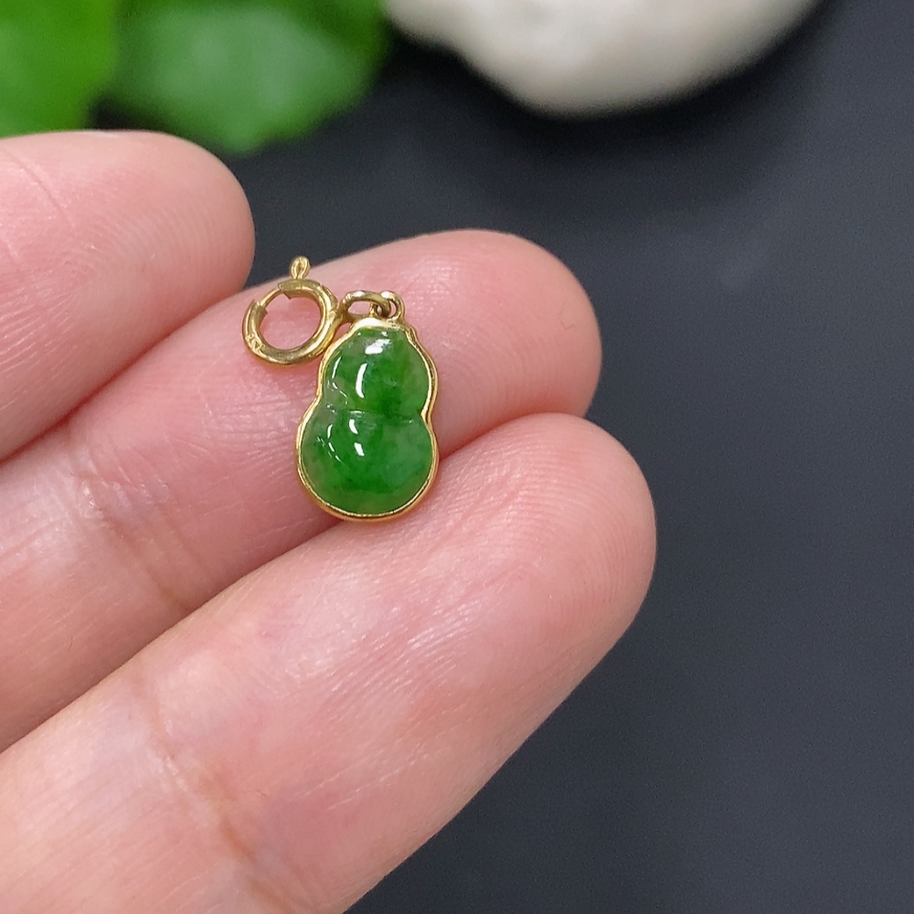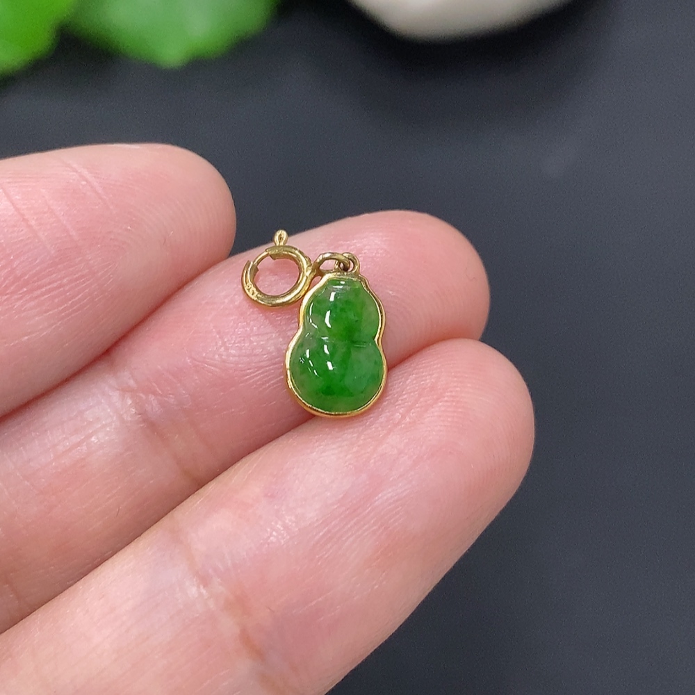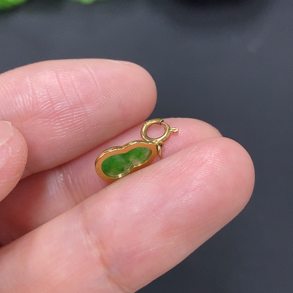 Jadeite Gourd Inlaid Pendant 18K Gold Total Weight Approx. 0.3g
