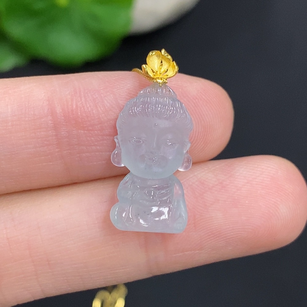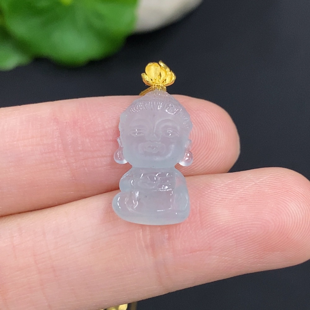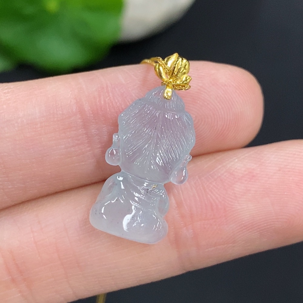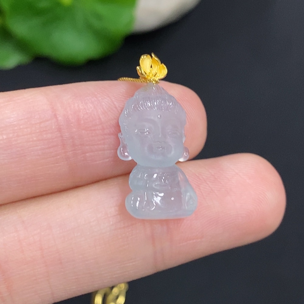 Jadeite Baby Buddha Pendant 18k Gold Total Weight Approx. 2.3g (Including Chain)