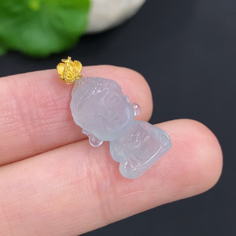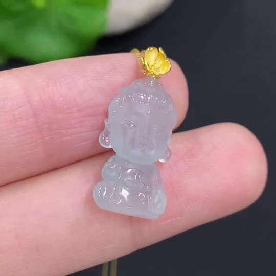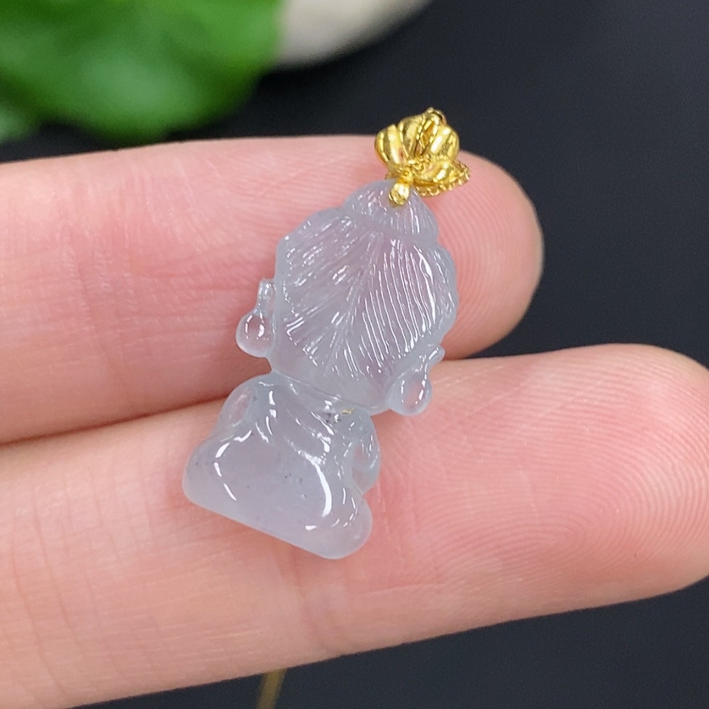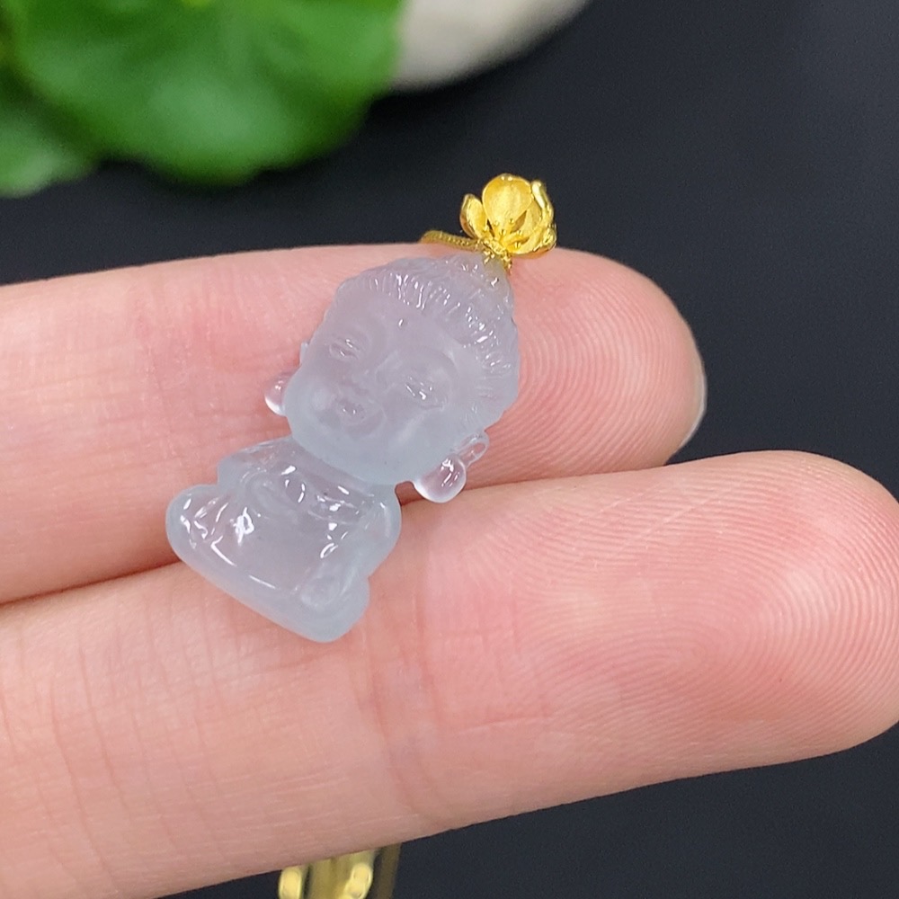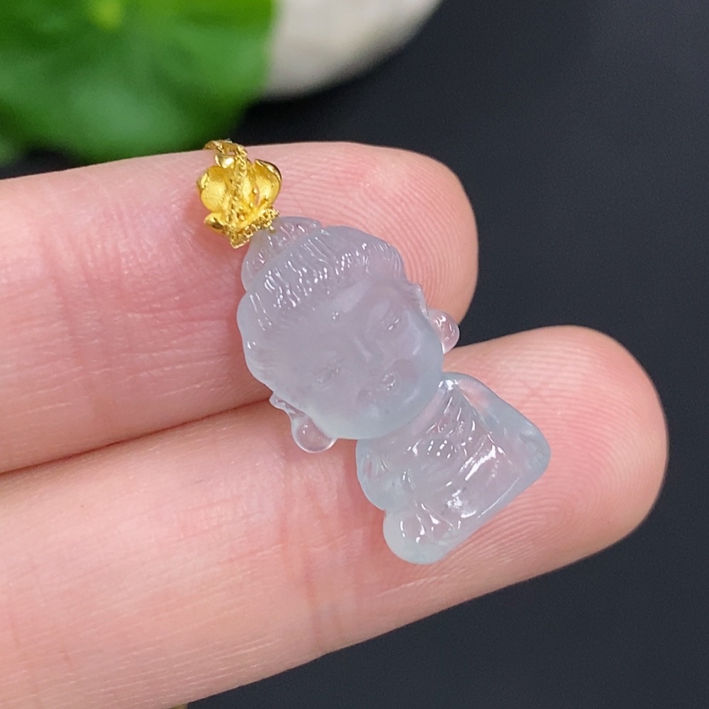 Jadeite Baby Buddha Pendant 18k Gold Total Weight Approx. 2.3g (Including Chain)