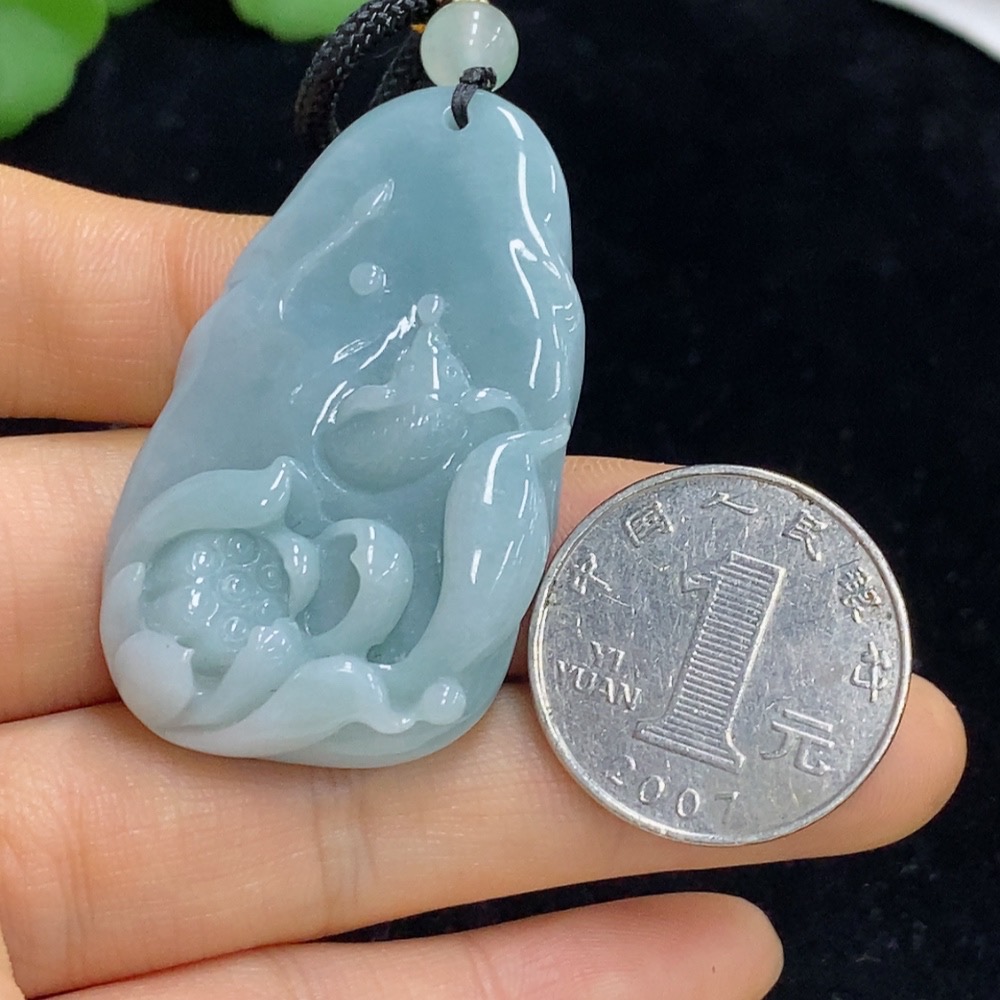 Jadeite Lotus Pendant Total Weight Approx. 26.07g (including rope weight) with non-A grade beads