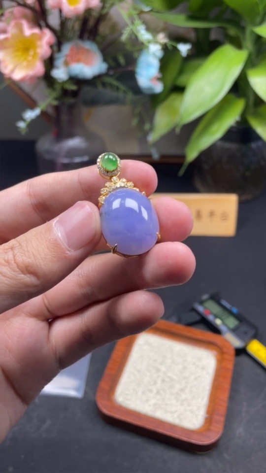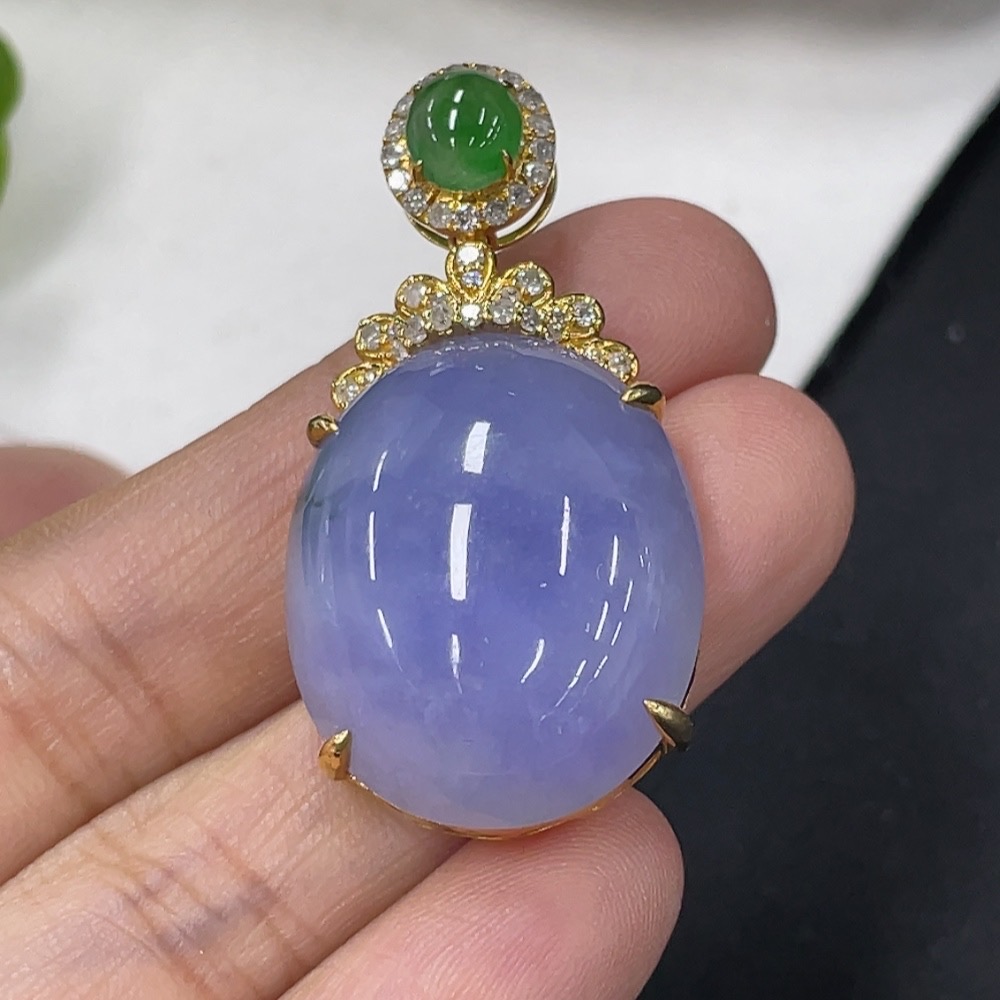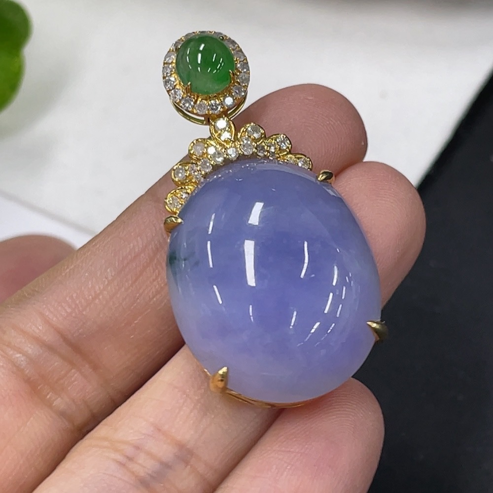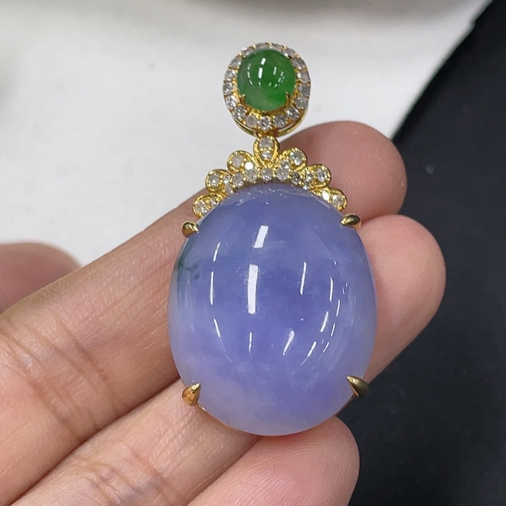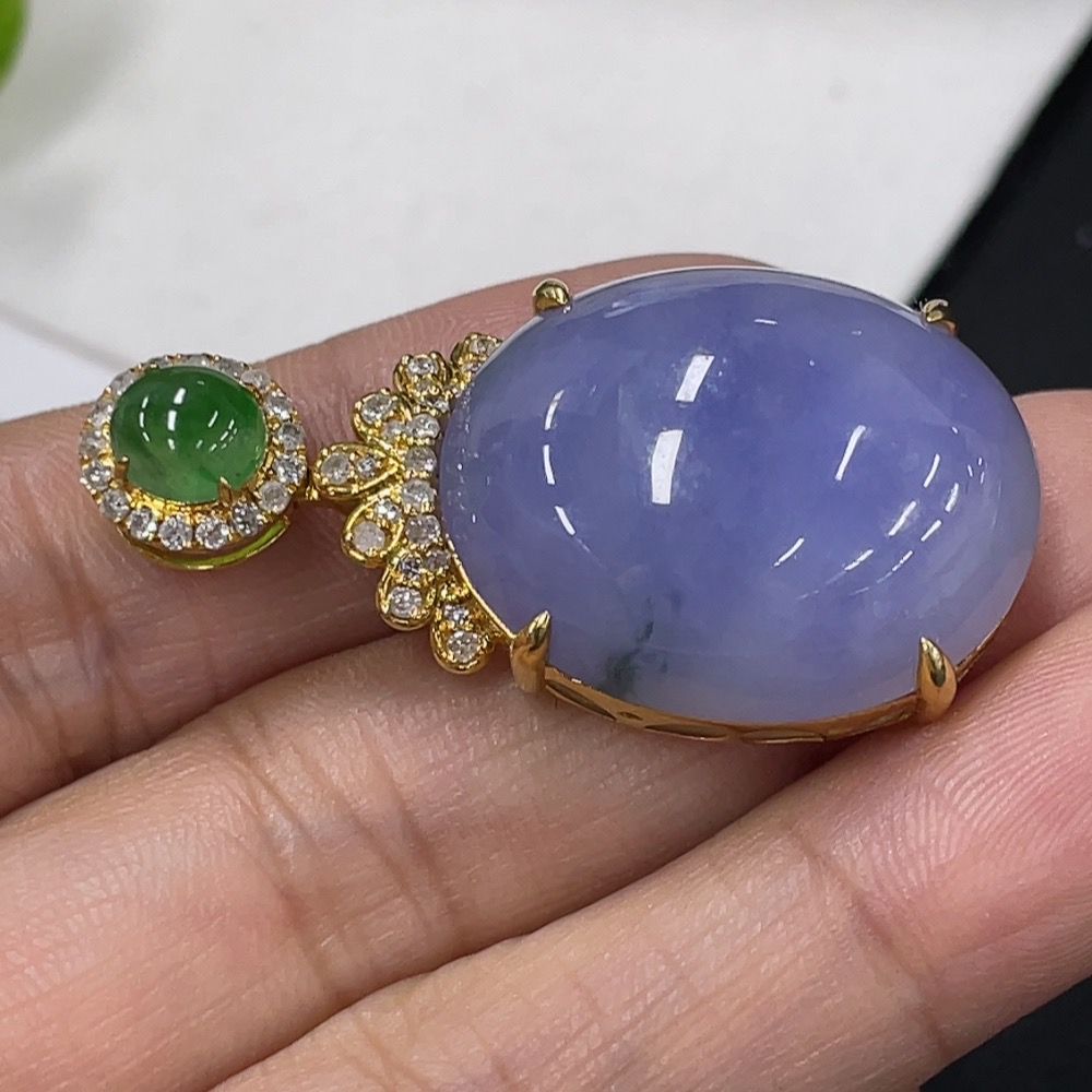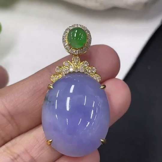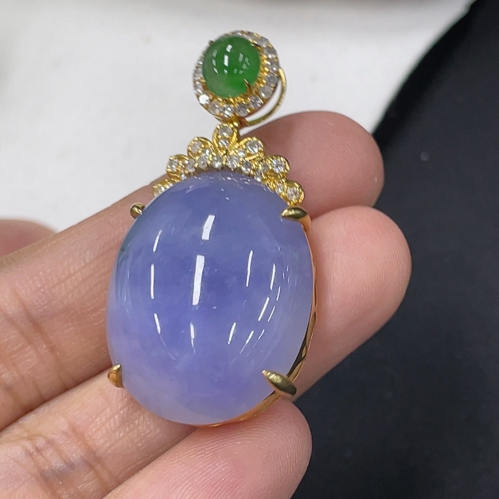Jadeite Inlaid Cabochon Pendant with 18K Gold and Diamond Accents, Total Weight Approx. 11.53g
