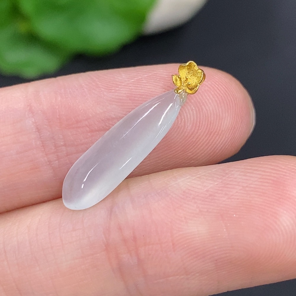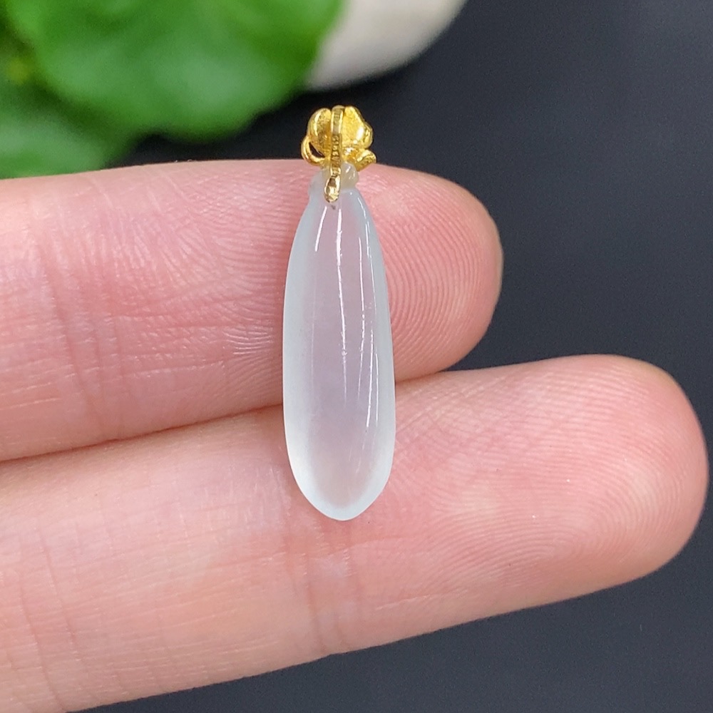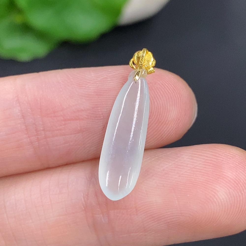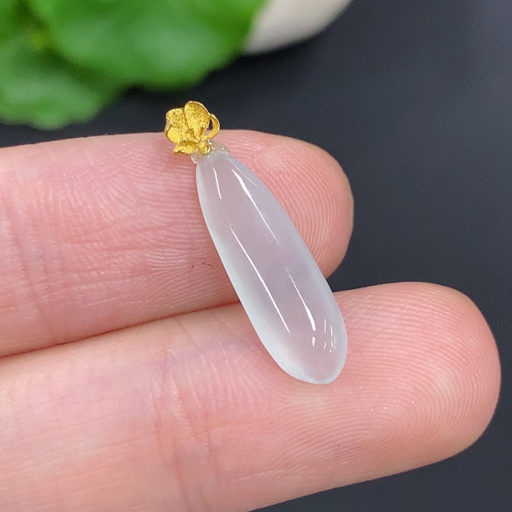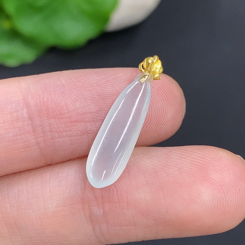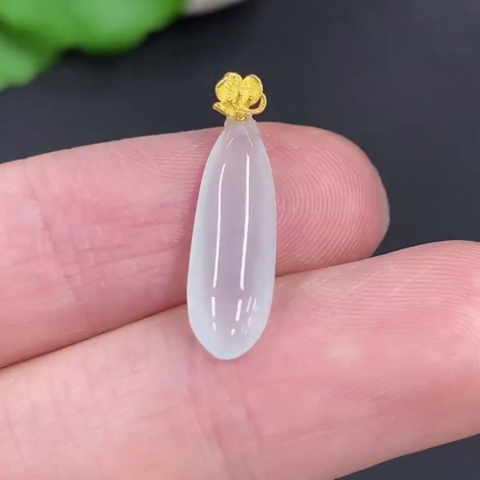 Jadeite Fu Melon Pendant with 18k Gold Clasp, Total Weight Approximately 0.7g