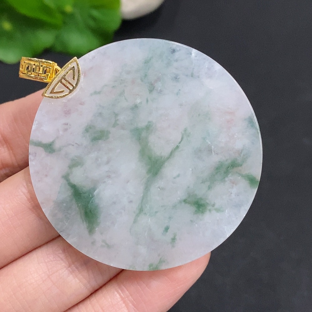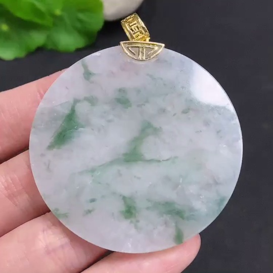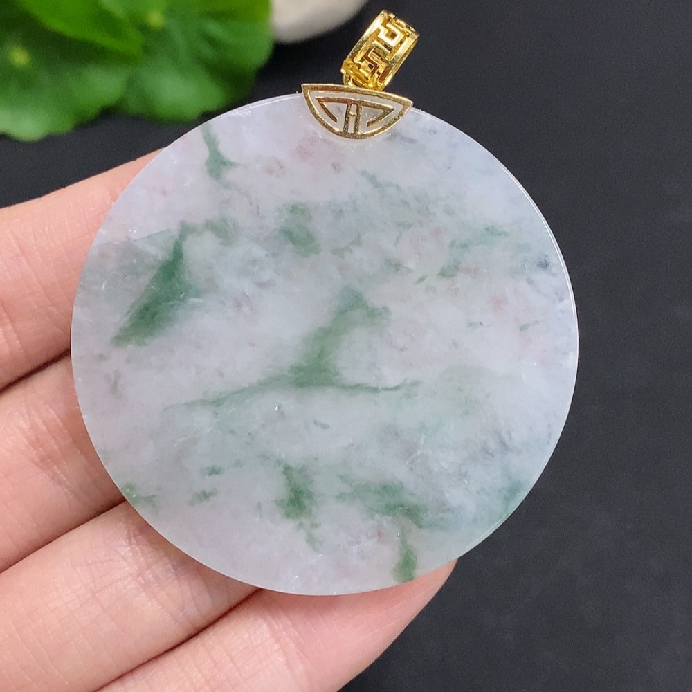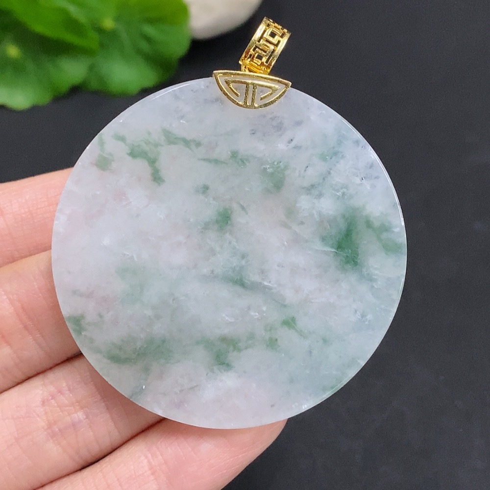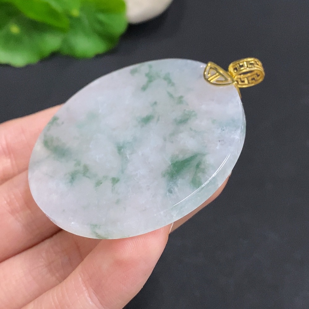 Jadeite Plain Pendant with 18k Gold Clasp Total Weight Approx. 26.6g