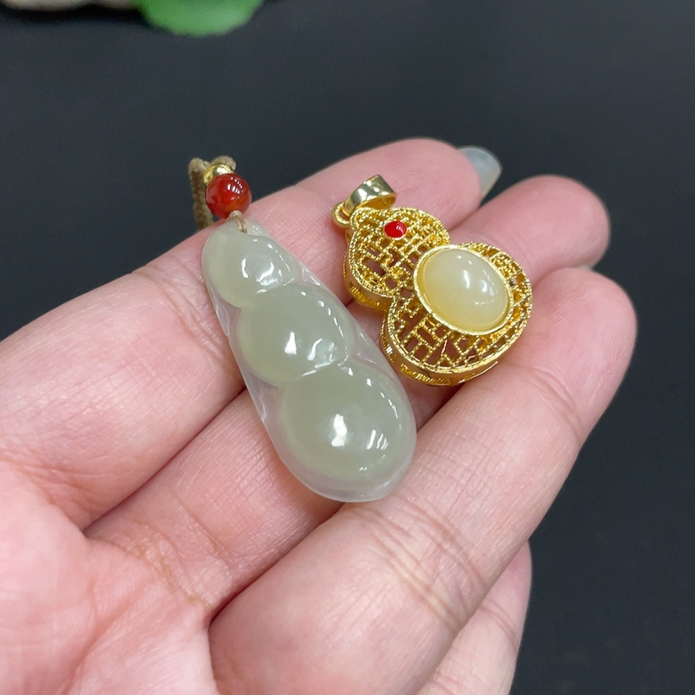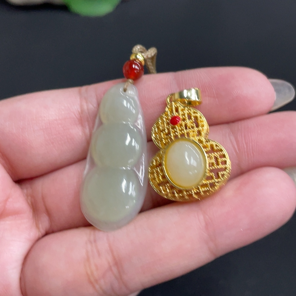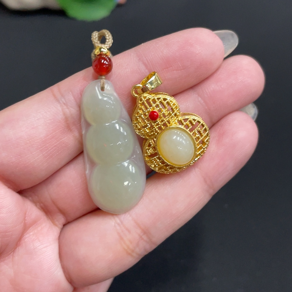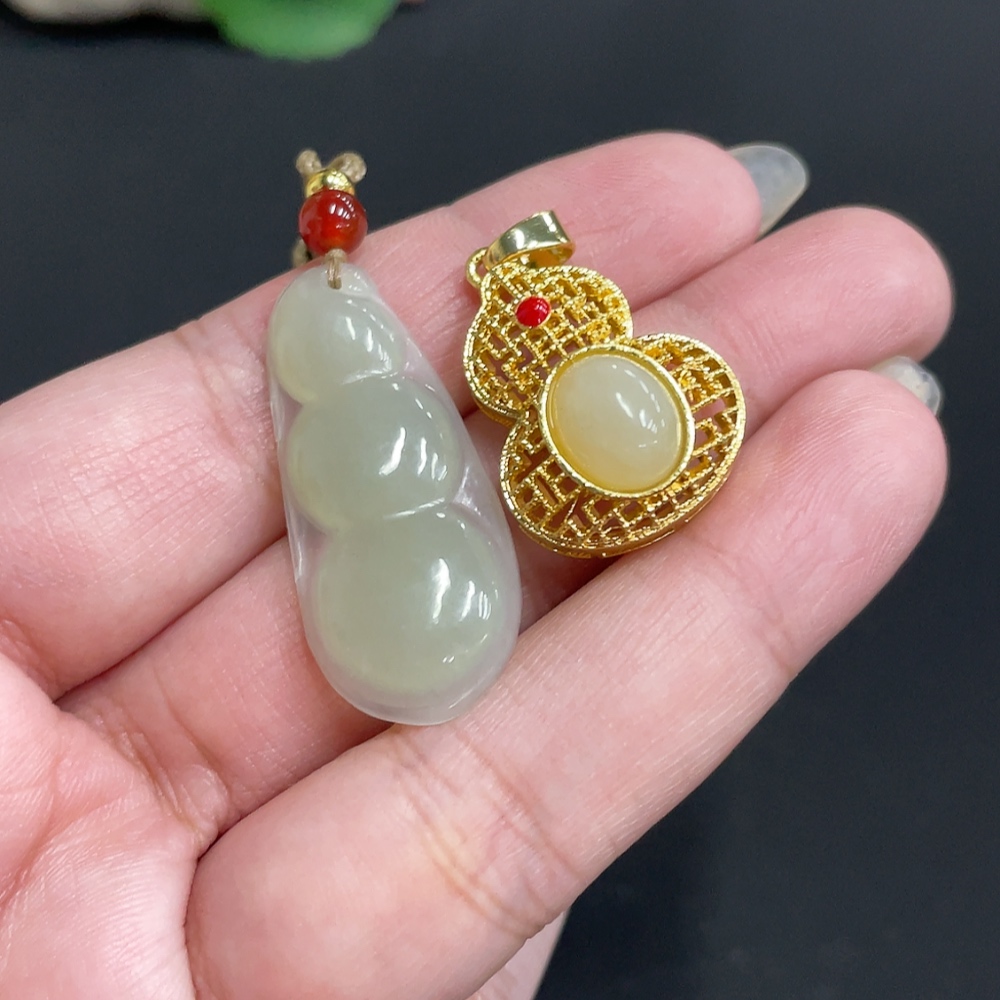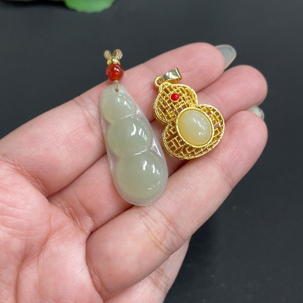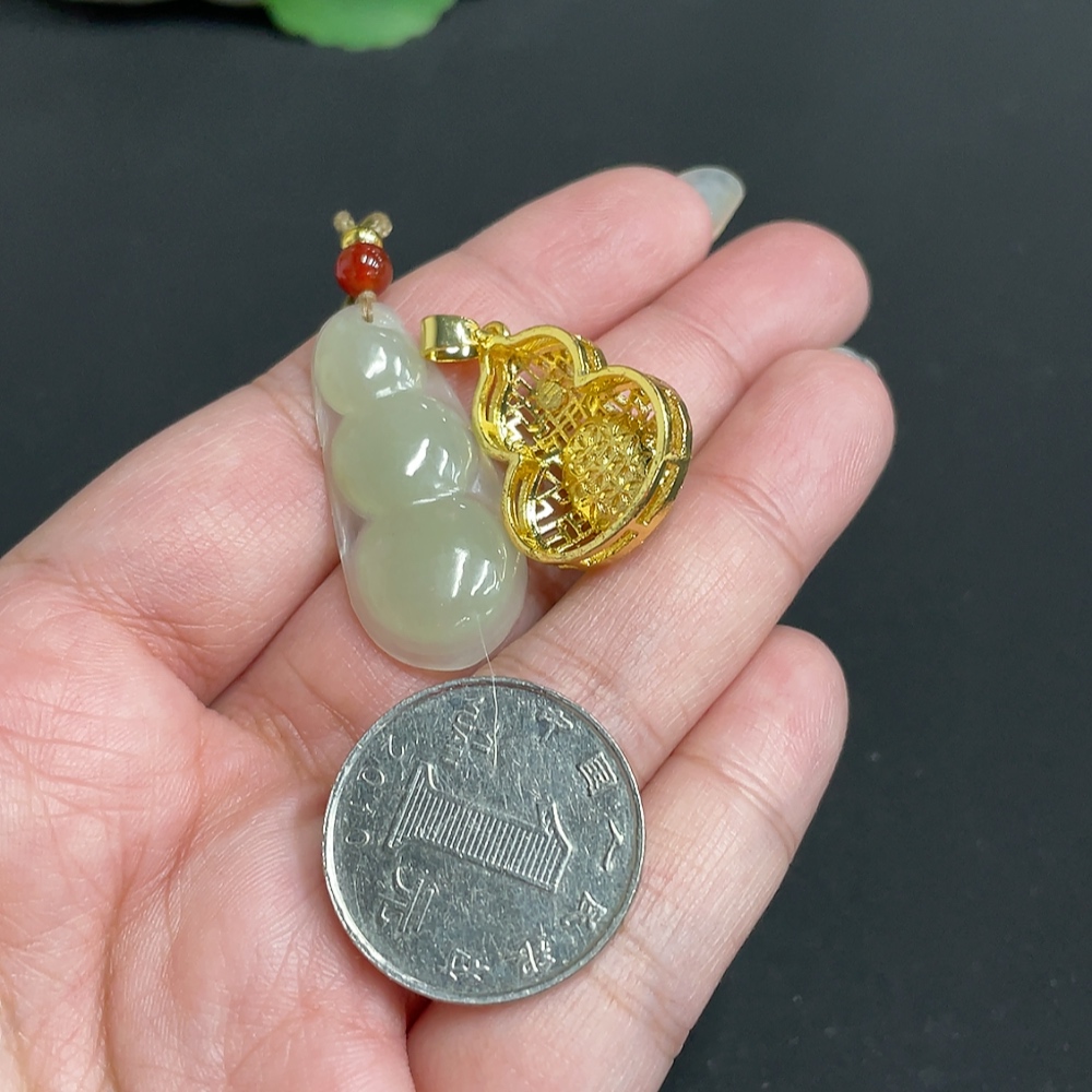 Hetian Jade Inlaid Pendant Total Weight Approx. [Including Rope] 8.8g Non-Gold