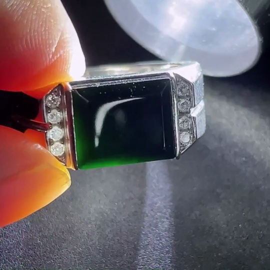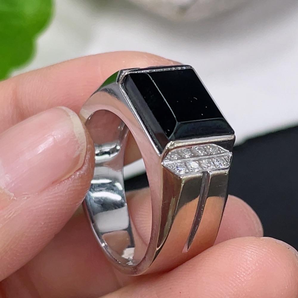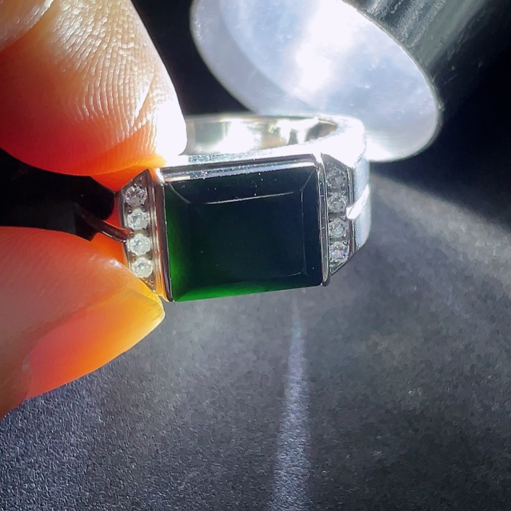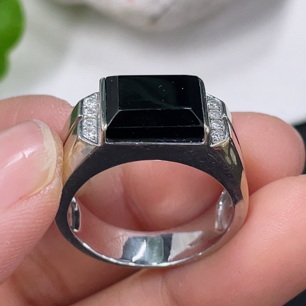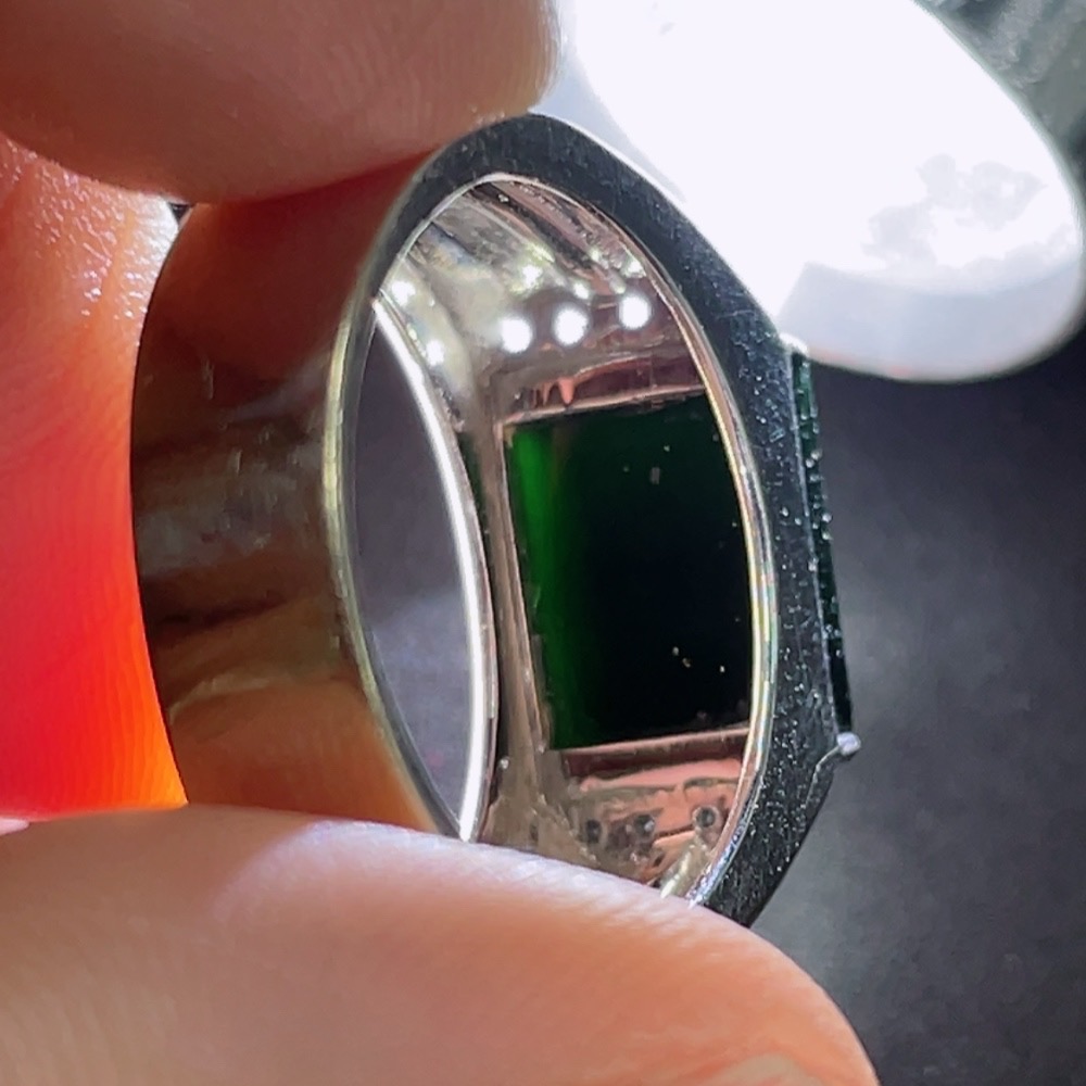 Trezaar - Jadeite Inlaid Ring 18k with Diamond Accents Size 15 Total Weight Approx. 7.38g