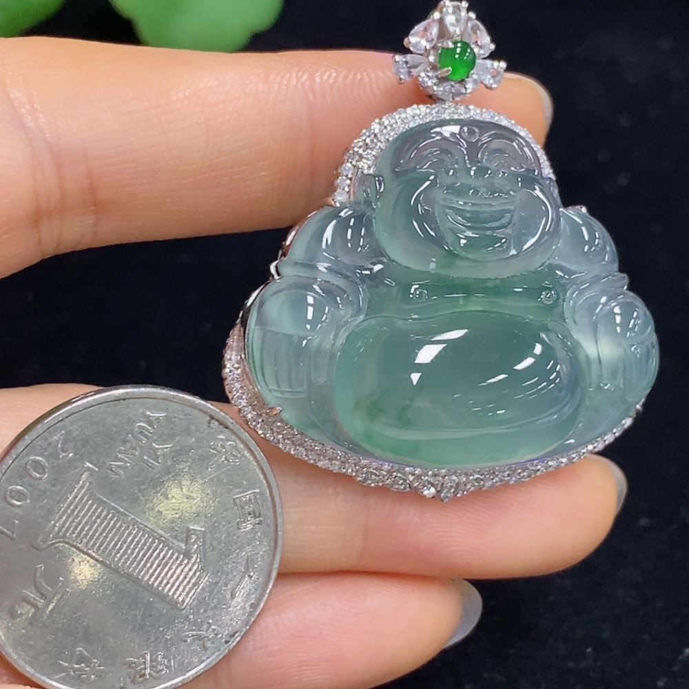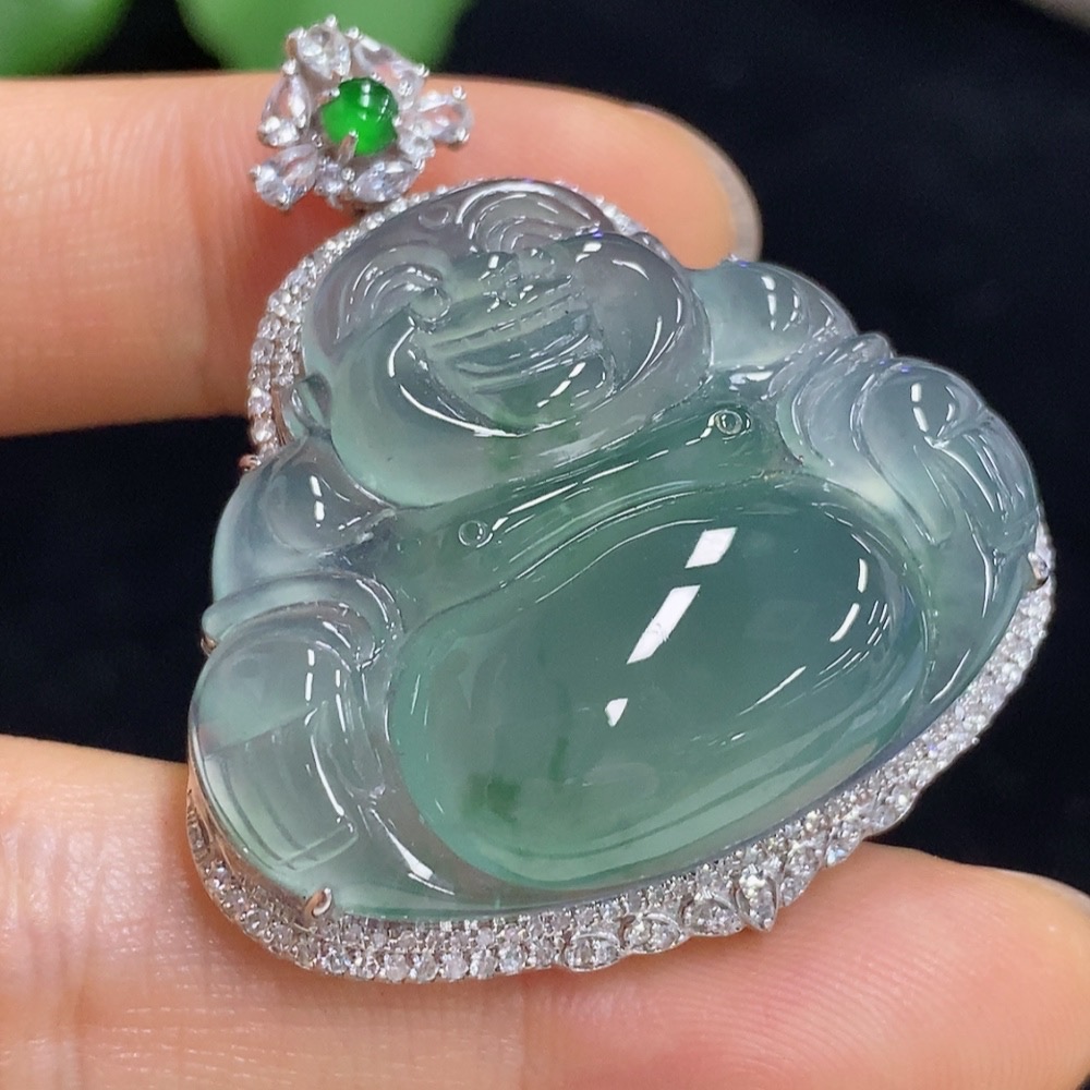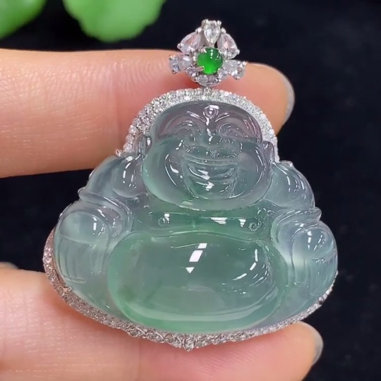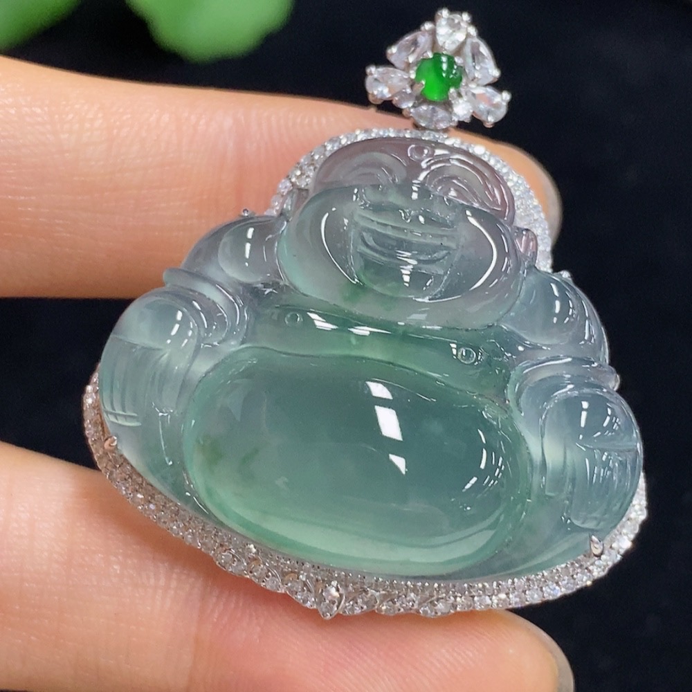 Jadeite Buddha Inlaid Pendant 18k Total Weight Approx.14.31g With Diamond Accents (Minimum Side Stones Only)
