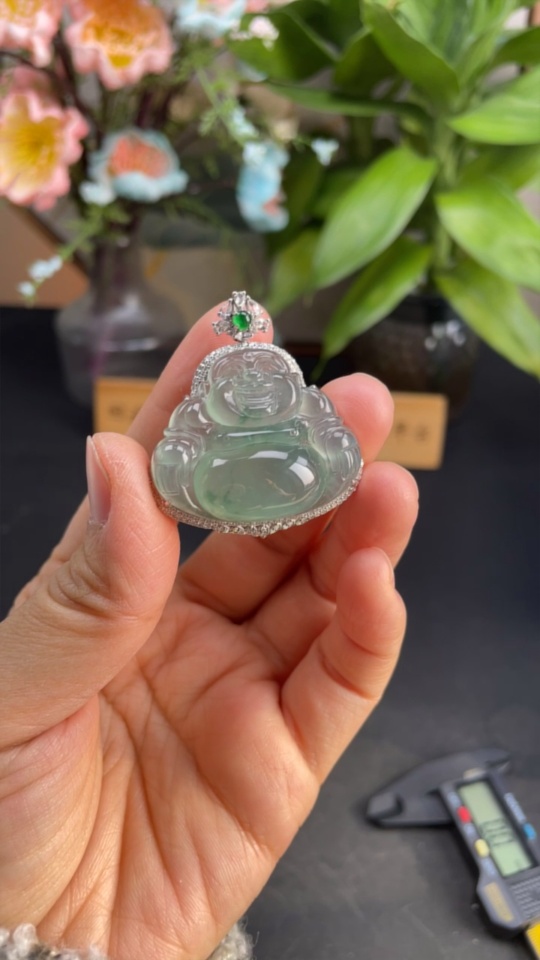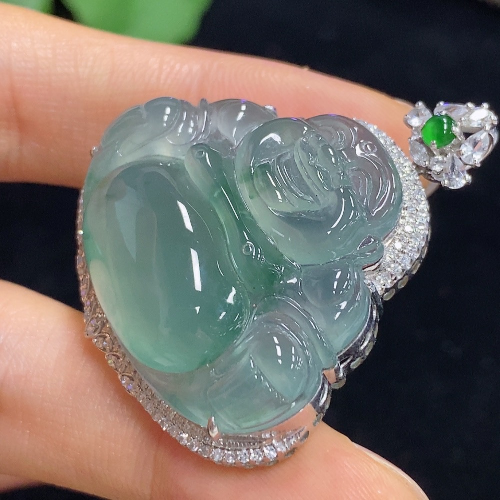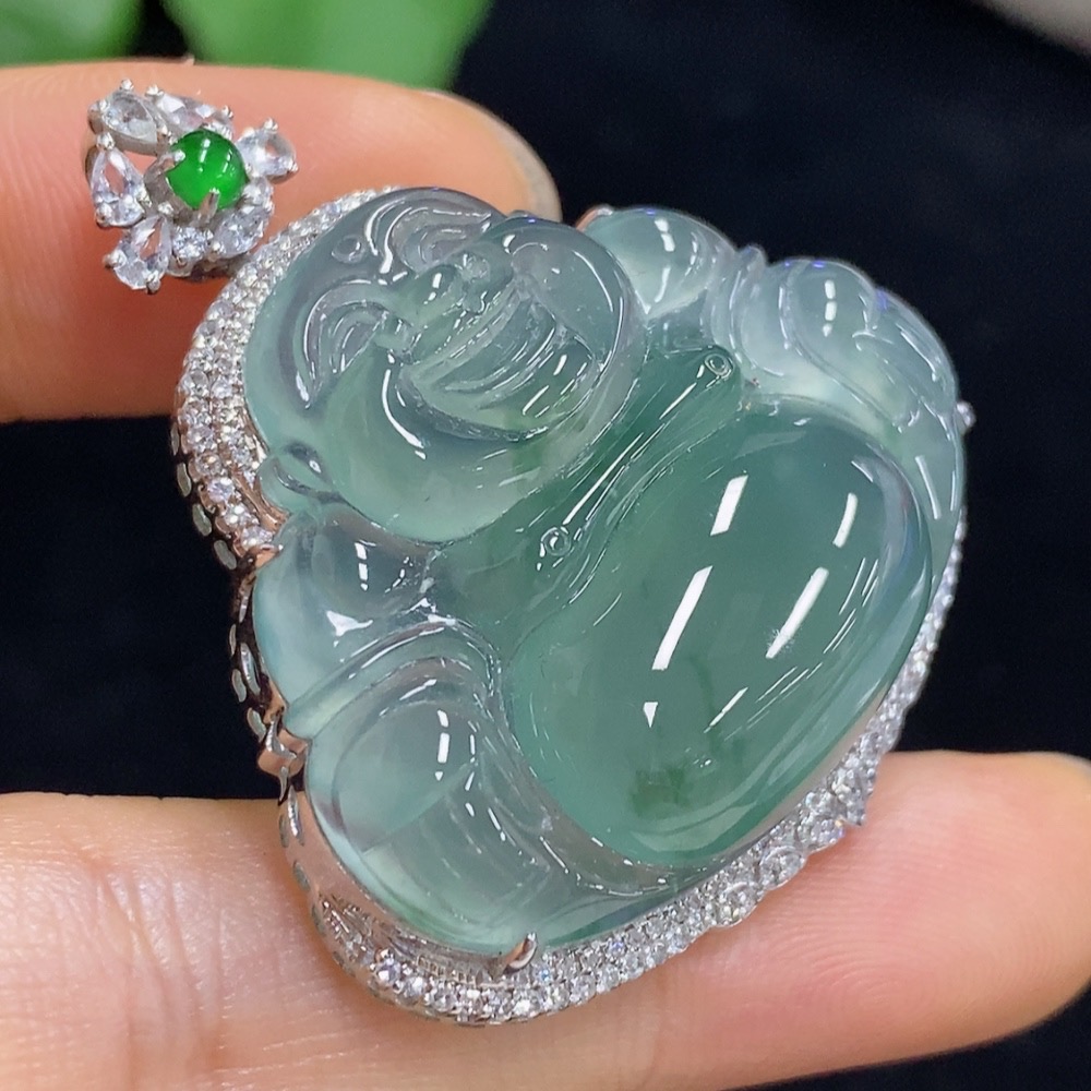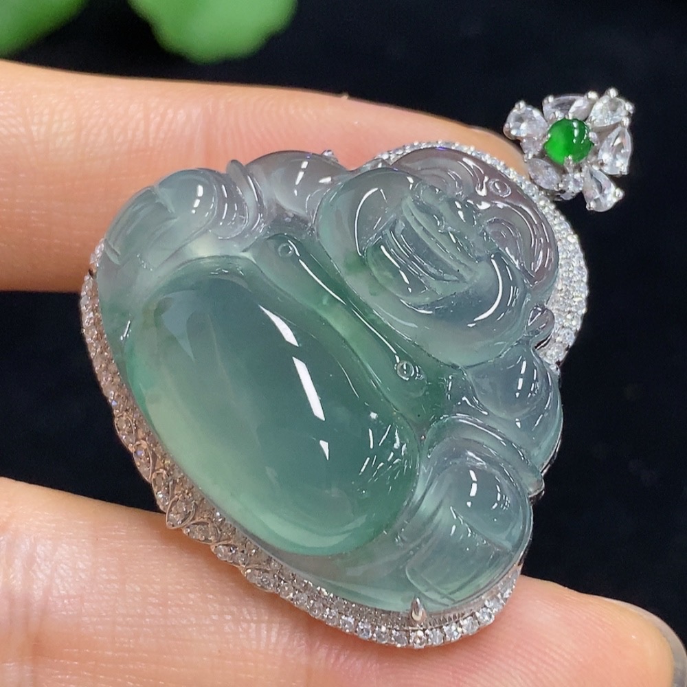 Jadeite Buddha Inlaid Pendant 18k Total Weight Approx.14.31g With Diamond Accents (Minimum Side Stones Only)
