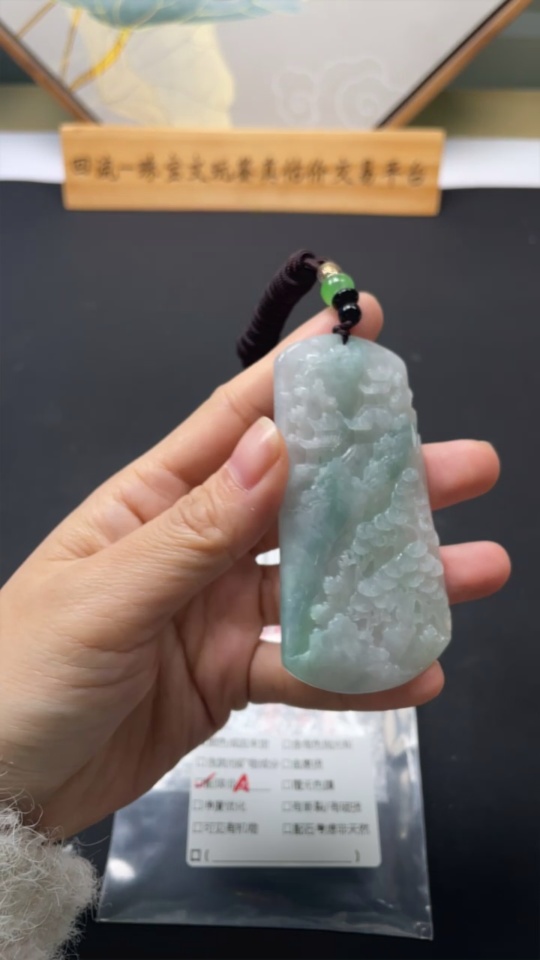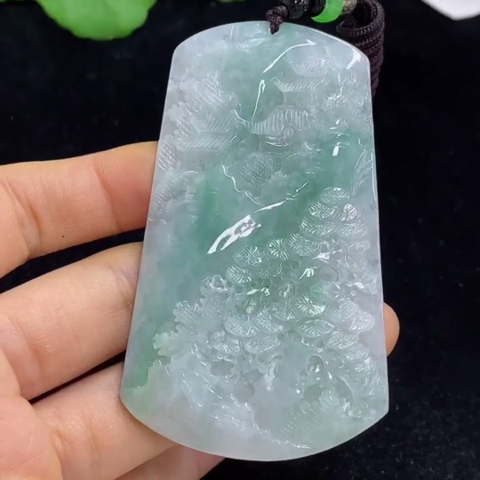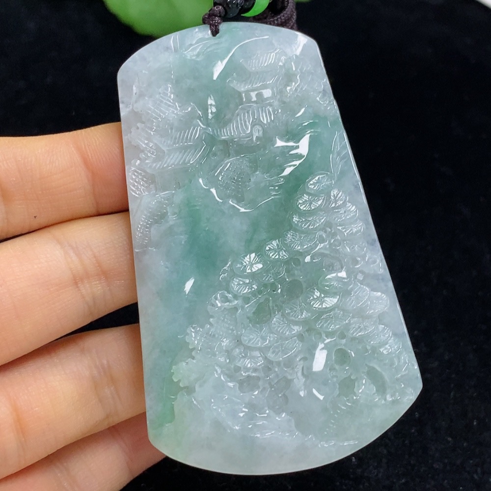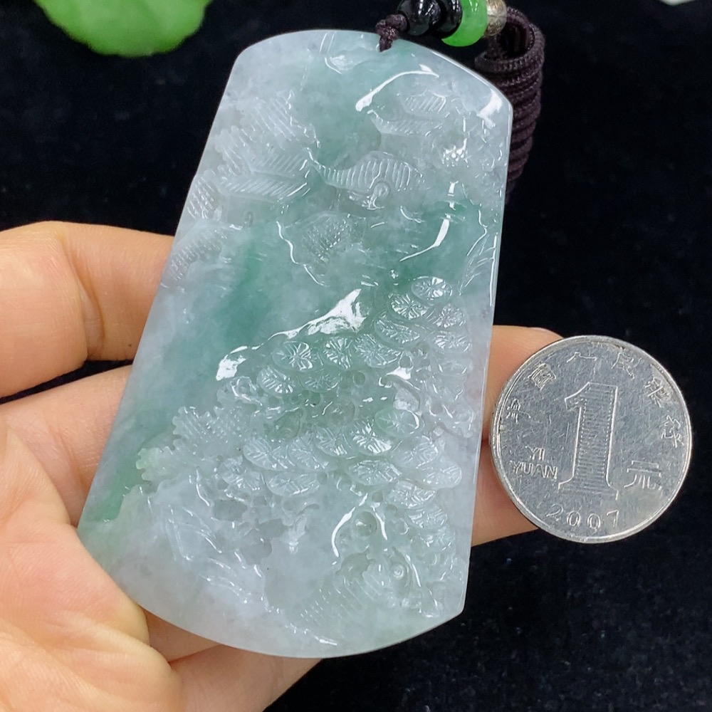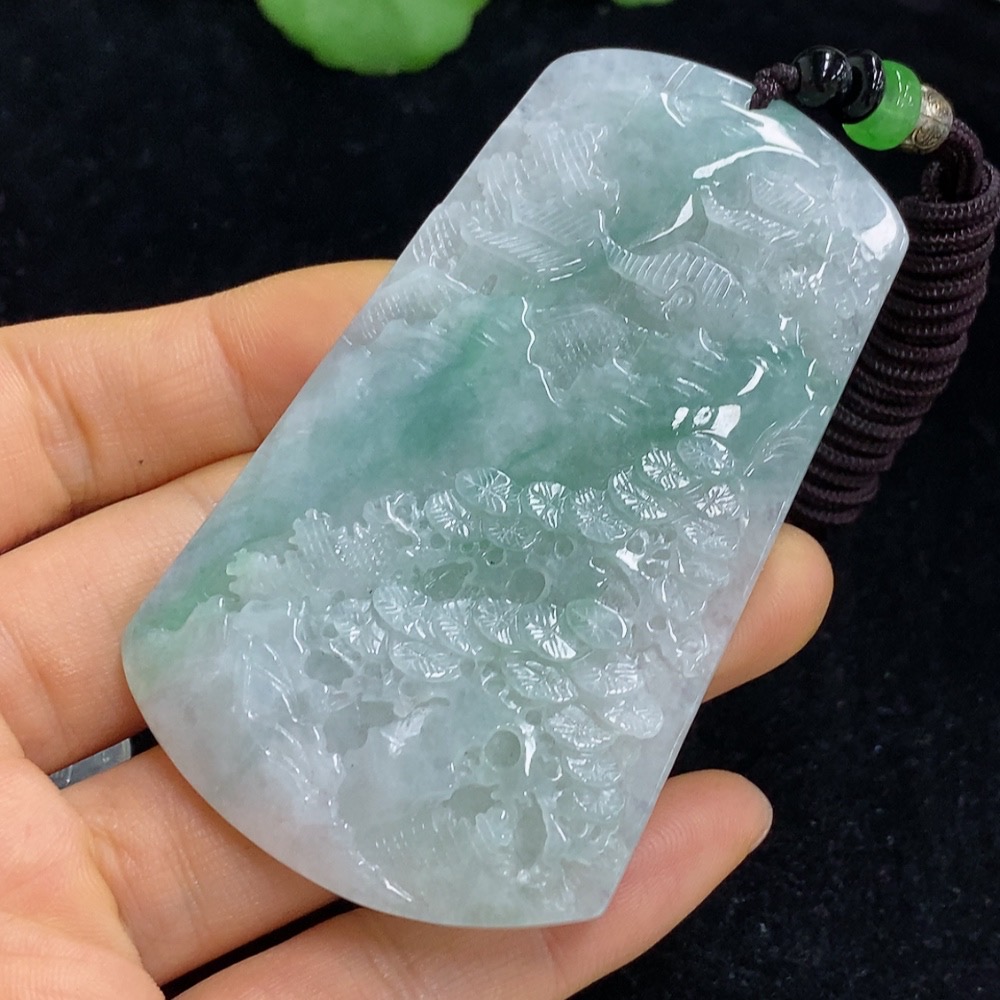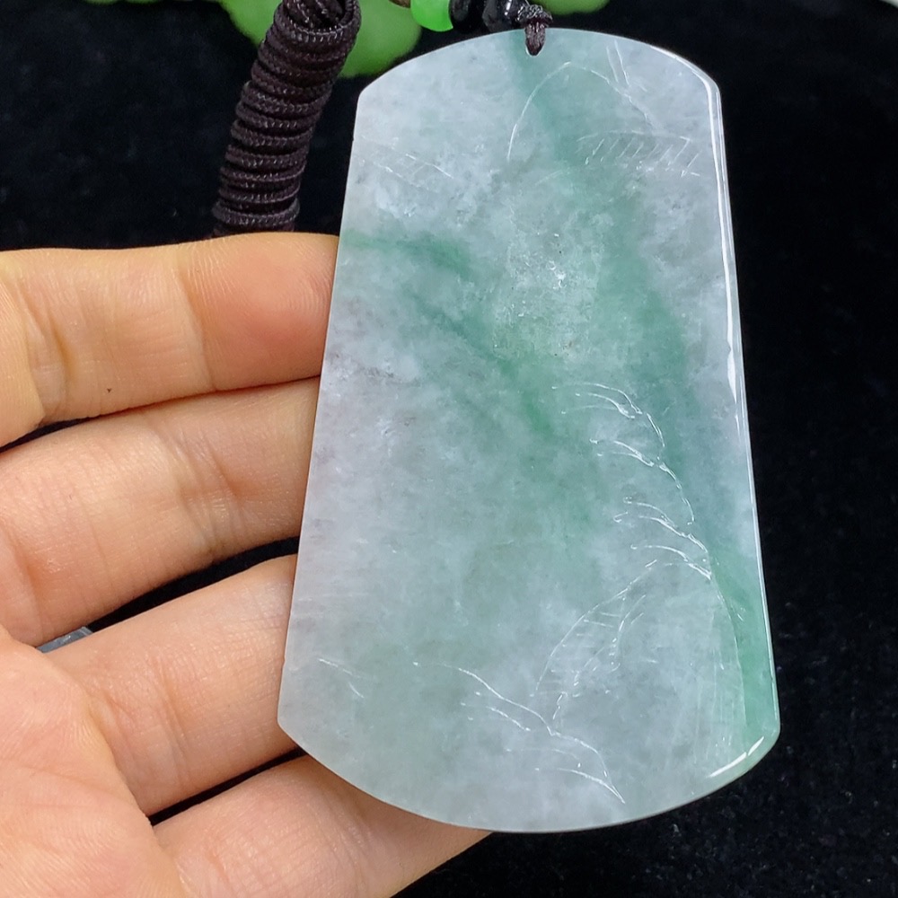 Jadeite Landscape Pendant Total Weight Approx. 56.99g (Including Cord Weight) With Non-Grade A Beads