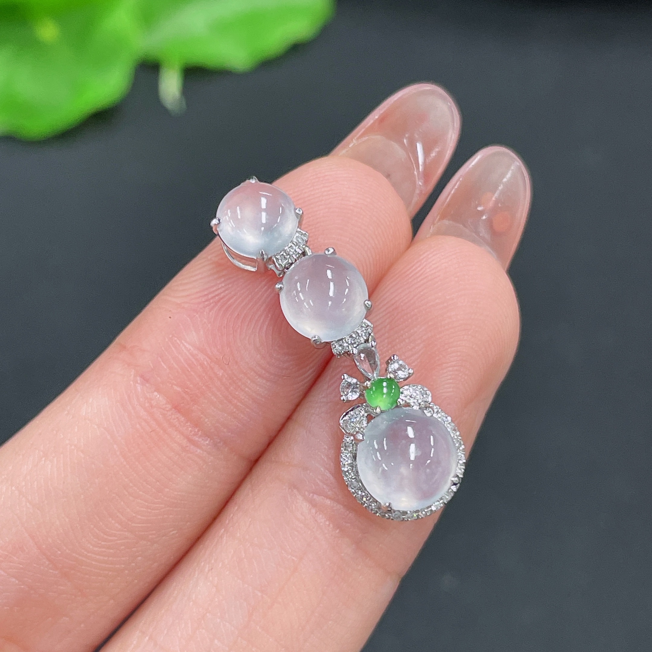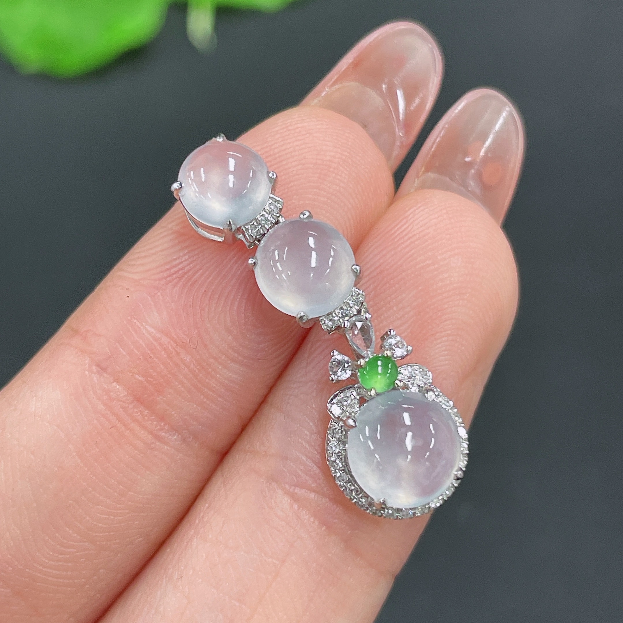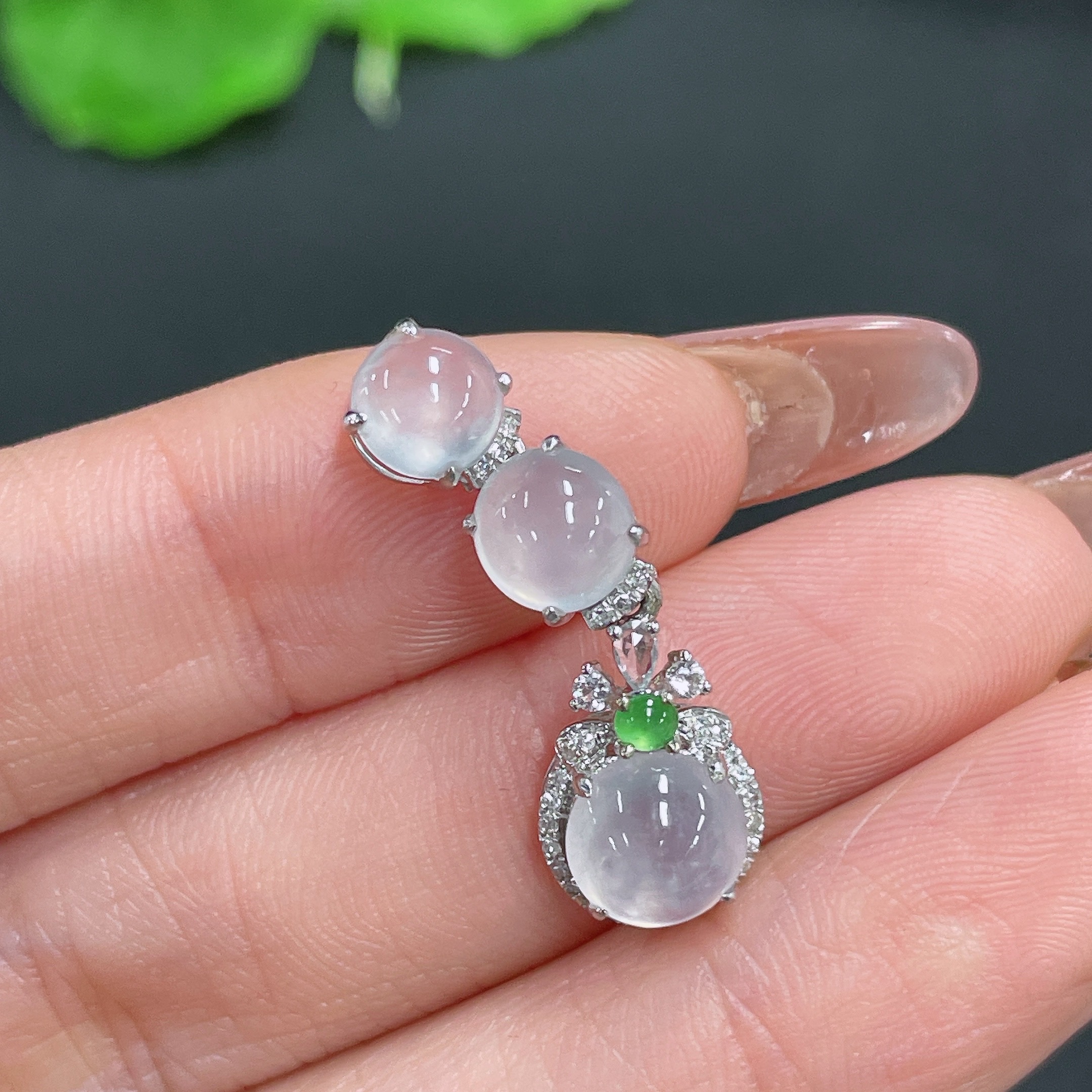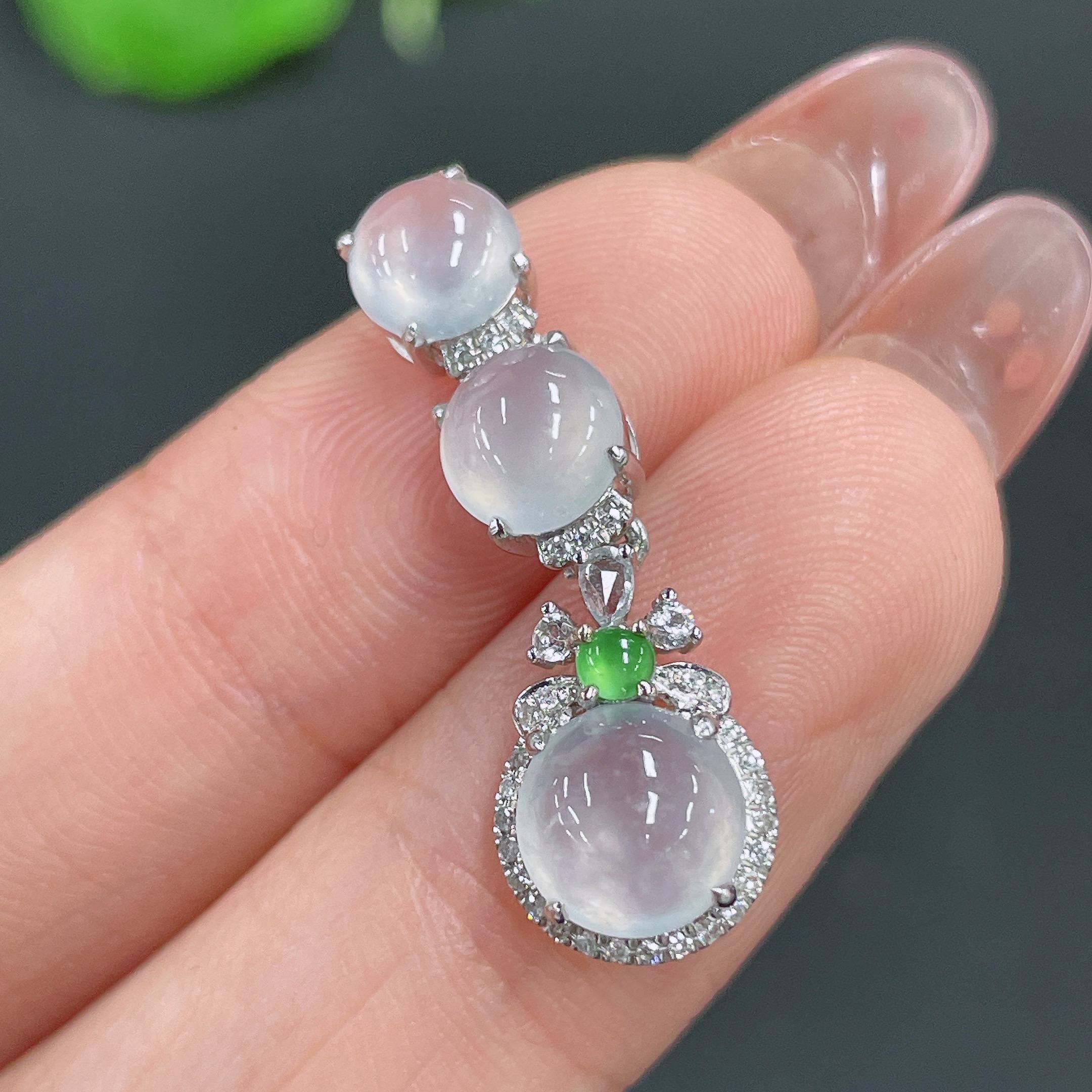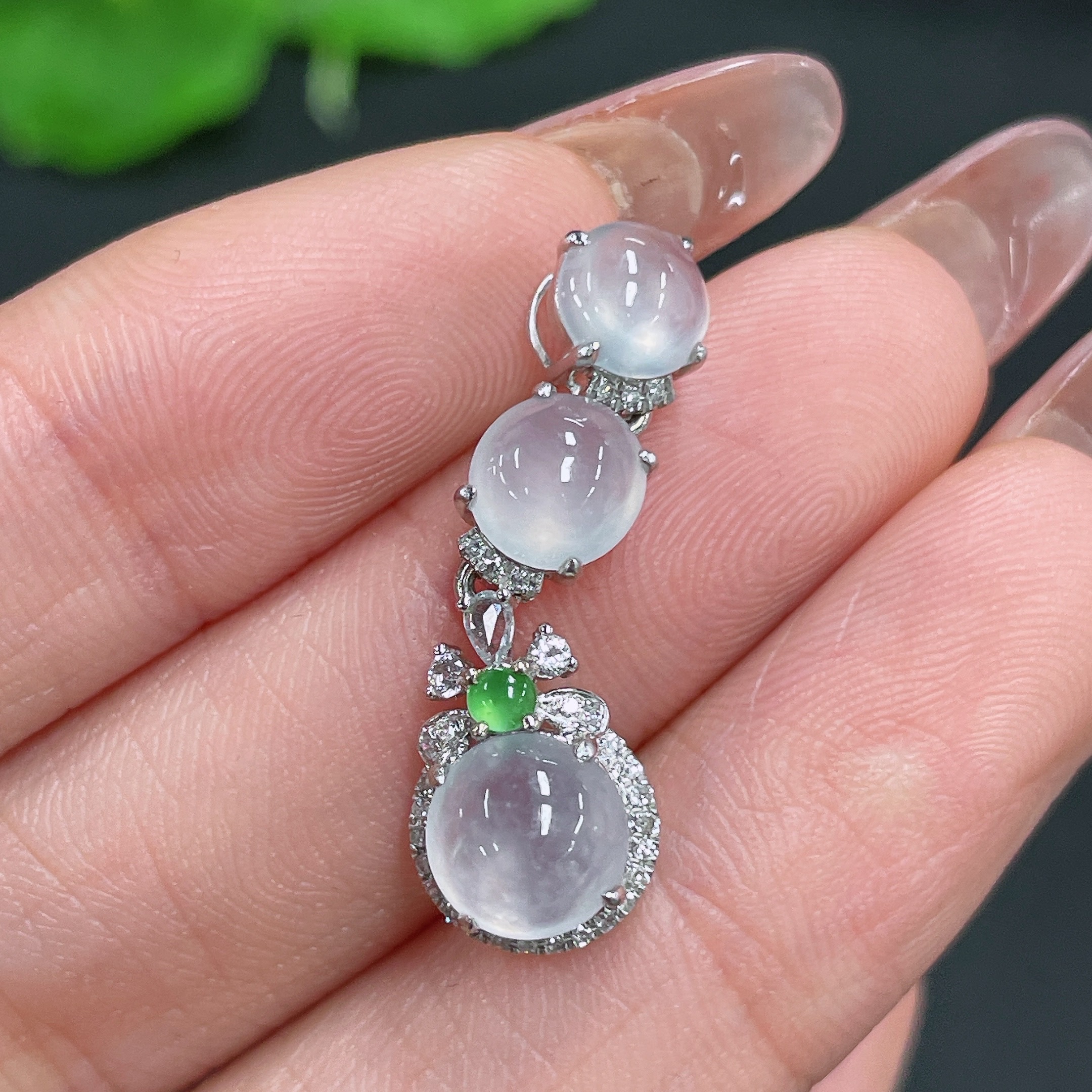 Jadeite cabochon pendant with 18k gold and diamond accents (minimum accent stones only), total weight approx. 1.83g