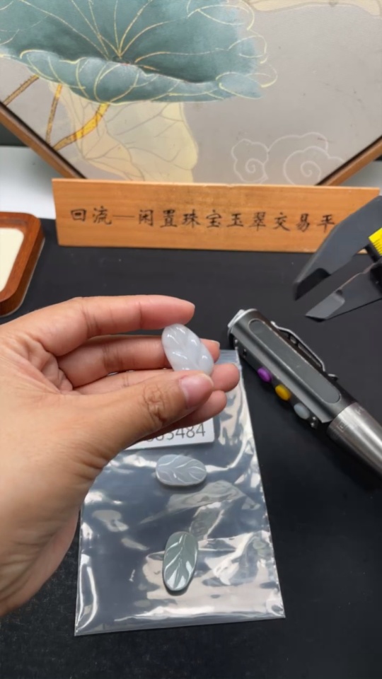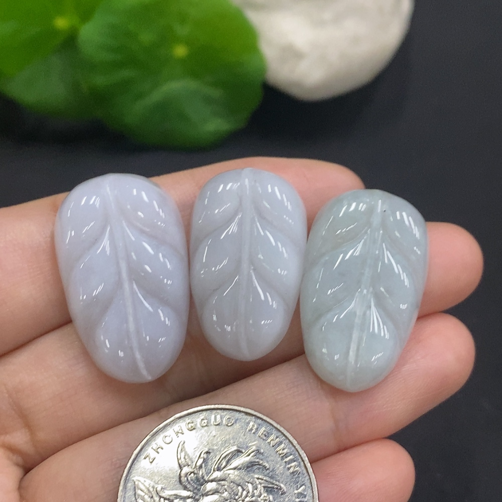 Jadeite Leaf Inlaid Pieces Sell as a Lot