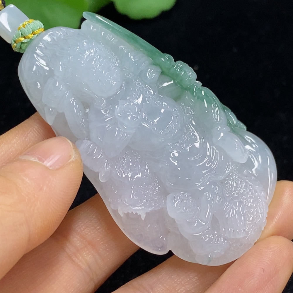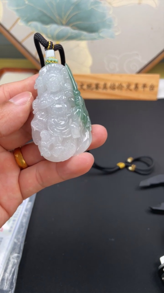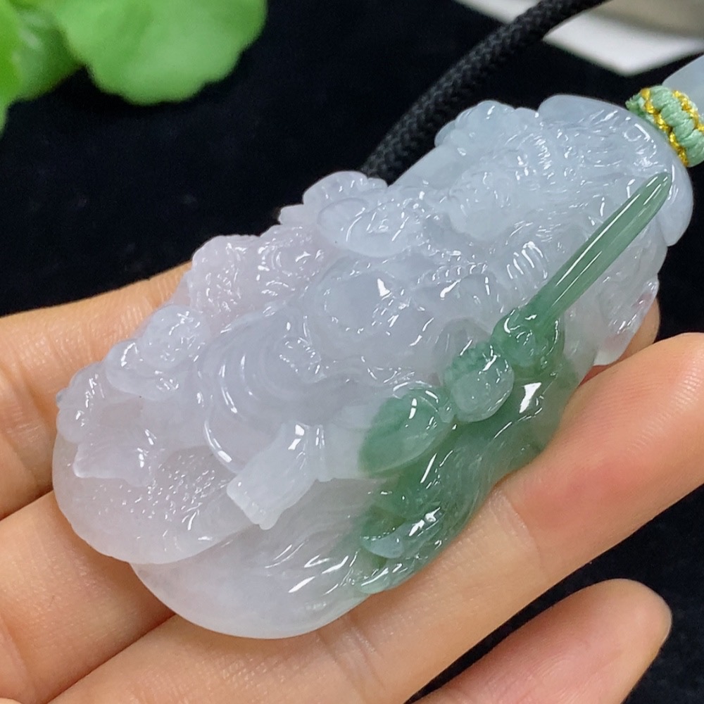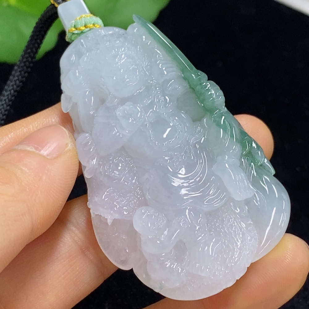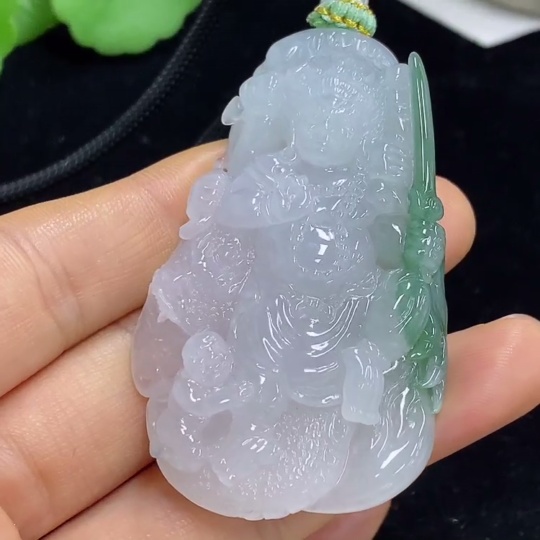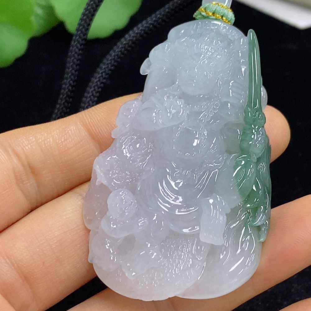 Jadeite Fudō Myōō Pendant Total Weight Approx. 59.13g (Including Rope Weight)