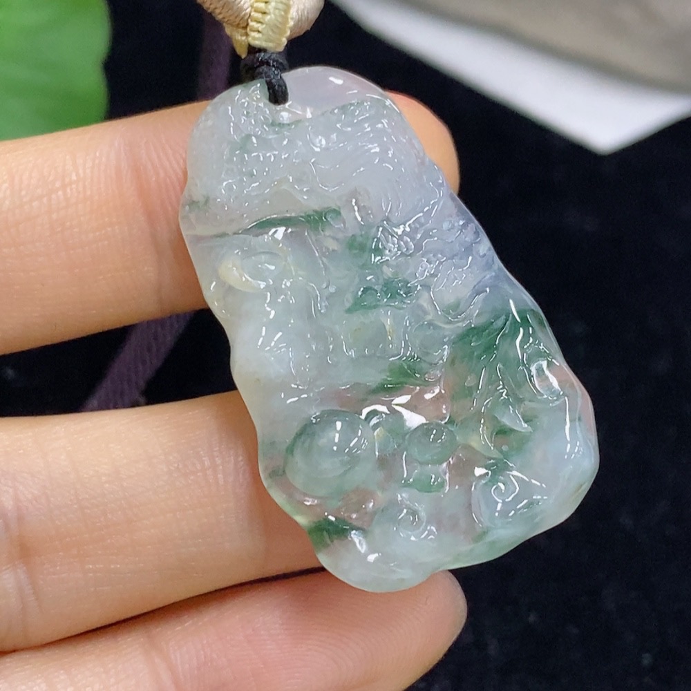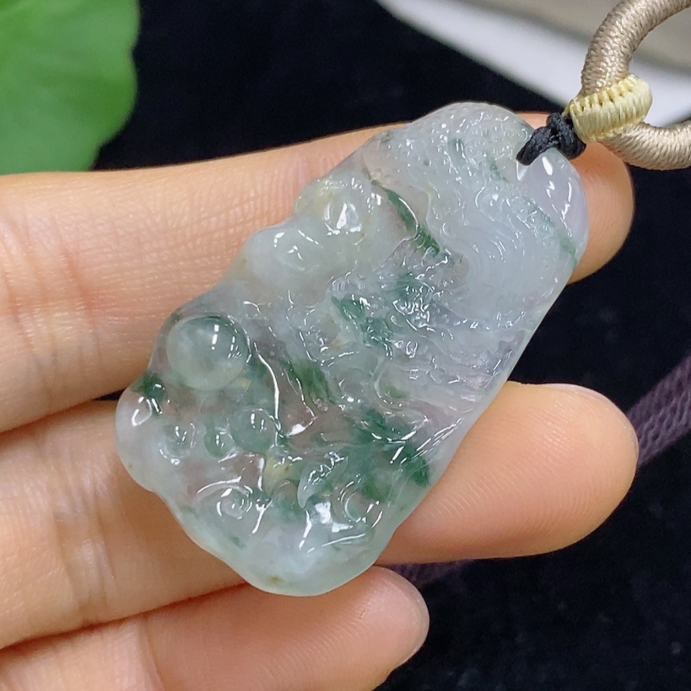 Jadeite Dragon Pendant Total Weight Approx. 12.99g (Including Rope Weight)