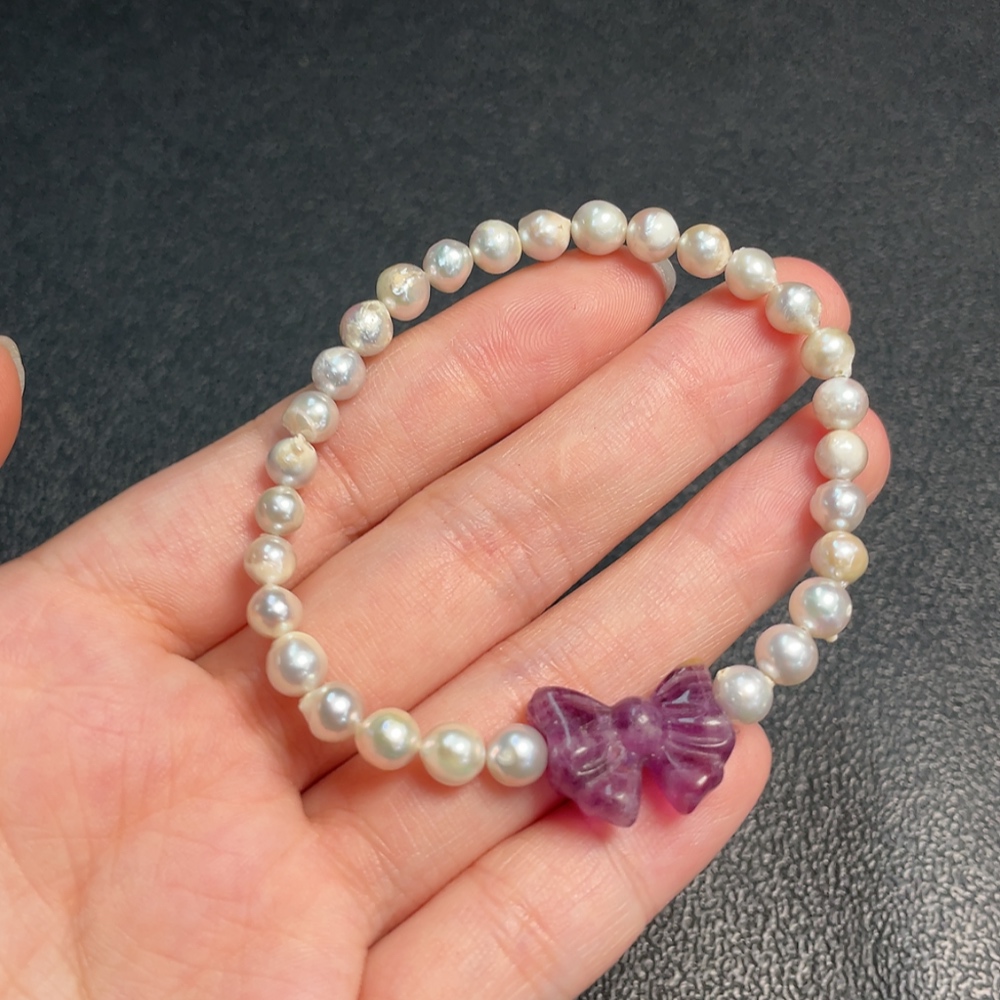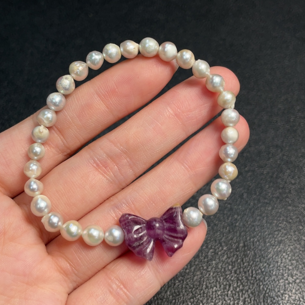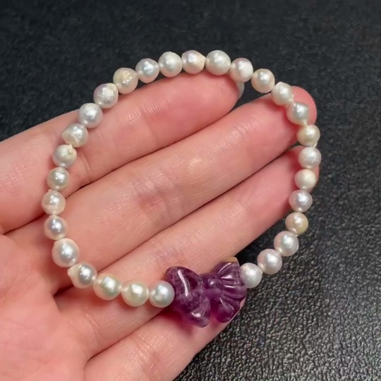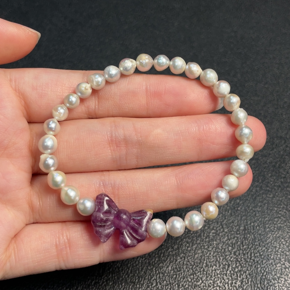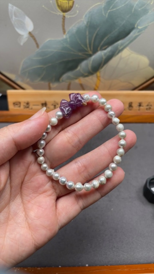 Seawater Pearl Bracelet, Color Origin Undetermined, Accent Stones Considered Non-Natural, Total Weight Approximately 9.19g, Size About 5.4mm